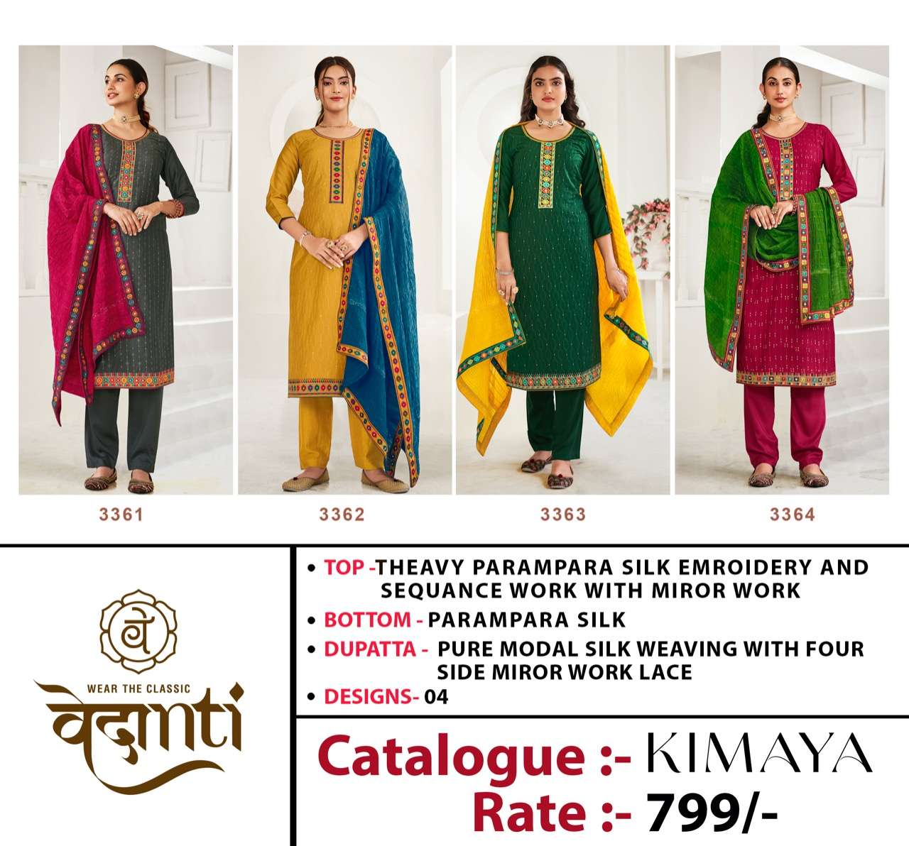 Vedanti Presents Latest Collection Launched on 12-04-2022. Presenting Beautiful collection of 4 PCS with Unstitched .