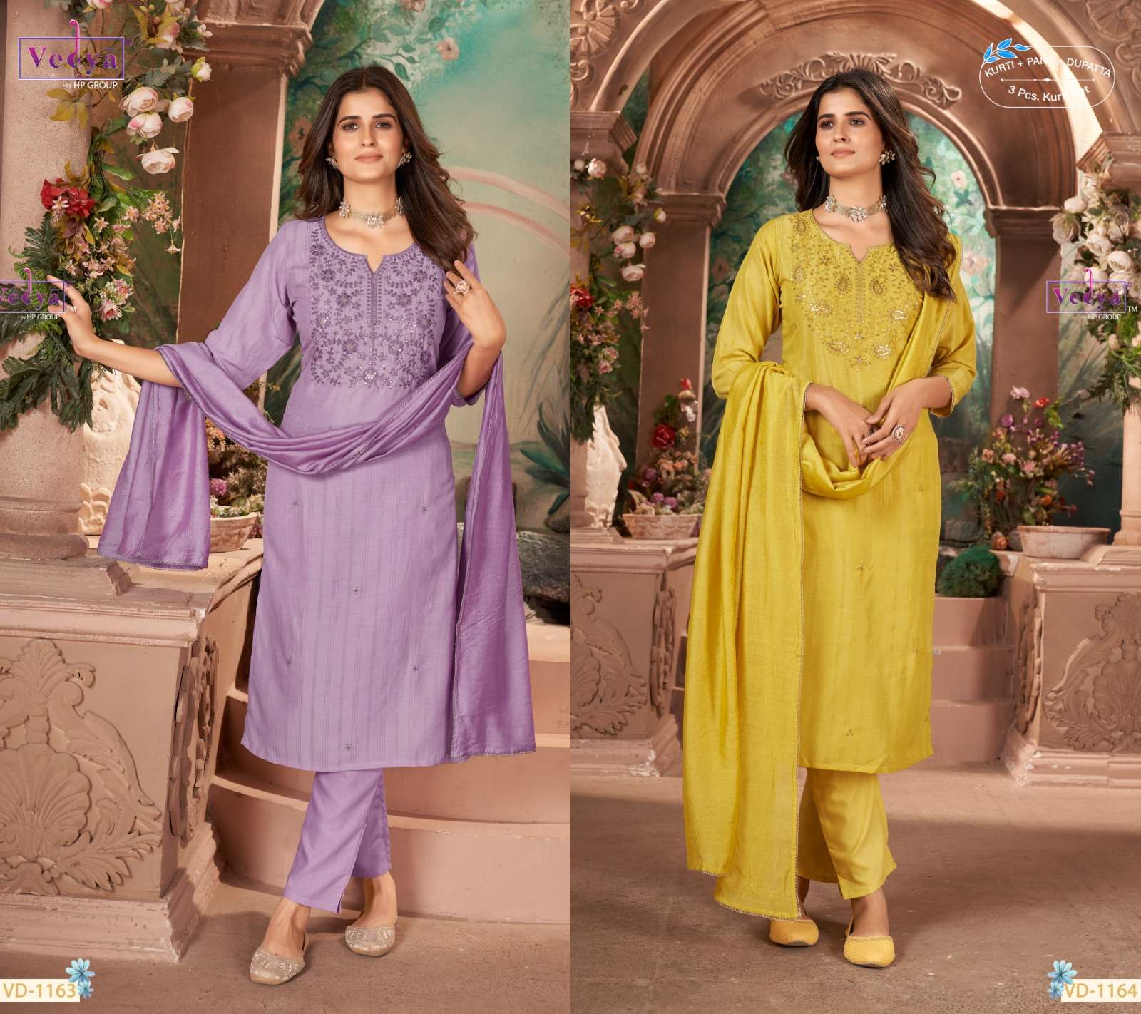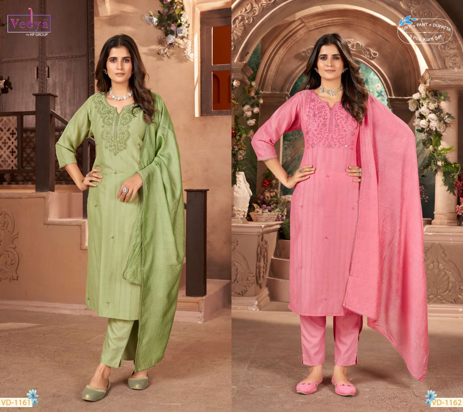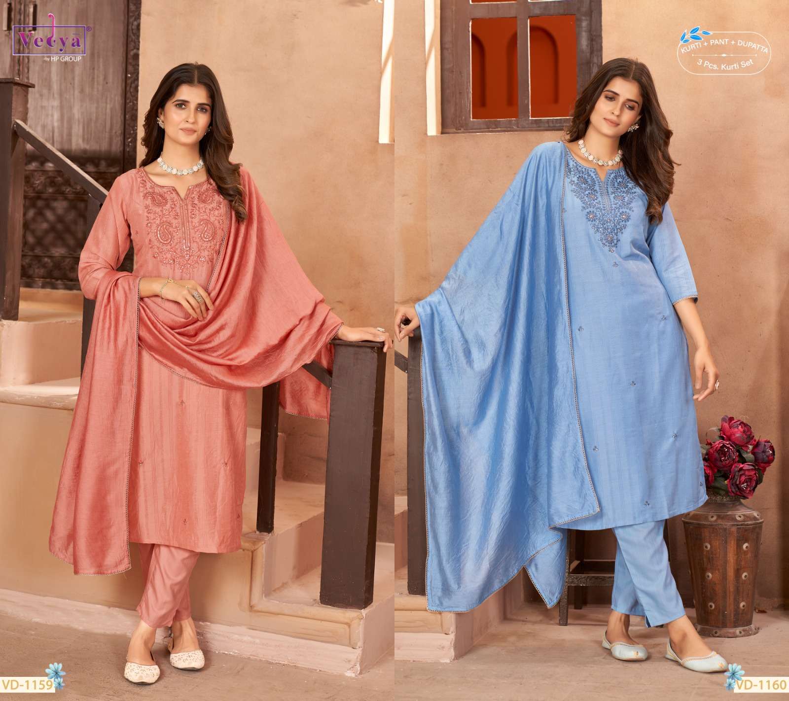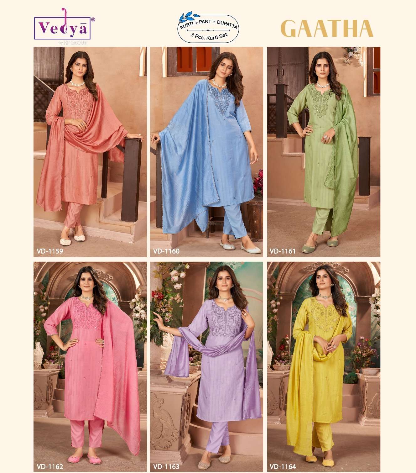 vedya present gaatha fancy straight kurti with pant and dupatta catalog