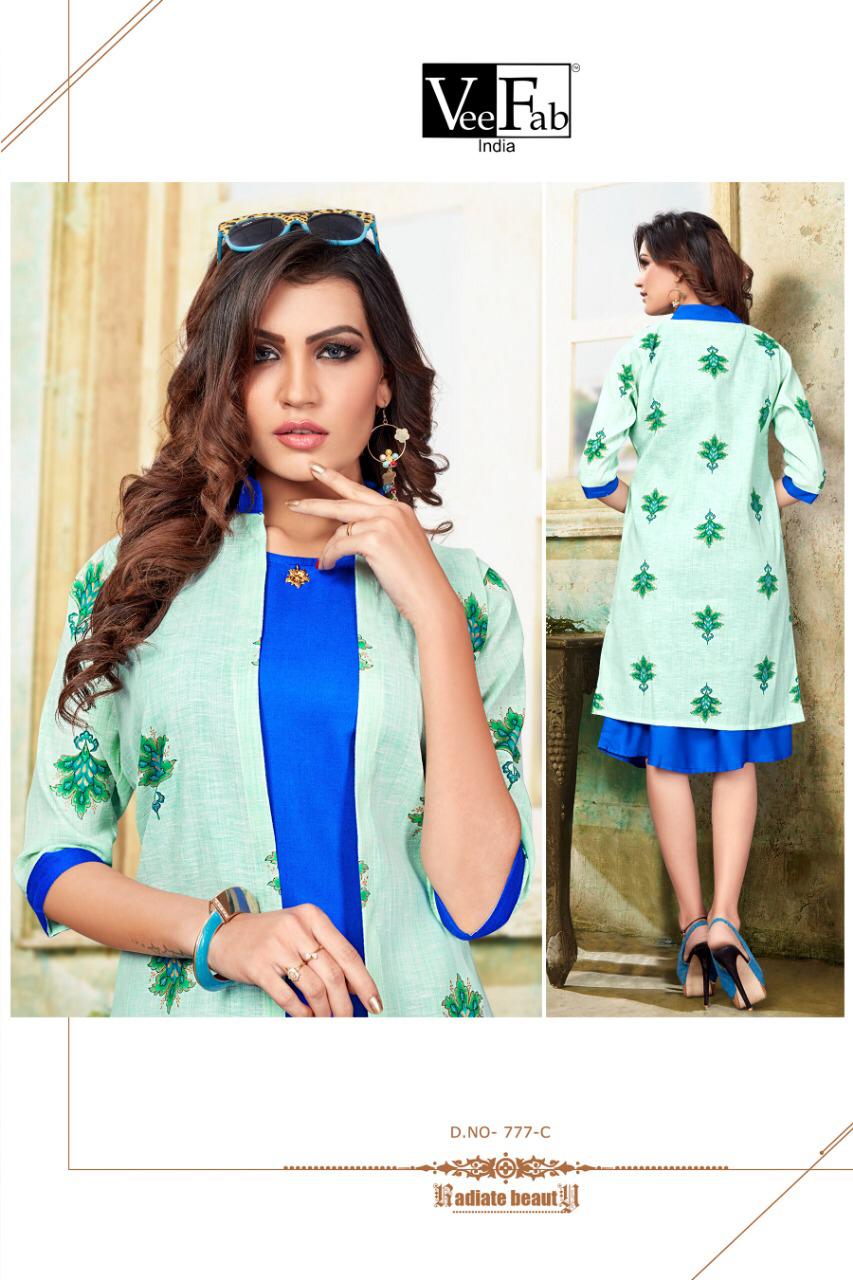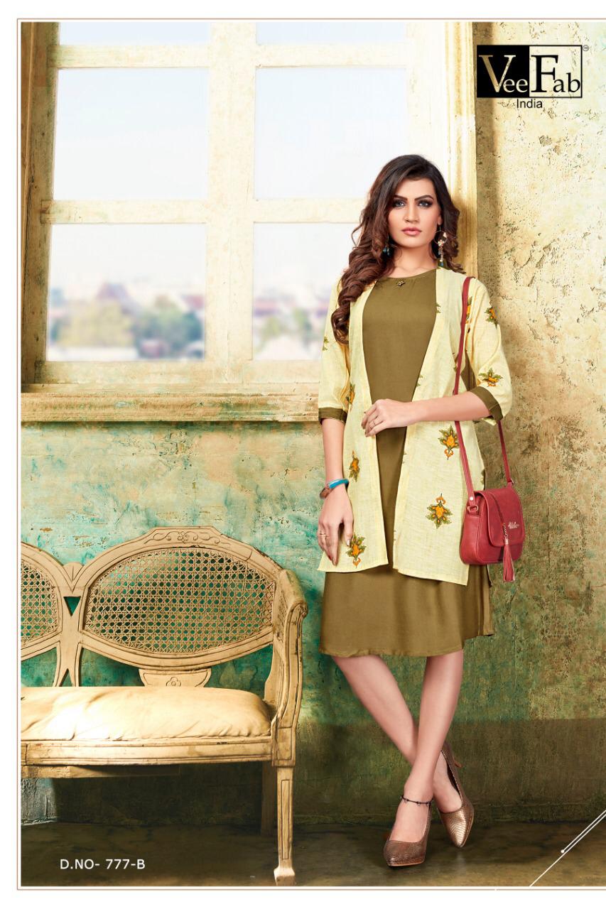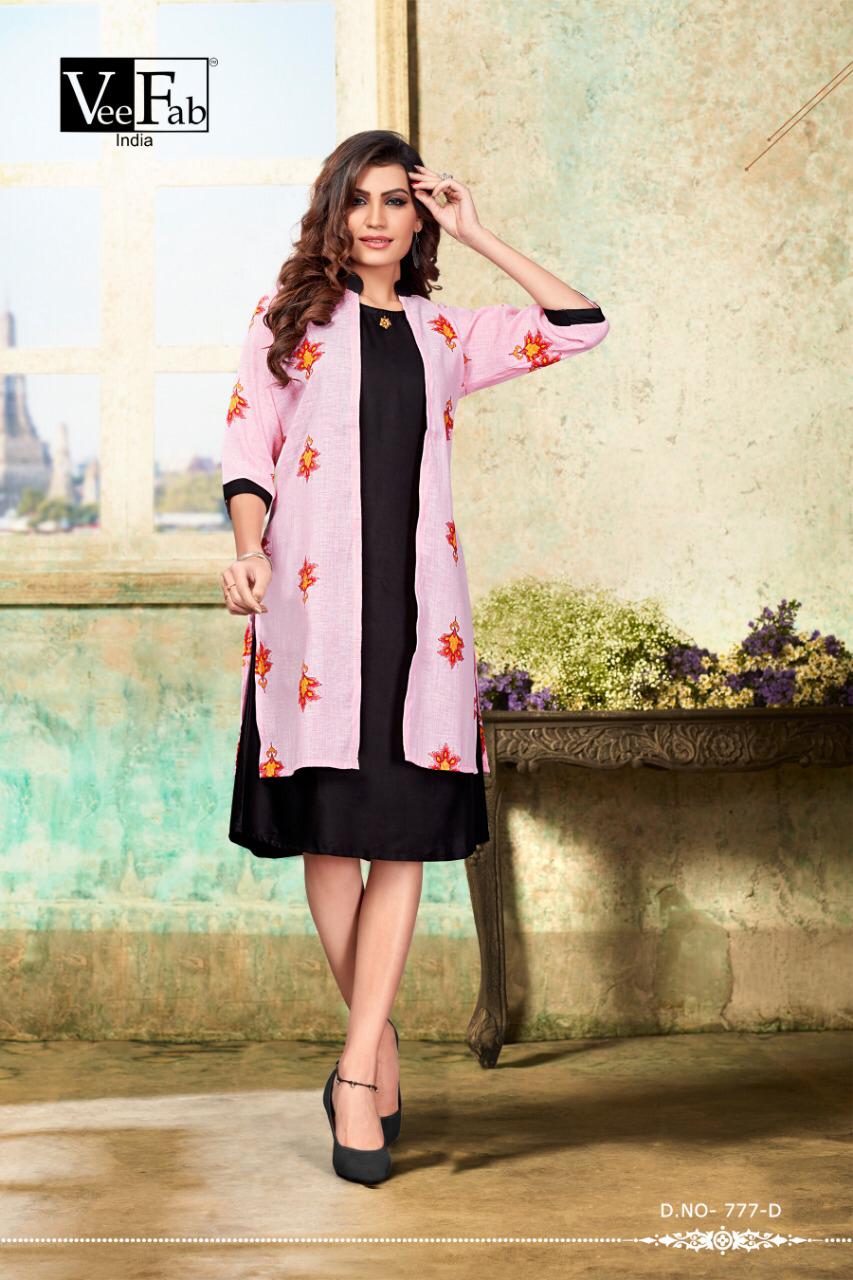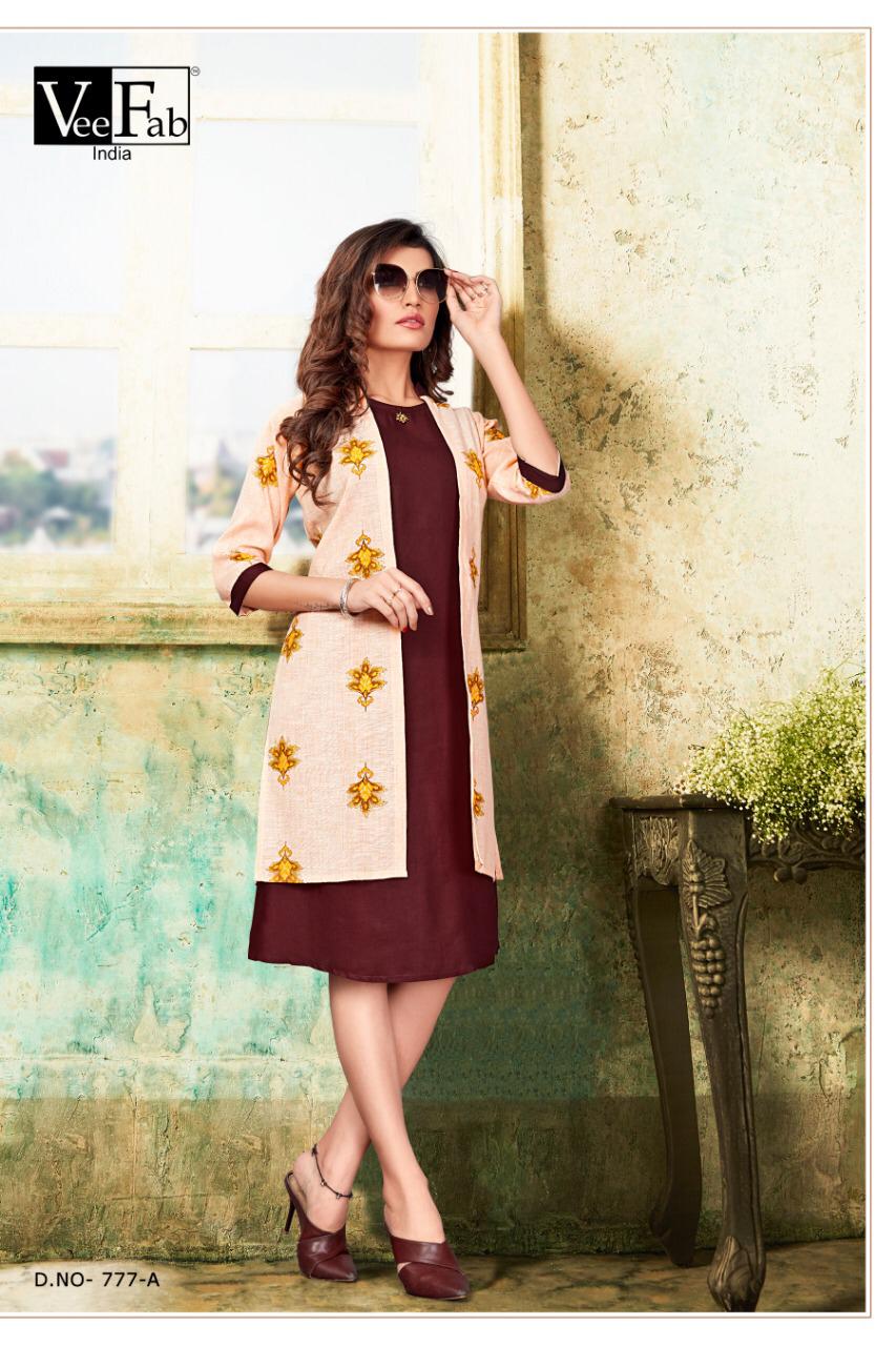 Vee Fab India Femina Rayon With Sleeve Less Kurti With Jacket Concept