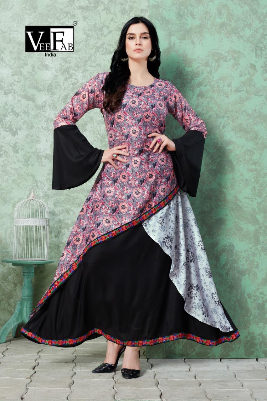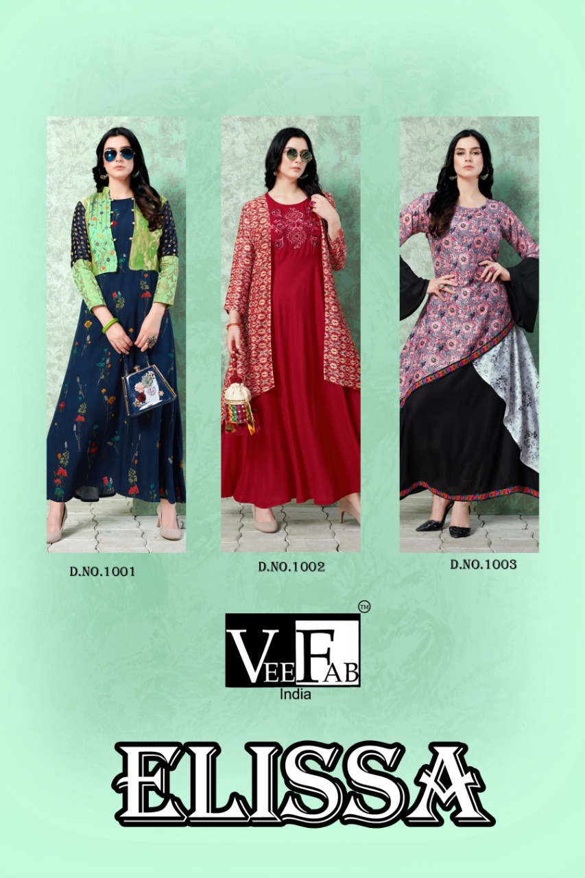 Vee Fab India Present Elissa Designer Koti Style Reyon Long Kurti Collection
