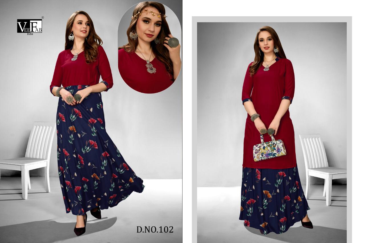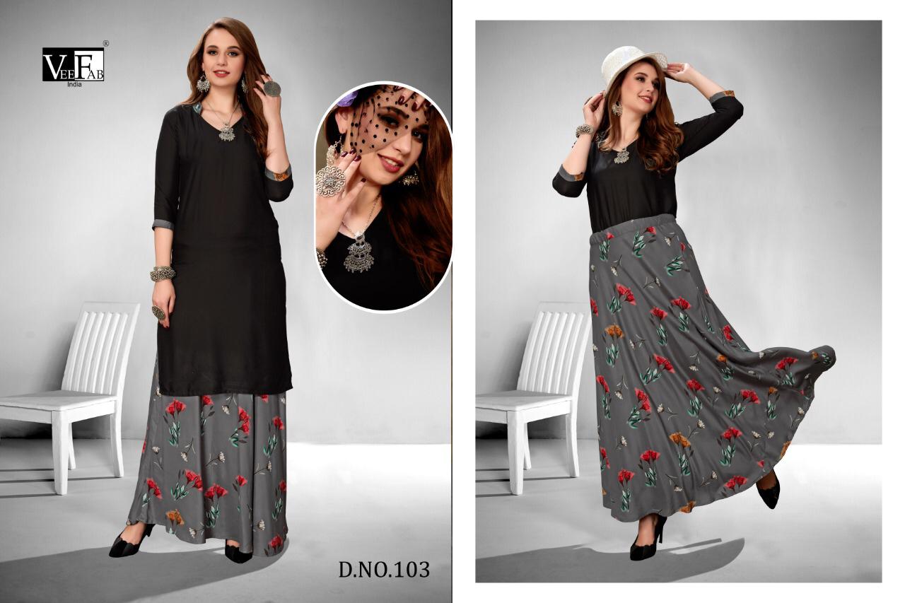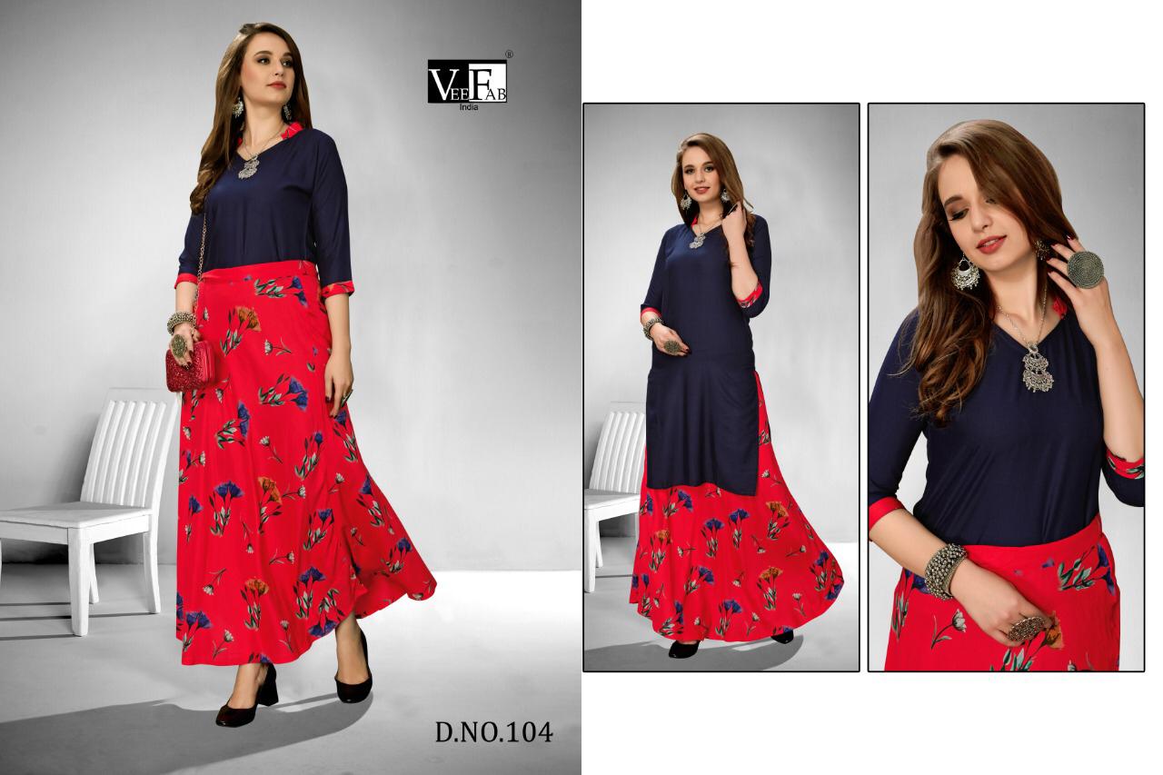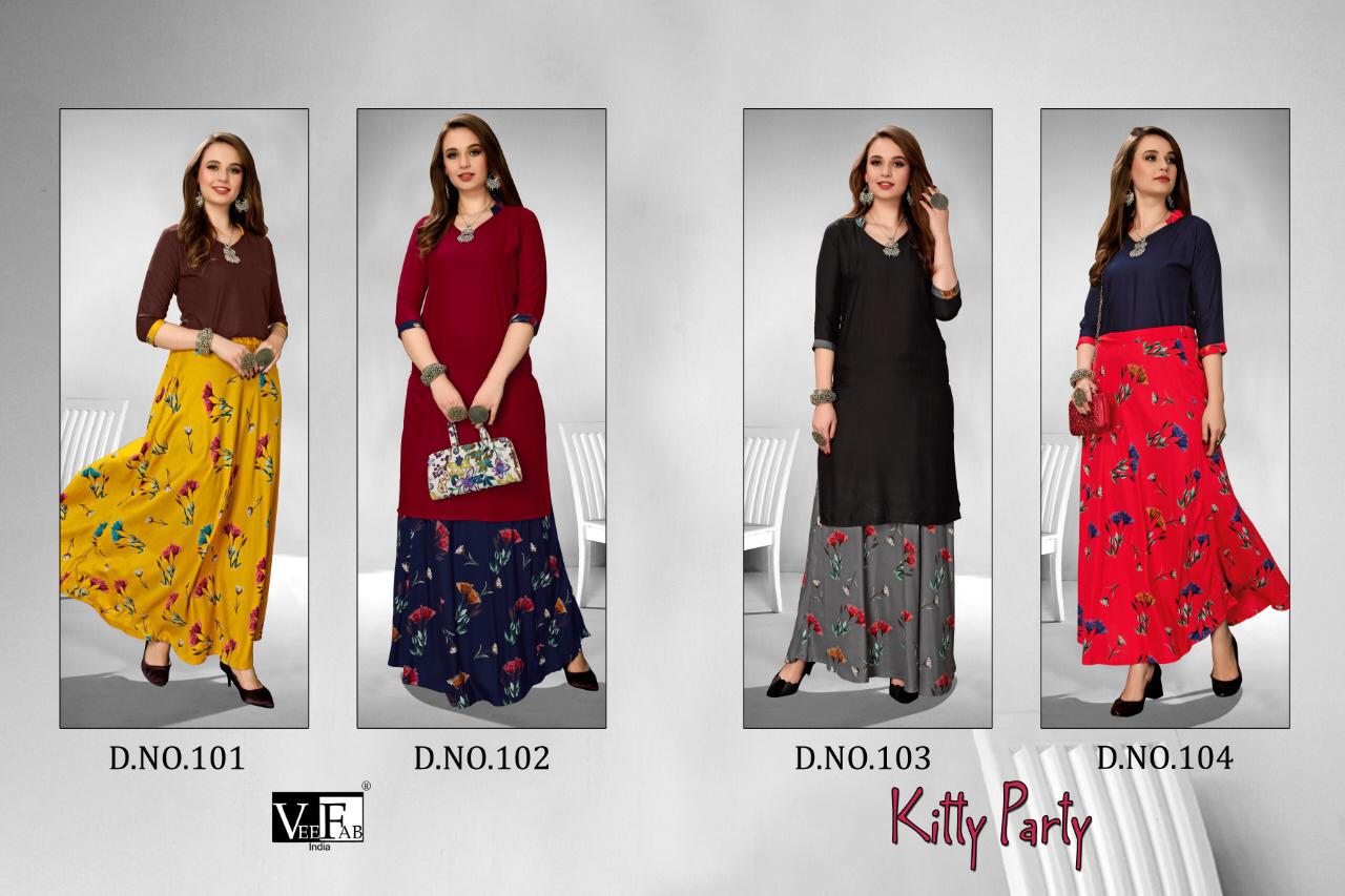 Vee Fab Kitty Party Rayon Printed Top With Skirt Wholesaler Supplier