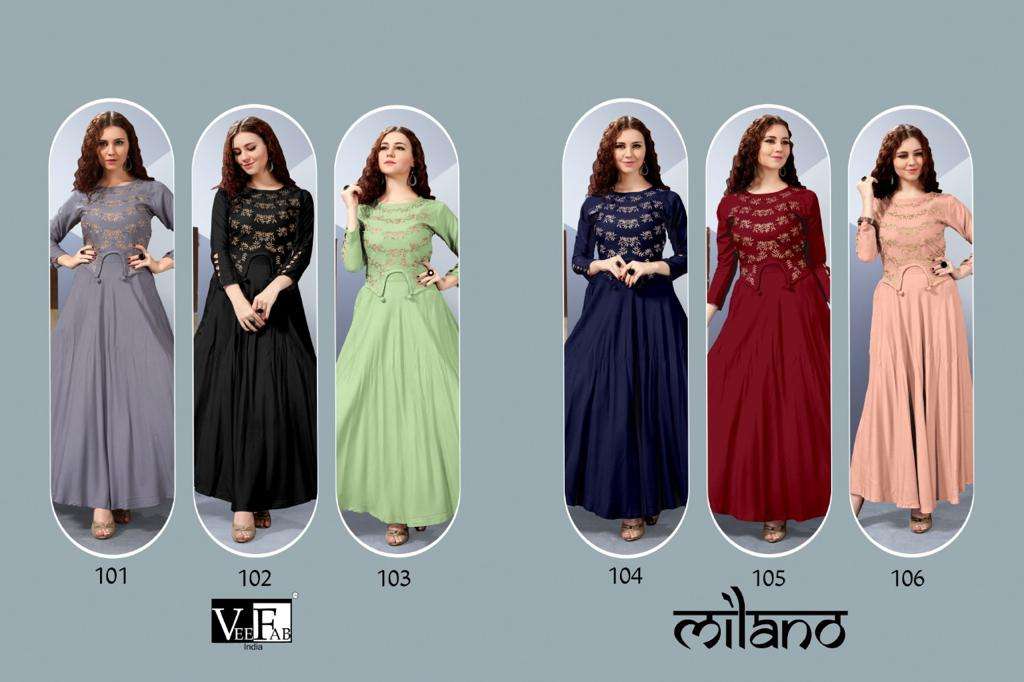 Veefab india Milano Rayon 14 kg with embroidery top / Rate - 525+GST |