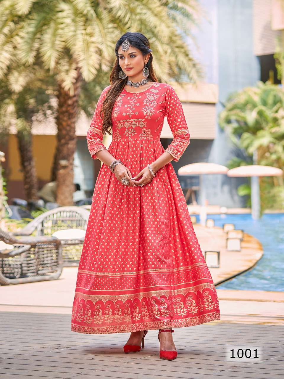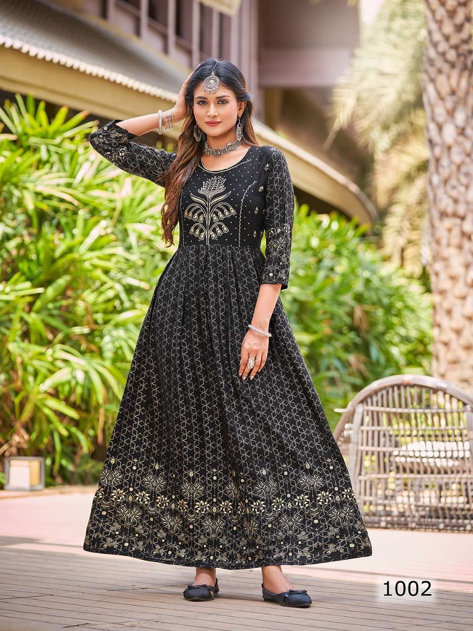 Vee Fab 🌴POSHAK🌴 Long Gown Style Size: M (38) L (40) XL (42) XXL (44) 3XL (46) 4XL (48) 5XL (50) Rate - 499+GST Lenght 52+ 7 beautiful designs Dispatch 2 to 3 days |