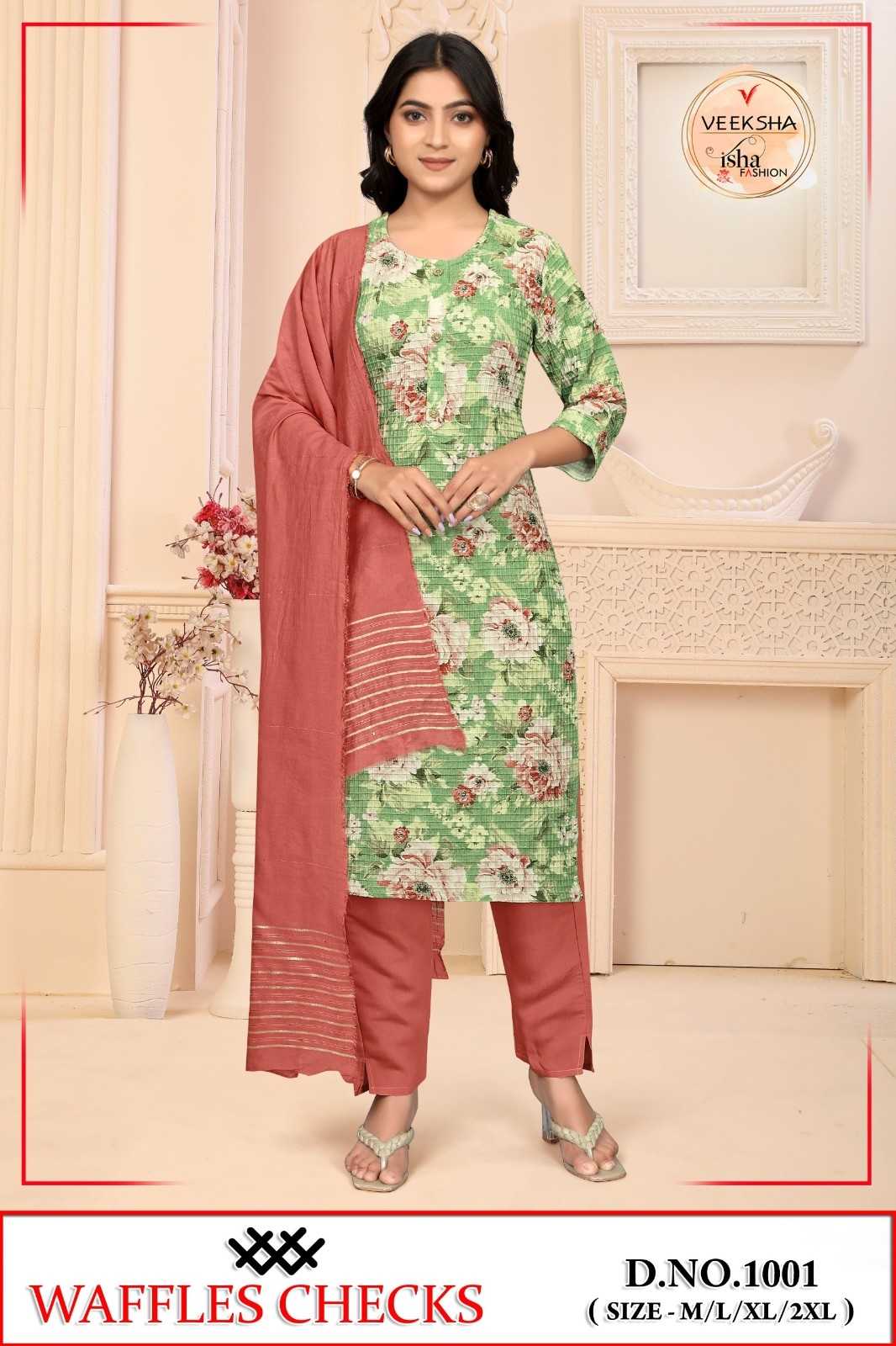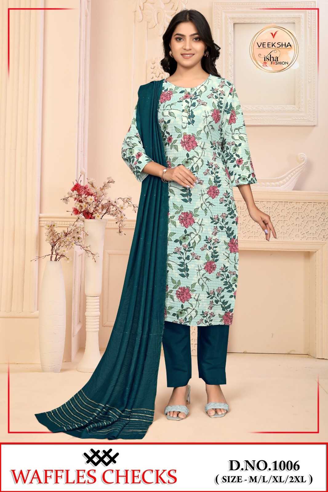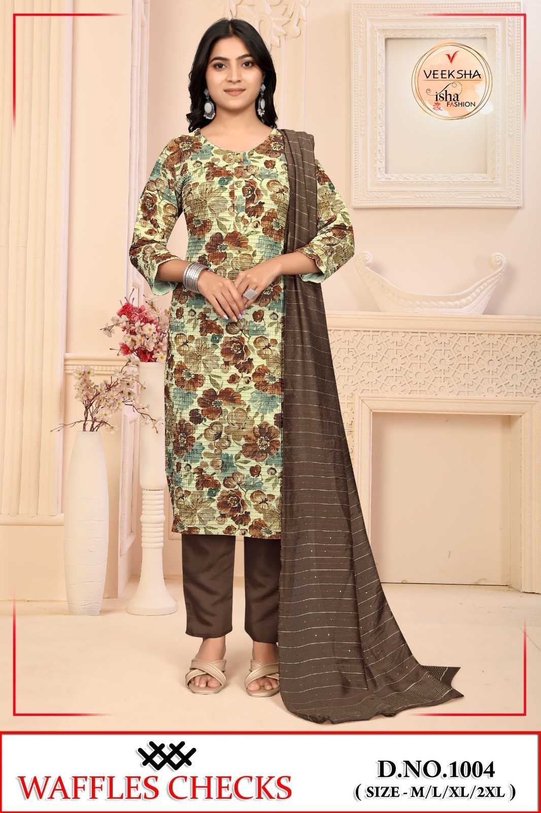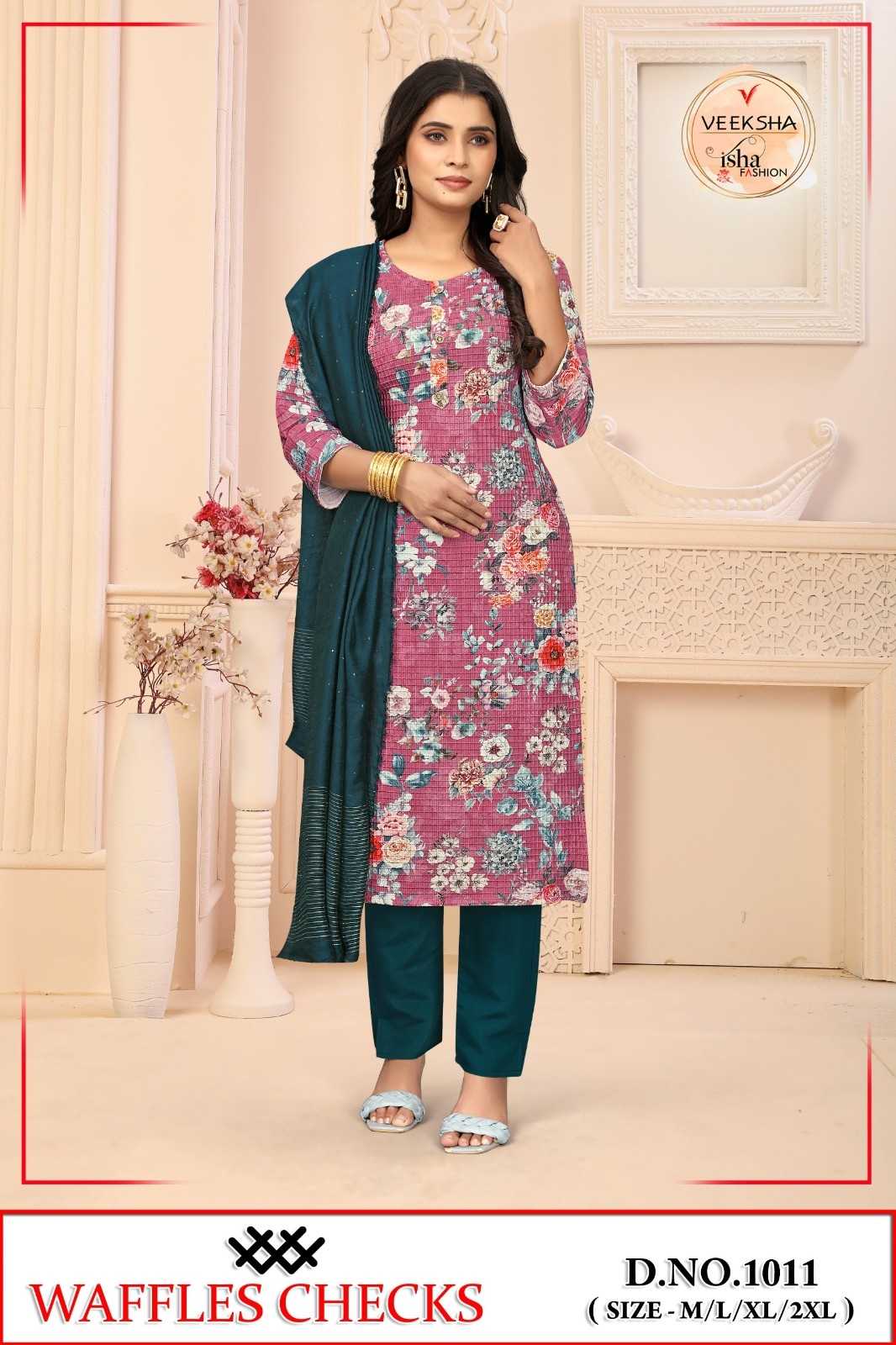 veeksha 1001-1011 waffles checks lycra readymade fancy combo 3pcs dress