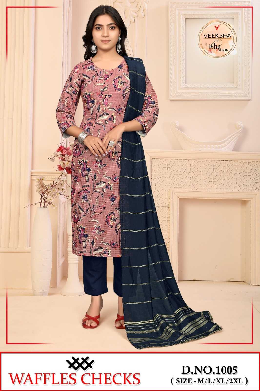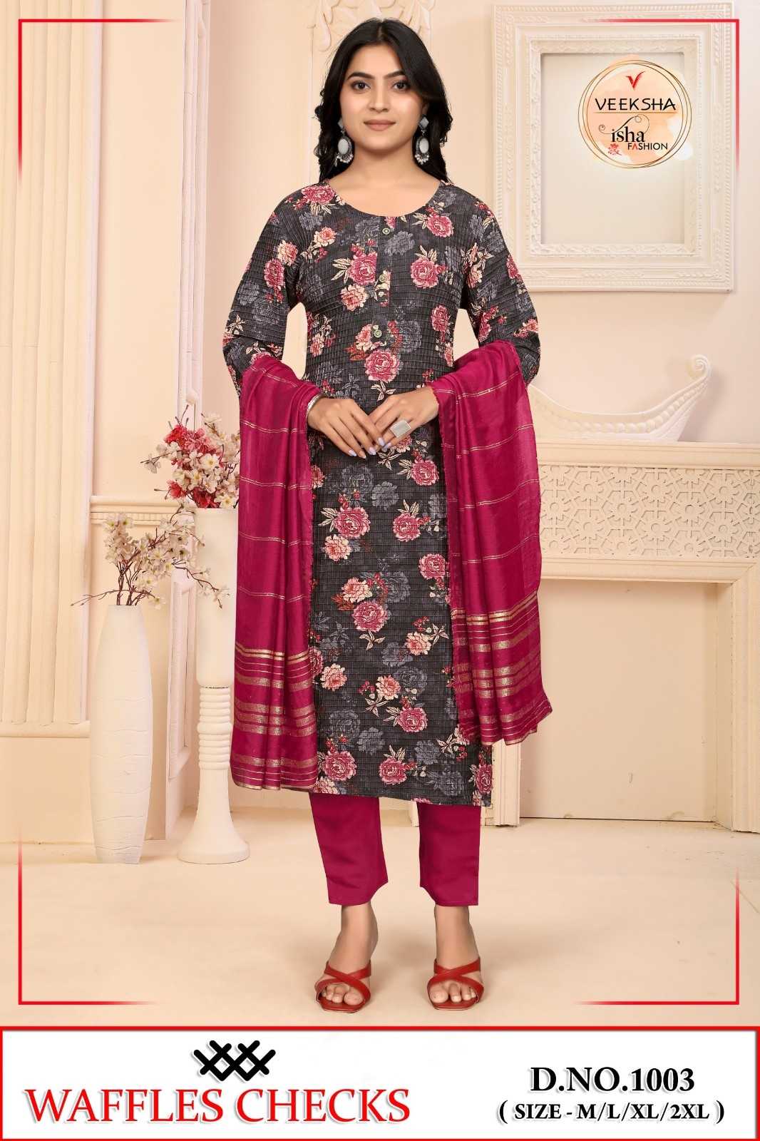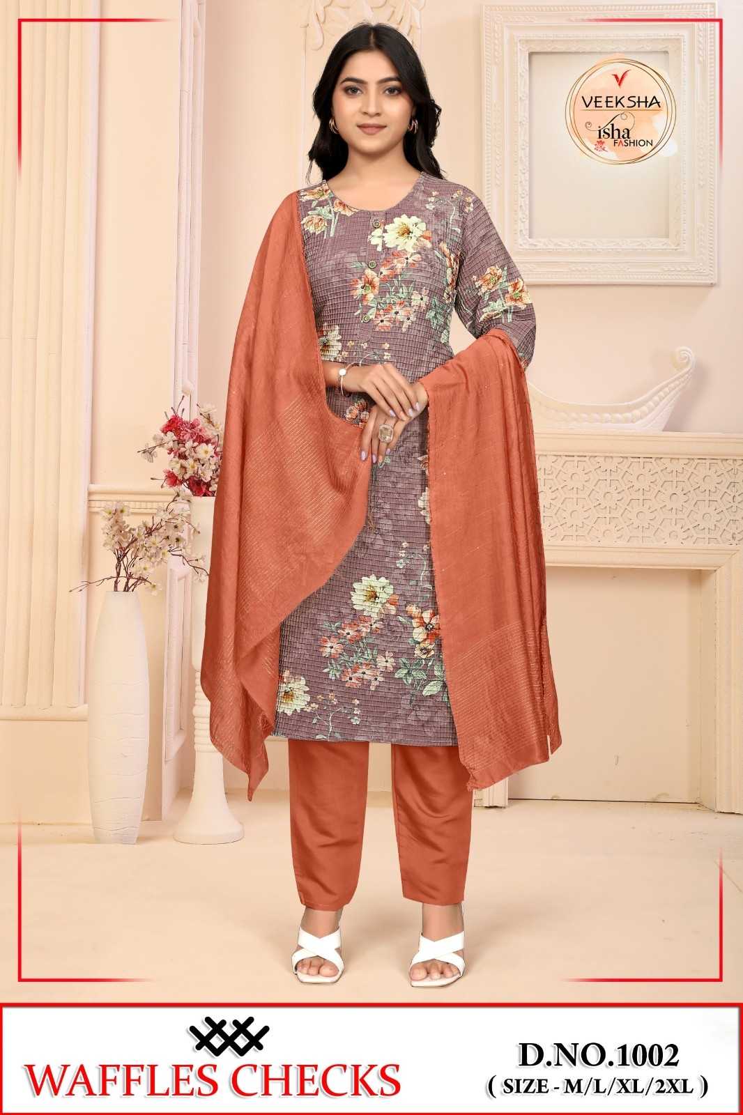 veeksha 1001-1011 waffles checks lycra readymade fancy combo 3pcs dress