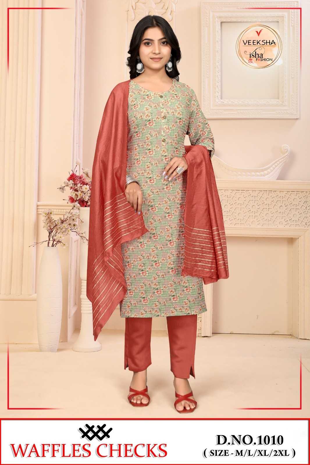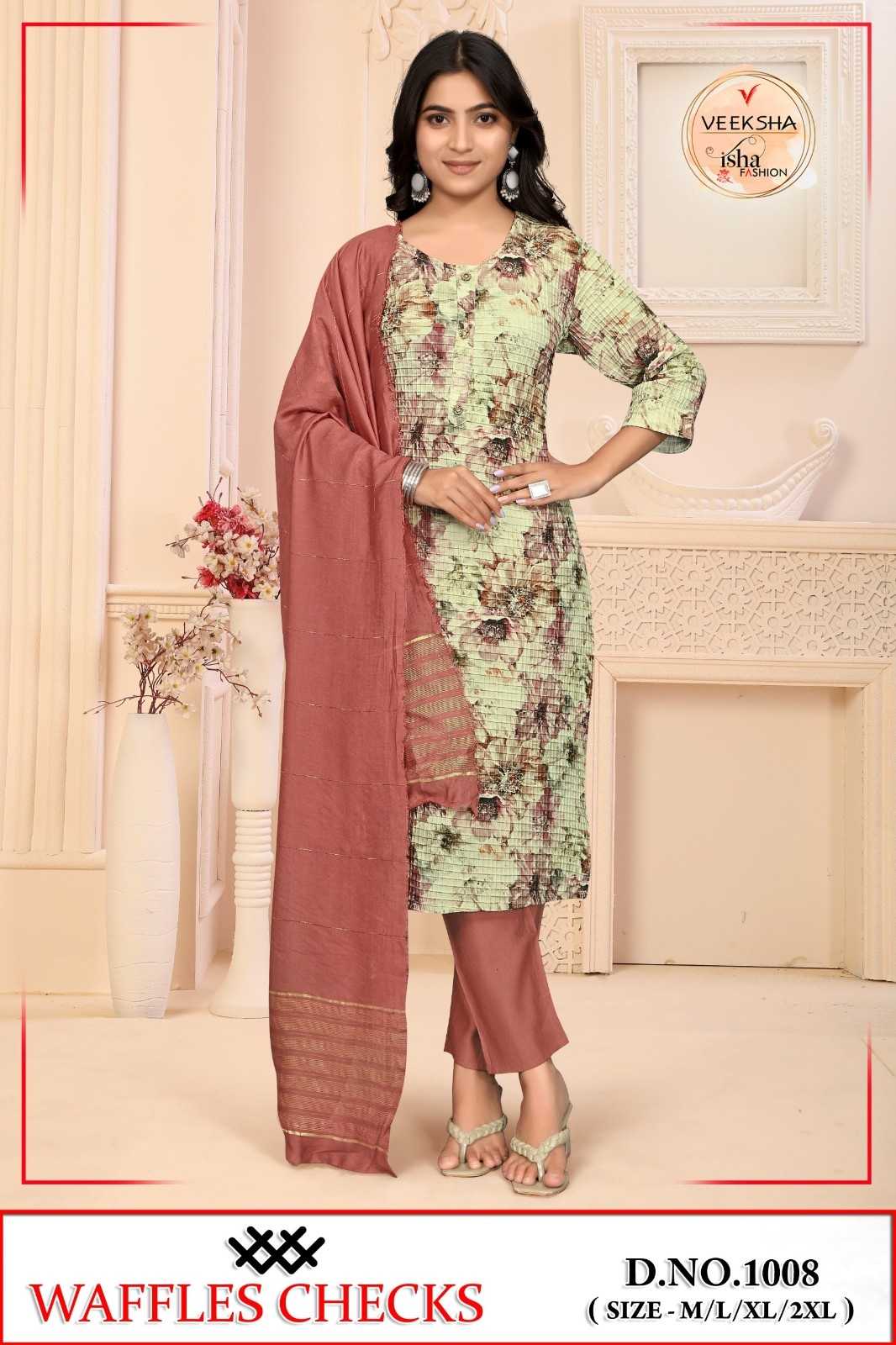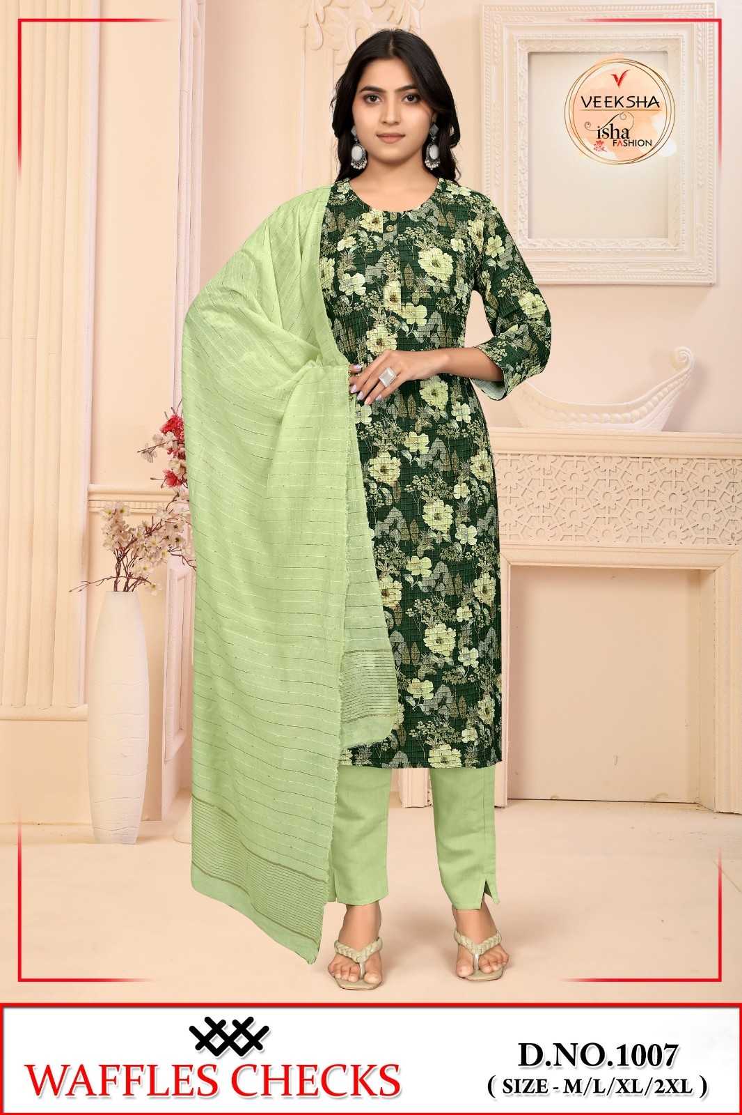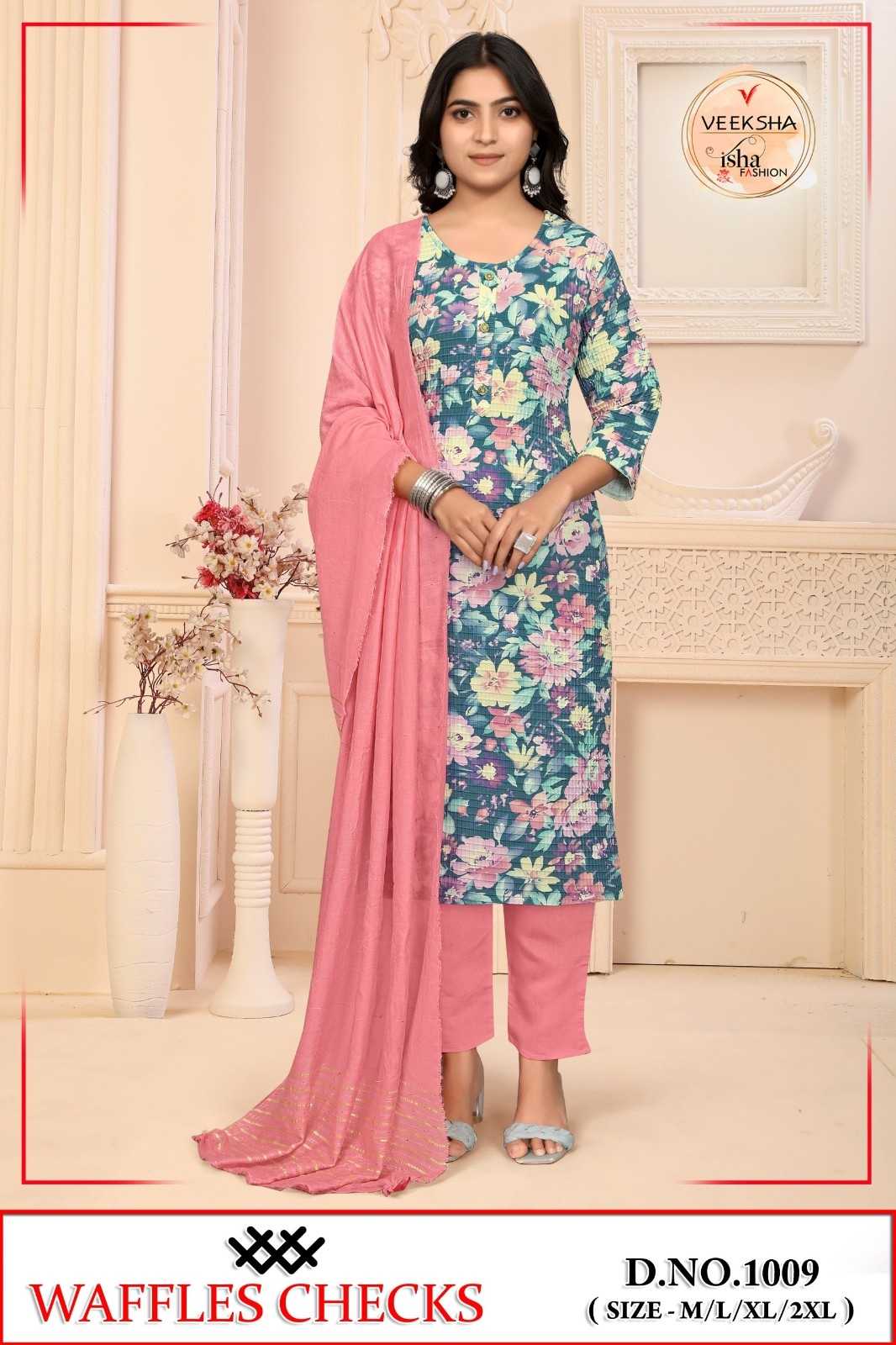 veeksha 1001-1011 waffles checks lycra readymade fancy combo 3pcs dress