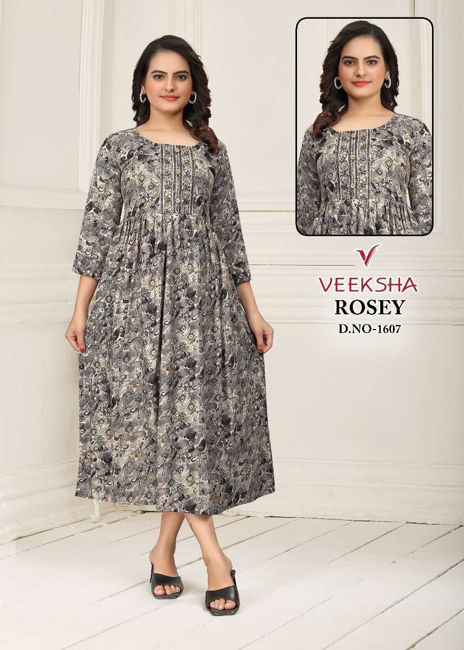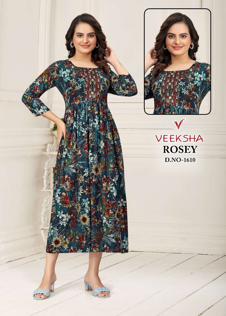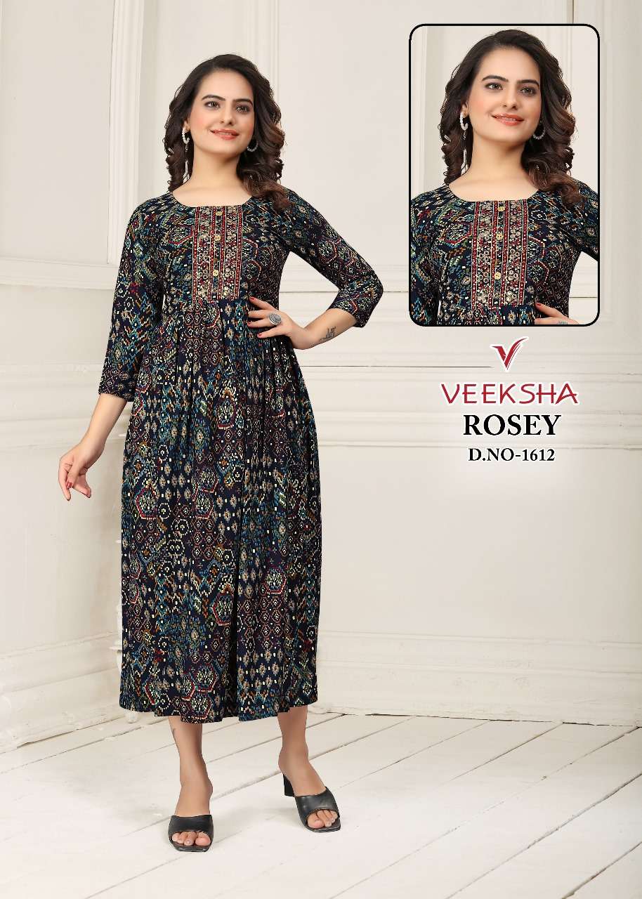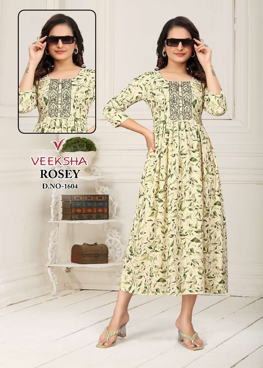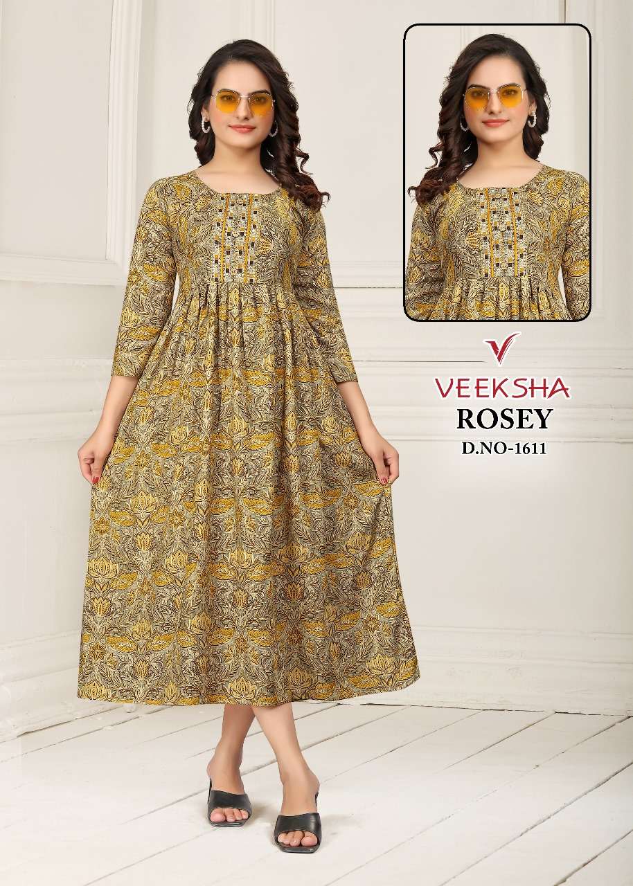 veeksha present rosey readymade nayra style flair rayon kurti combo set