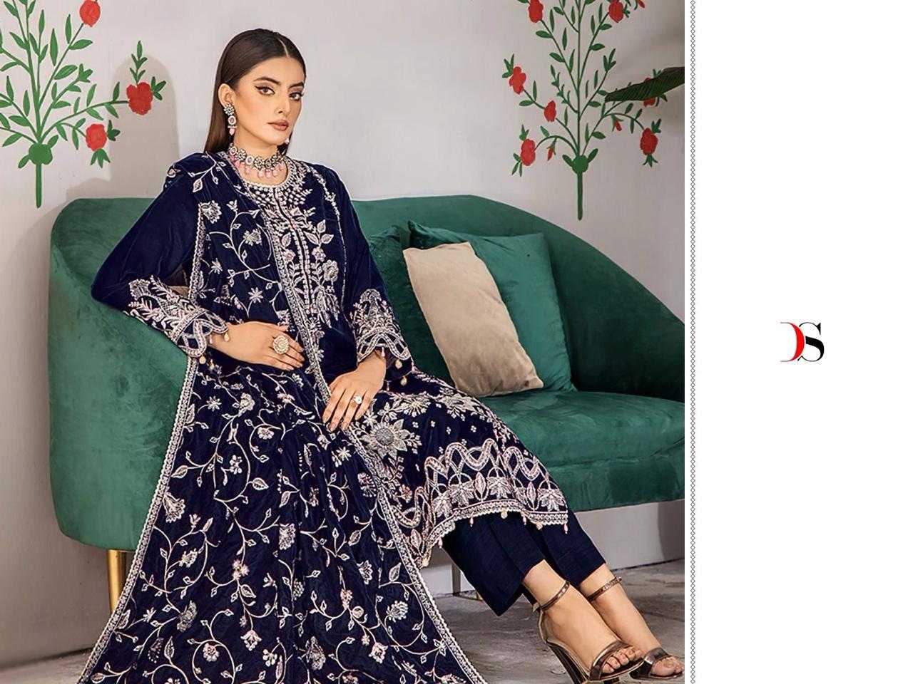 VELVET-23-3 by DEEPSY SUITS Top -Velvet with heavy embroidery Bot - Rayon Pashmina Dup - Velevt with heavy embroidery Pcs: 4 *Rate - 1450+Gst Splendid Quality With Digitally Printed Fabric Quilted Fabric Used For best quality results |