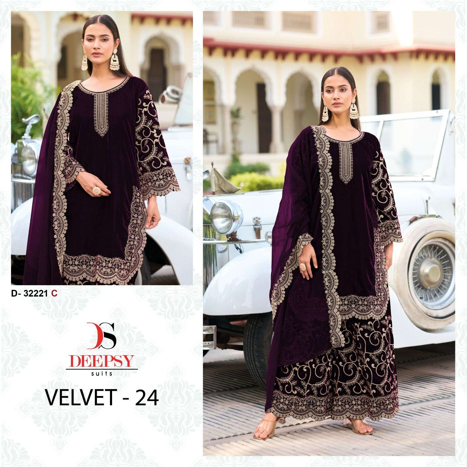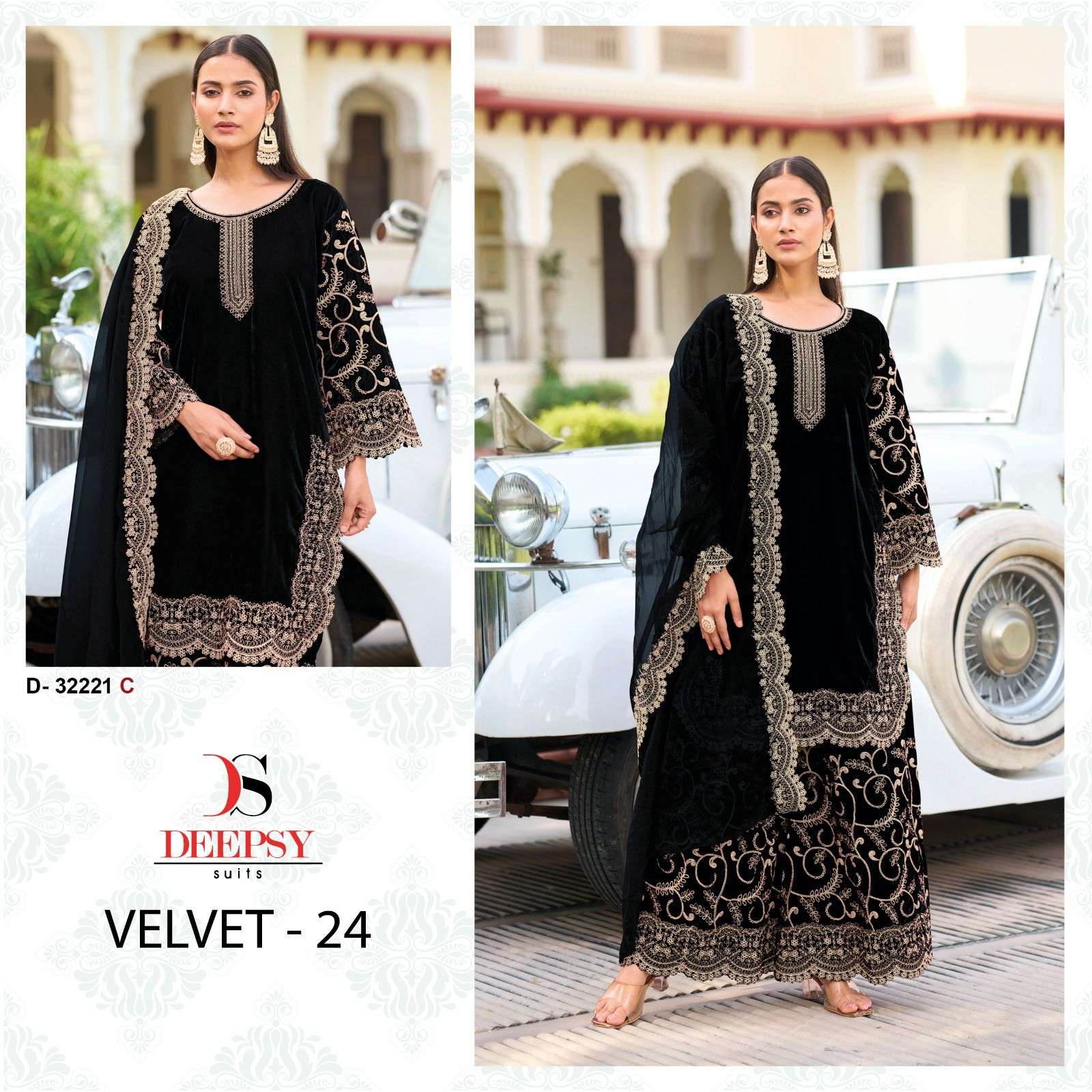 HIT DESIGN OF VELVET-24 by DEEPSY SUITS Top -Velvet with heavy embroidery Bot - Velevt with embroidery Dup - Velevt with heavy embroidery Pcs: 4 *Rate - 1599+Gst Splendid Quality With Digitally Printed Fabric Quilted Fabric Used For best quality results |