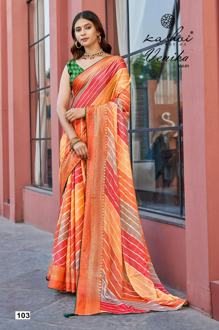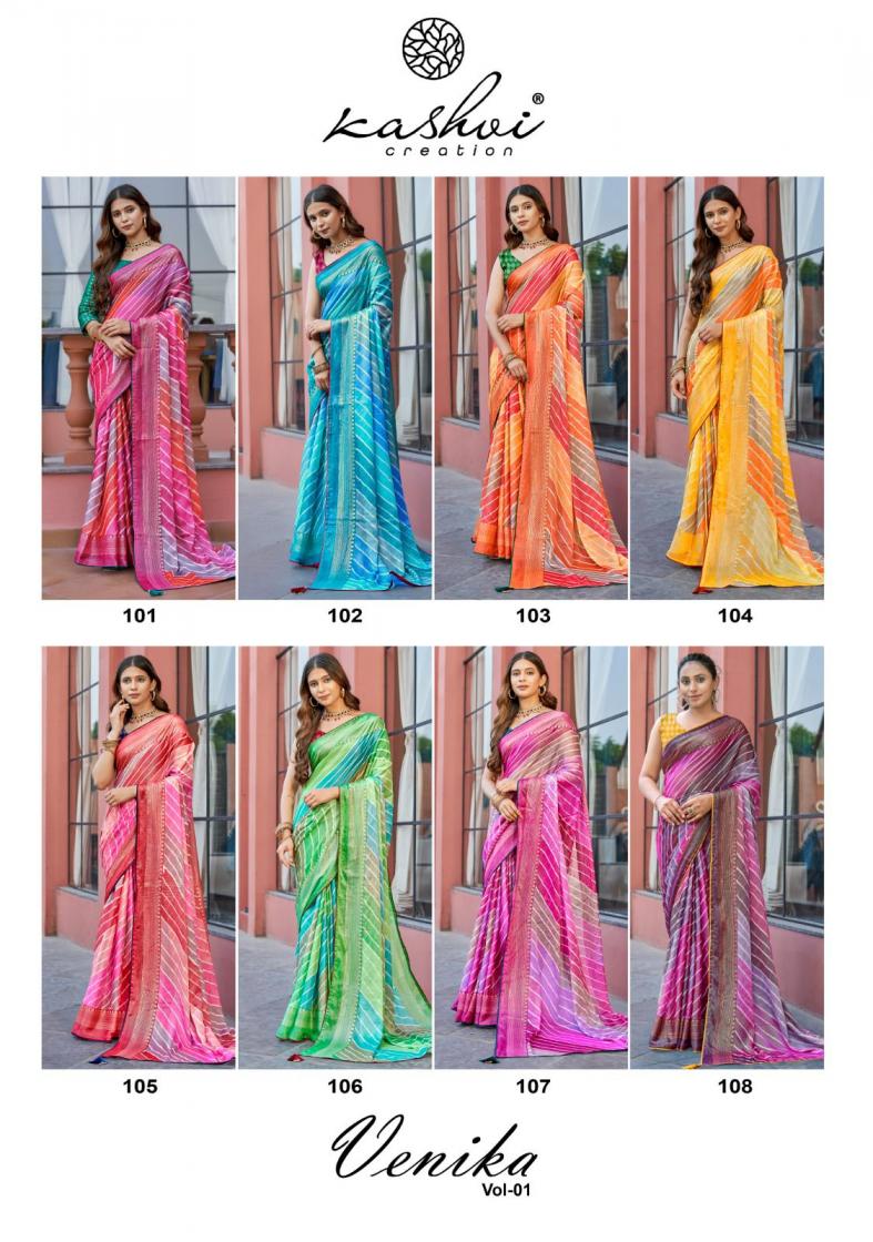 venika vol 1 by kashvi creation chiffon brasso pretty look saree for women