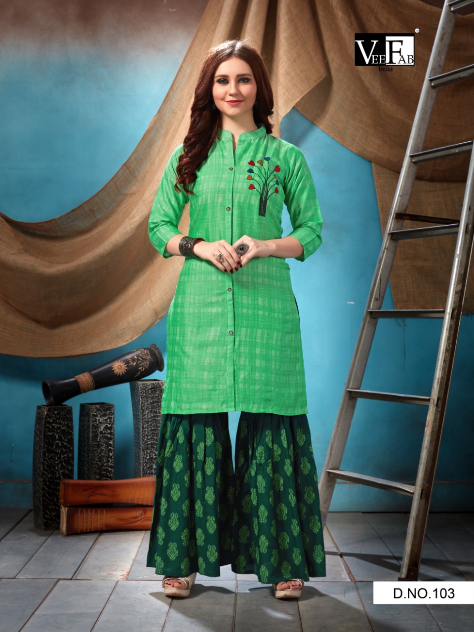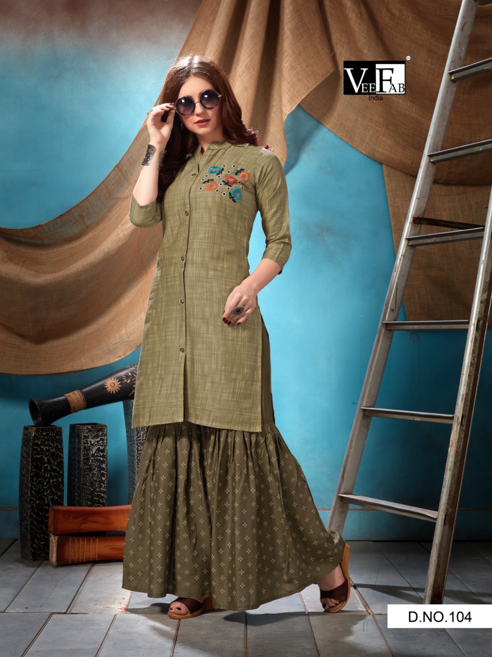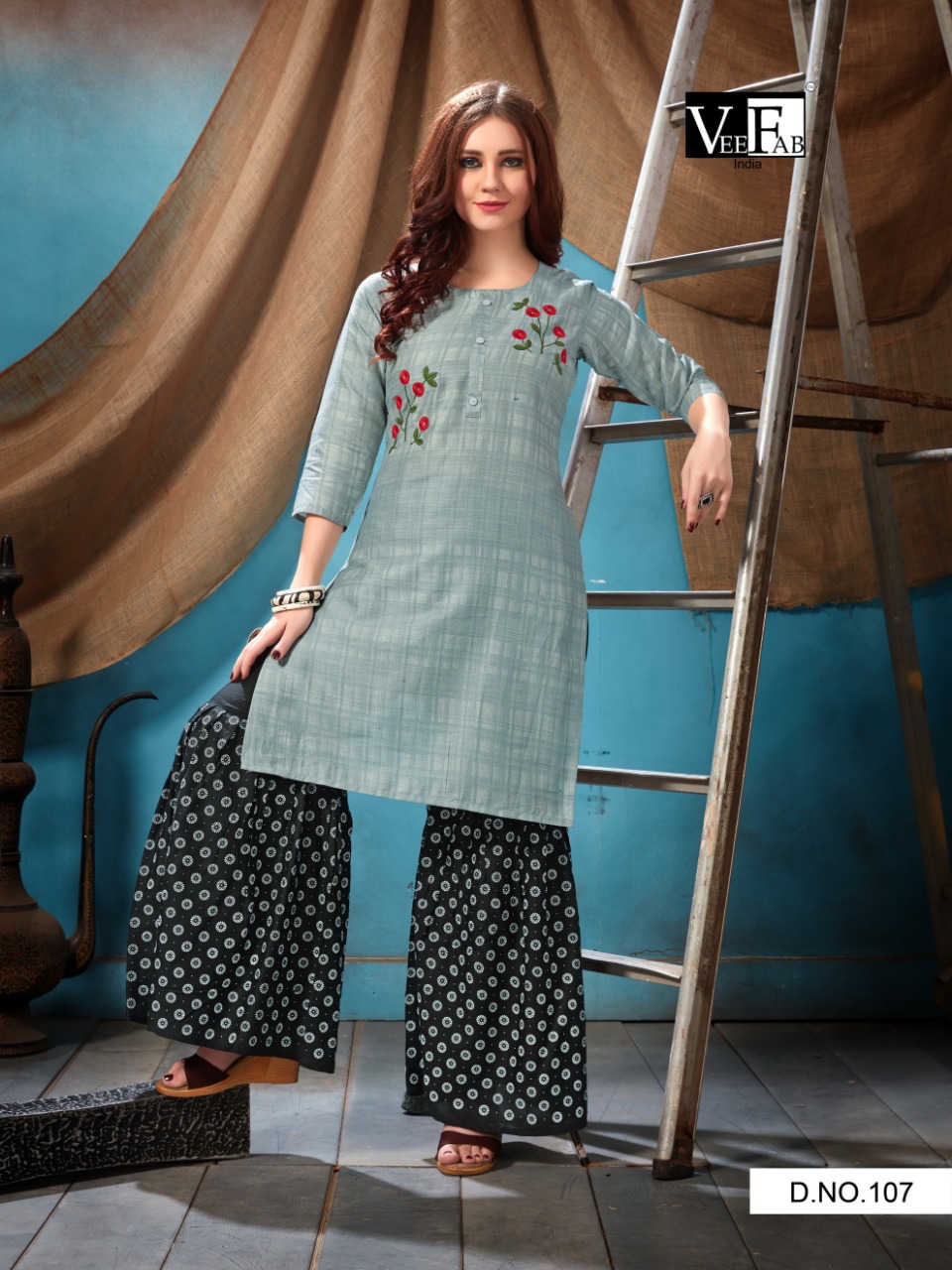 Brand name - Vee Fab India Catalogue name - STYLE IN Description Top : * cotton sitin with different type of Embroidery* Size - M- L -XL -XXl -XXXL Bottom(SHARARA) RAYON 14kg print design* -0ï¸Ââ£8ï¸Â⣠Rate - 650+GST Dispatch Wednesday |