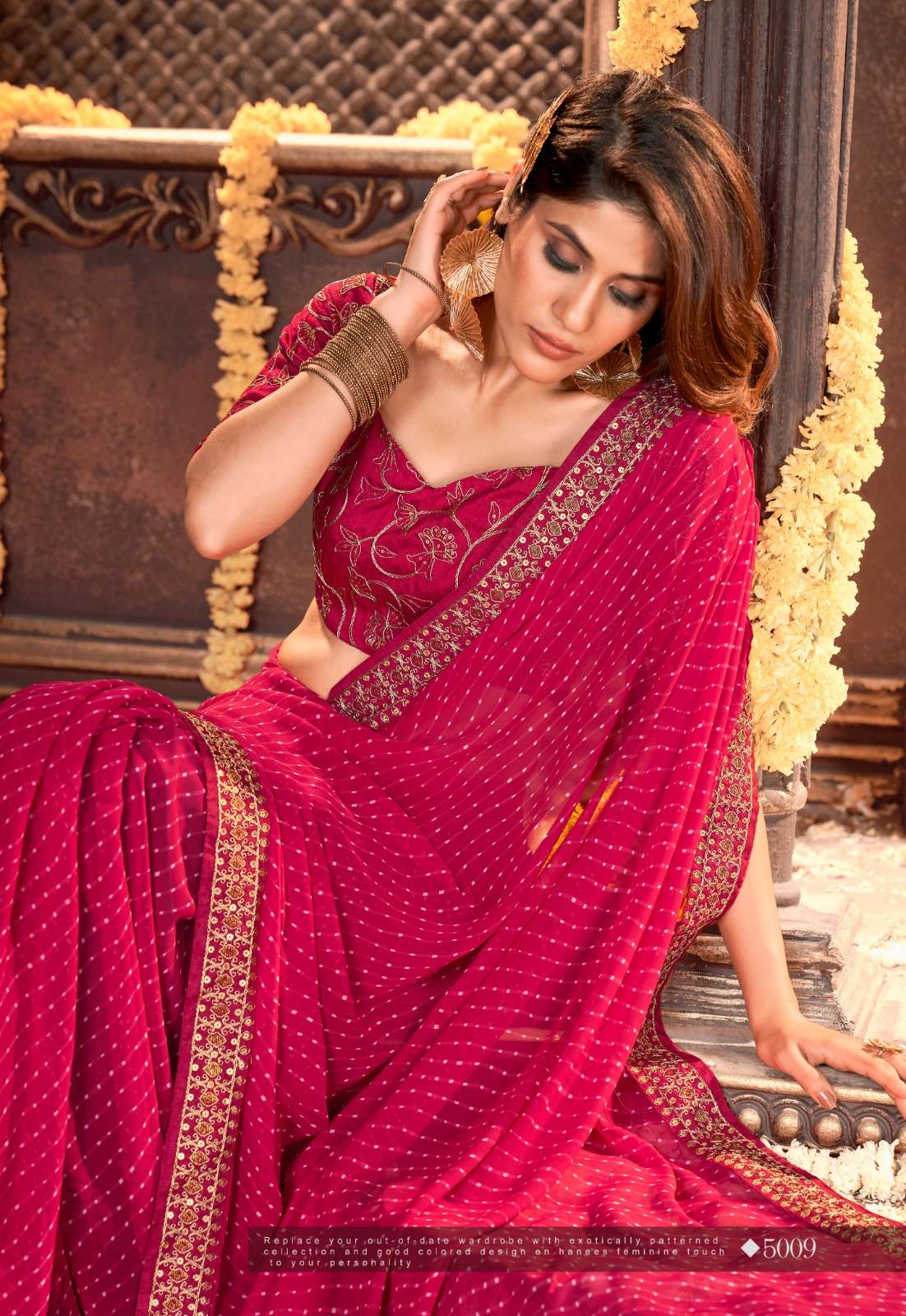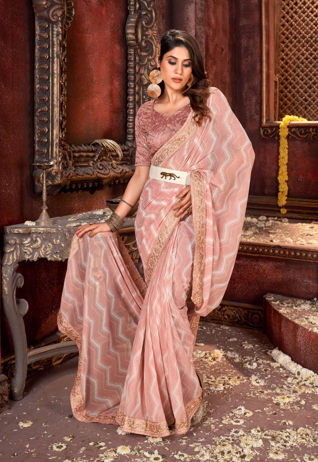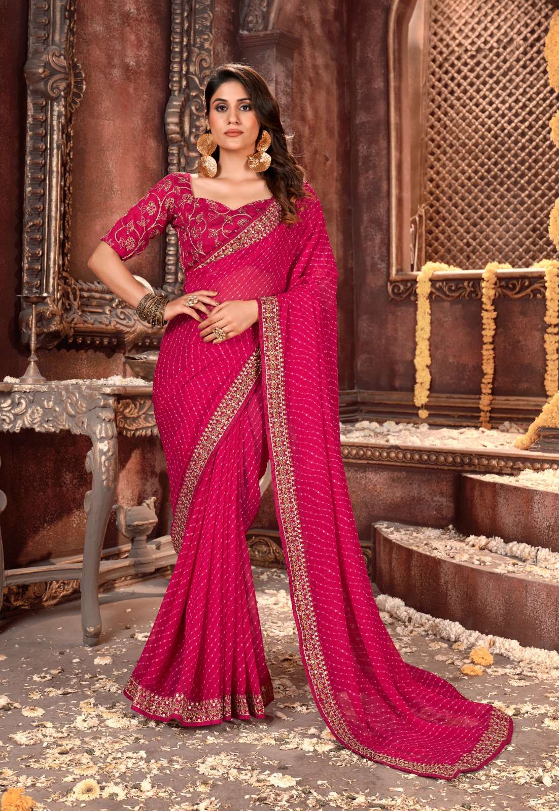 vihana vol 5 by stavan georgette embroidery border saree with designer blouse wholesaler