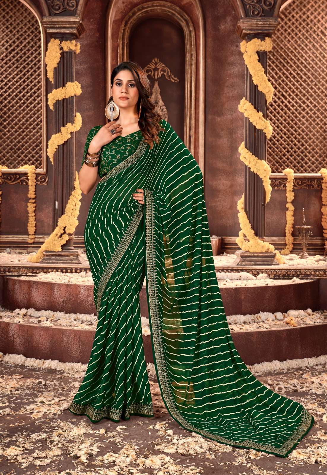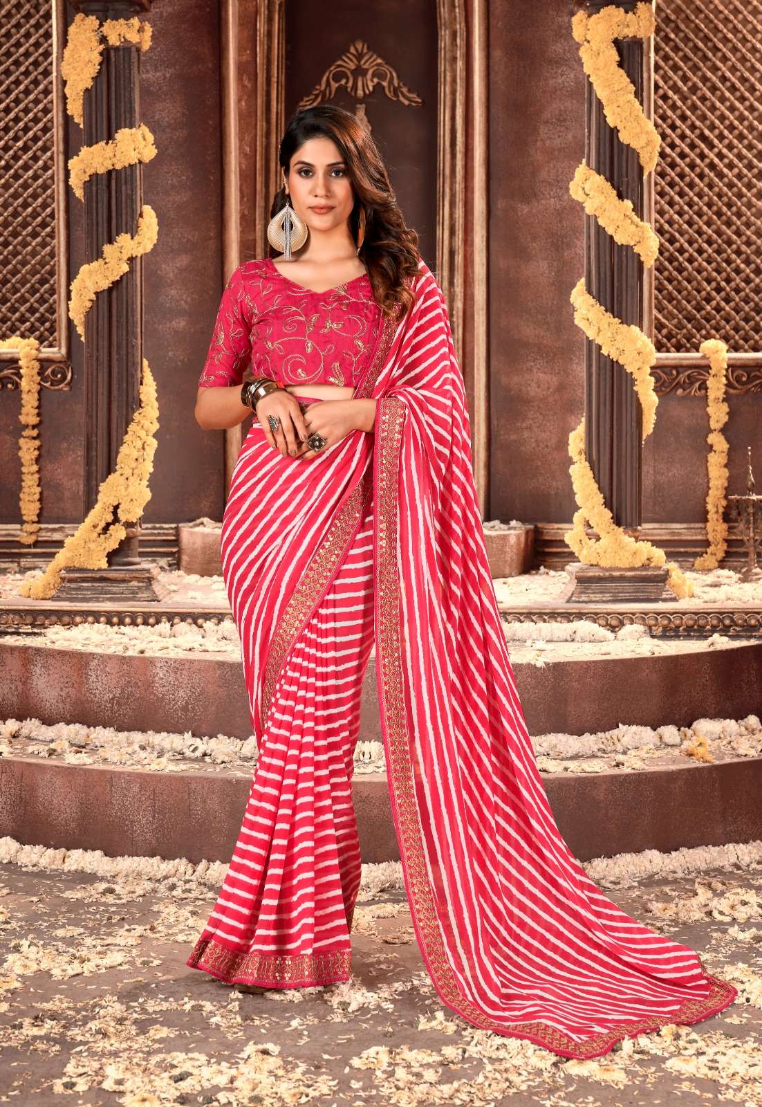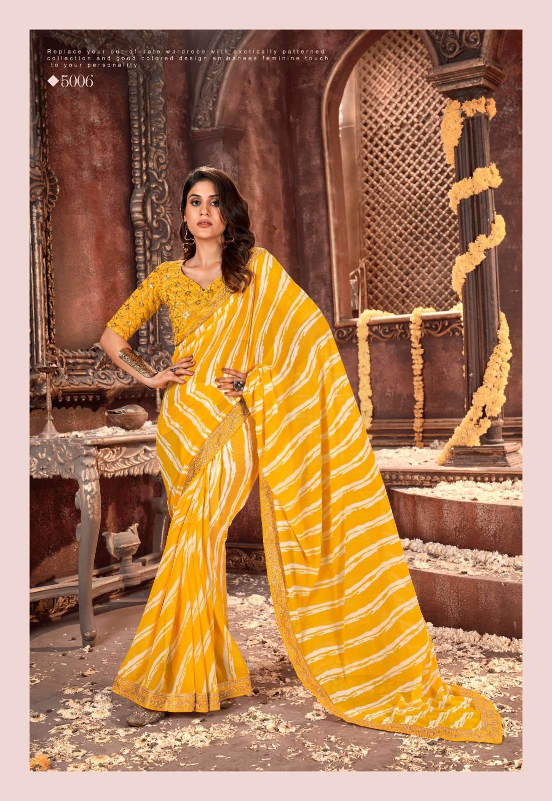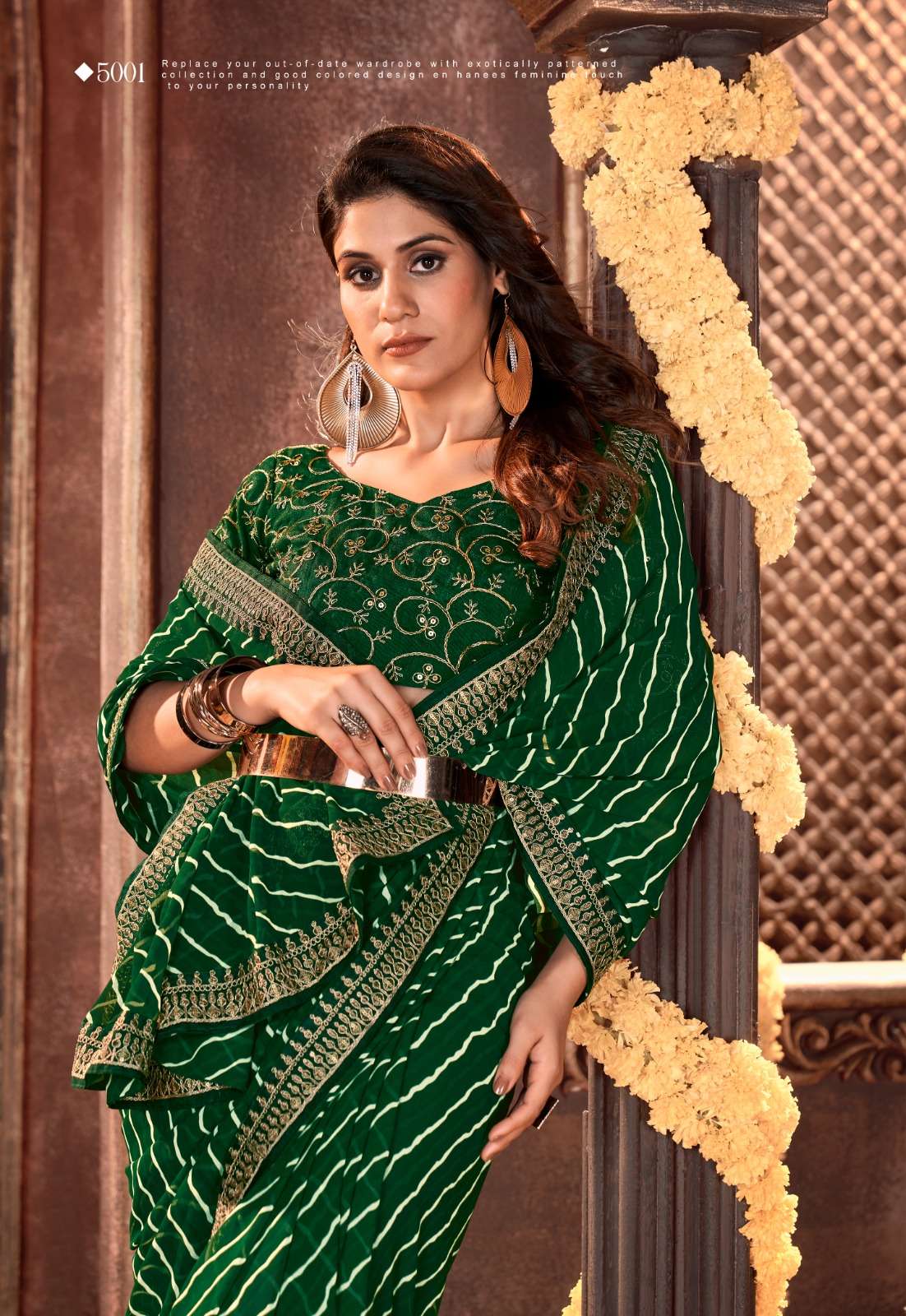vihana vol 5 by stavan georgette embroidery border saree with designer blouse wholesaler