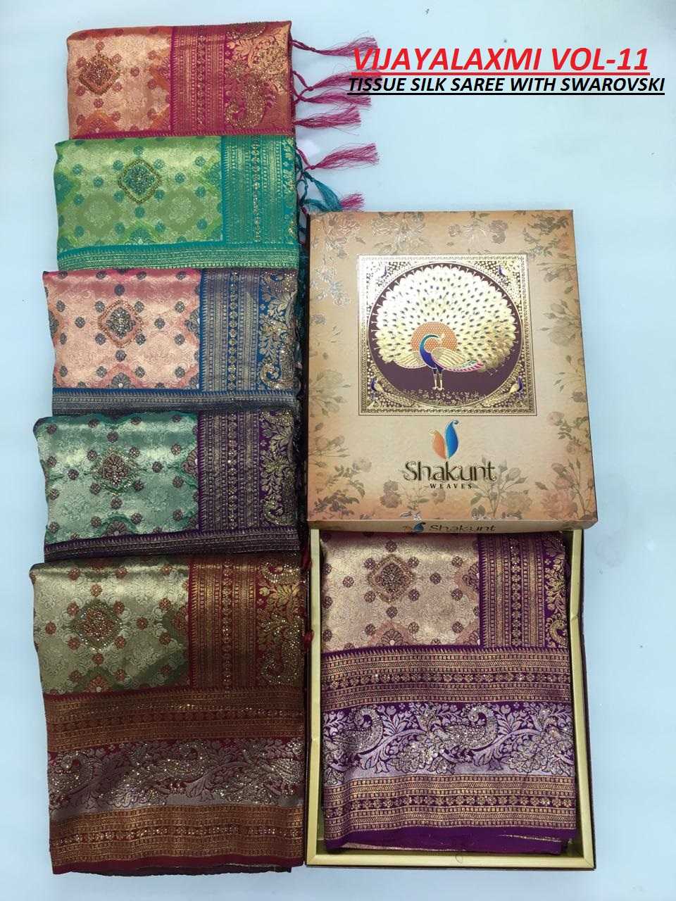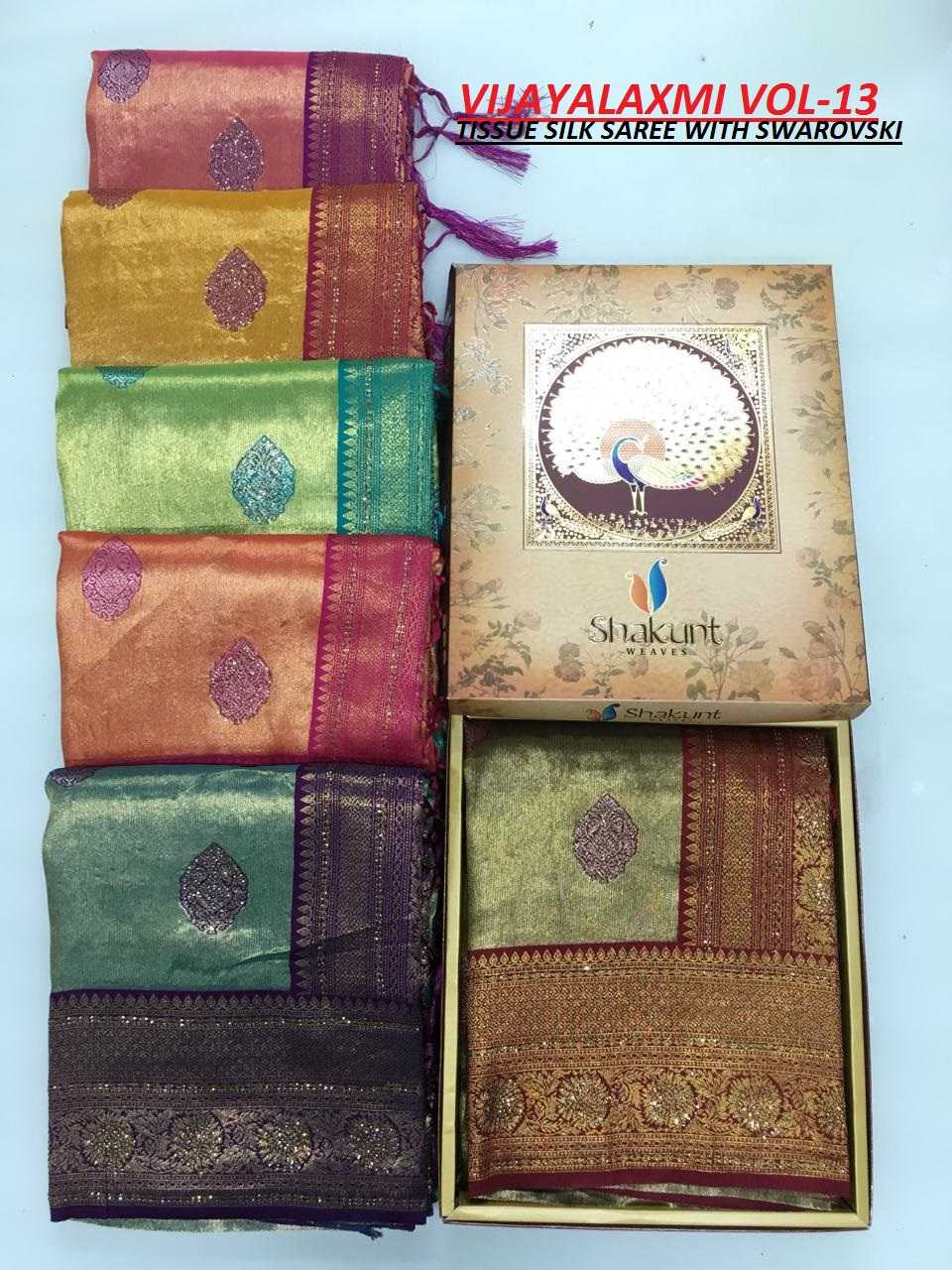 vijaylakshmi by shakunt swarovski work party wear silk saree with blouse