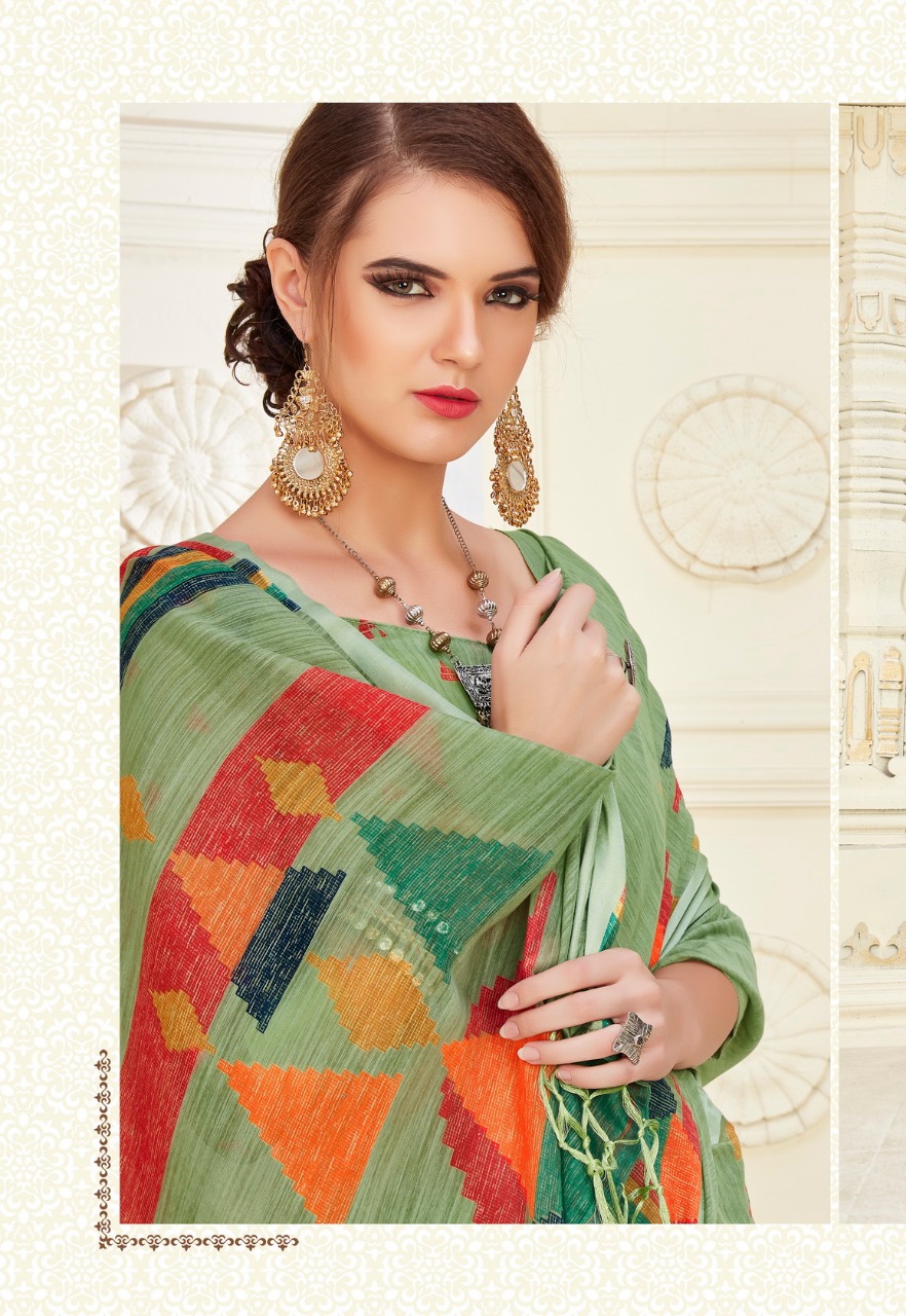 Vinamra Celibraty Green Vol 3 Cotton Satin Casual Wear Saree Clothing Store