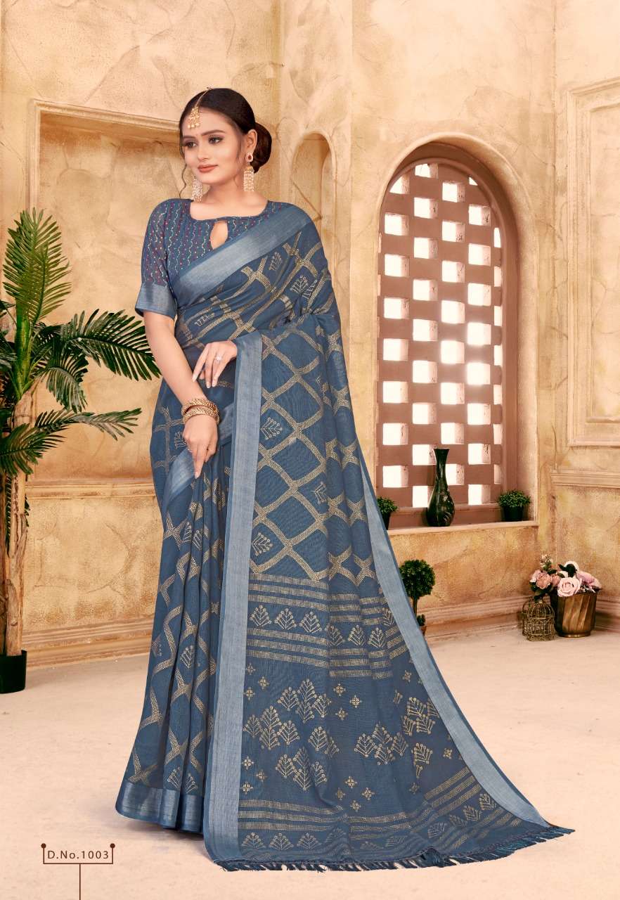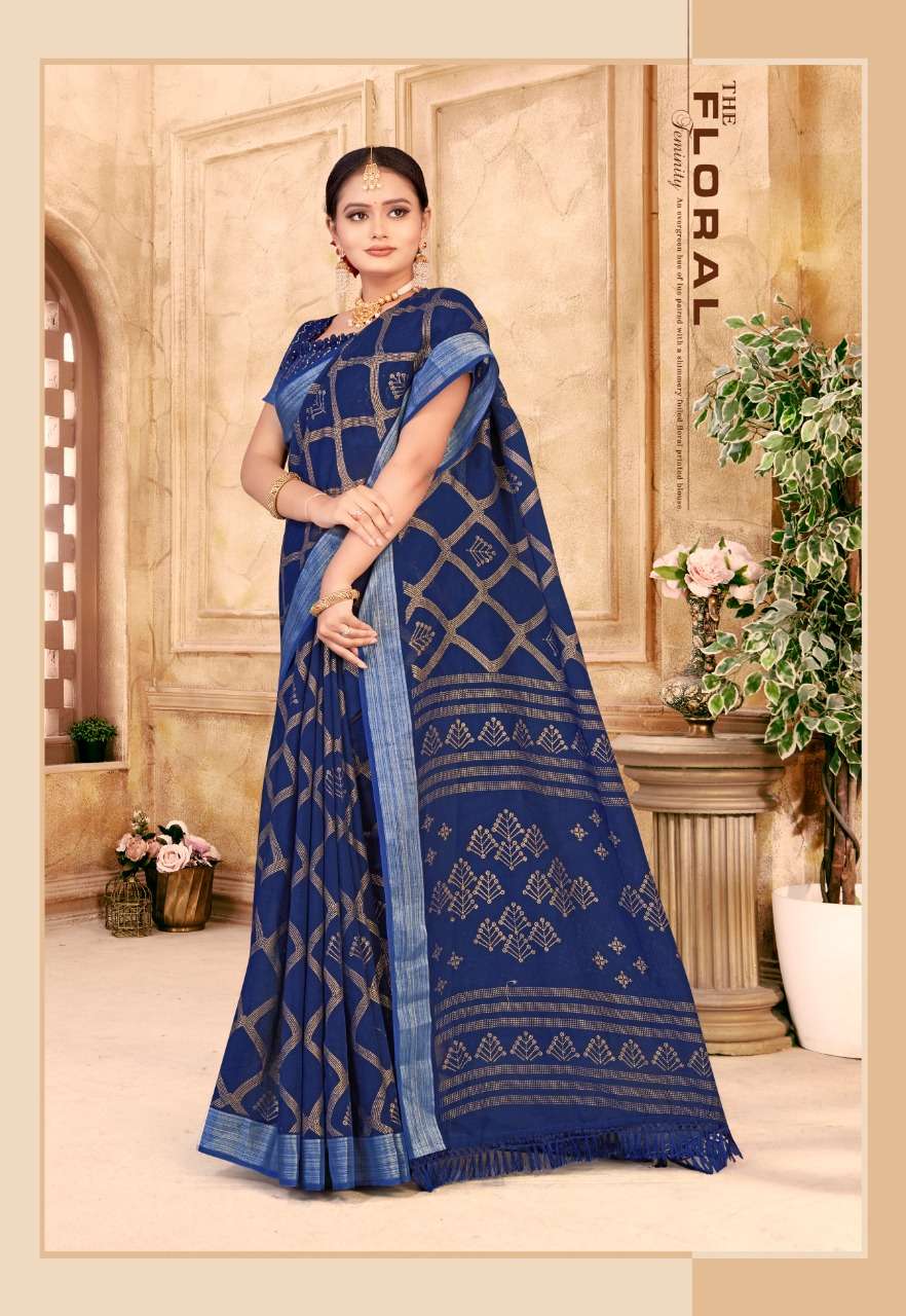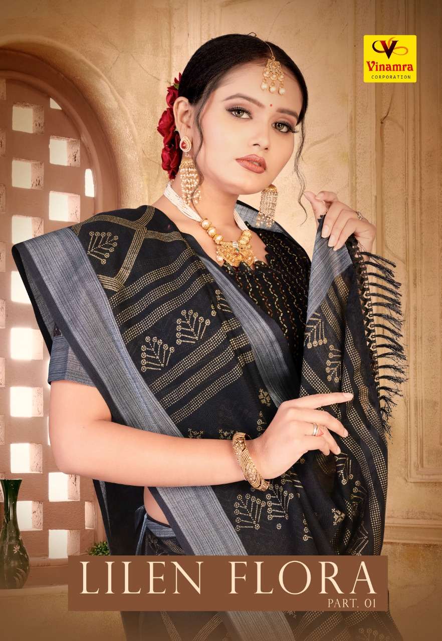 vinamra lilen flora vol 1 linen foil print sarees dealer
