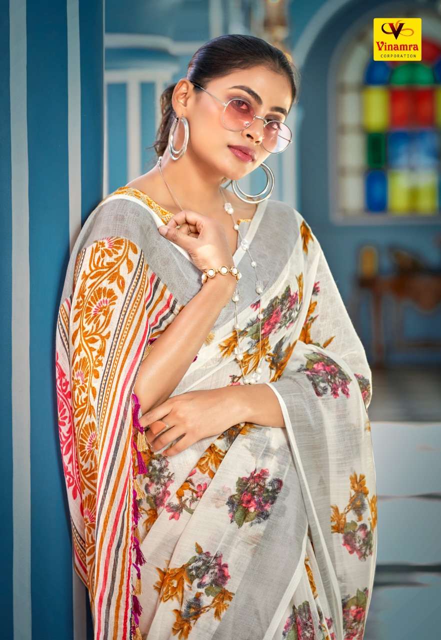 vinamra lilen silver vol 4 lilen cotton saree at affordable price