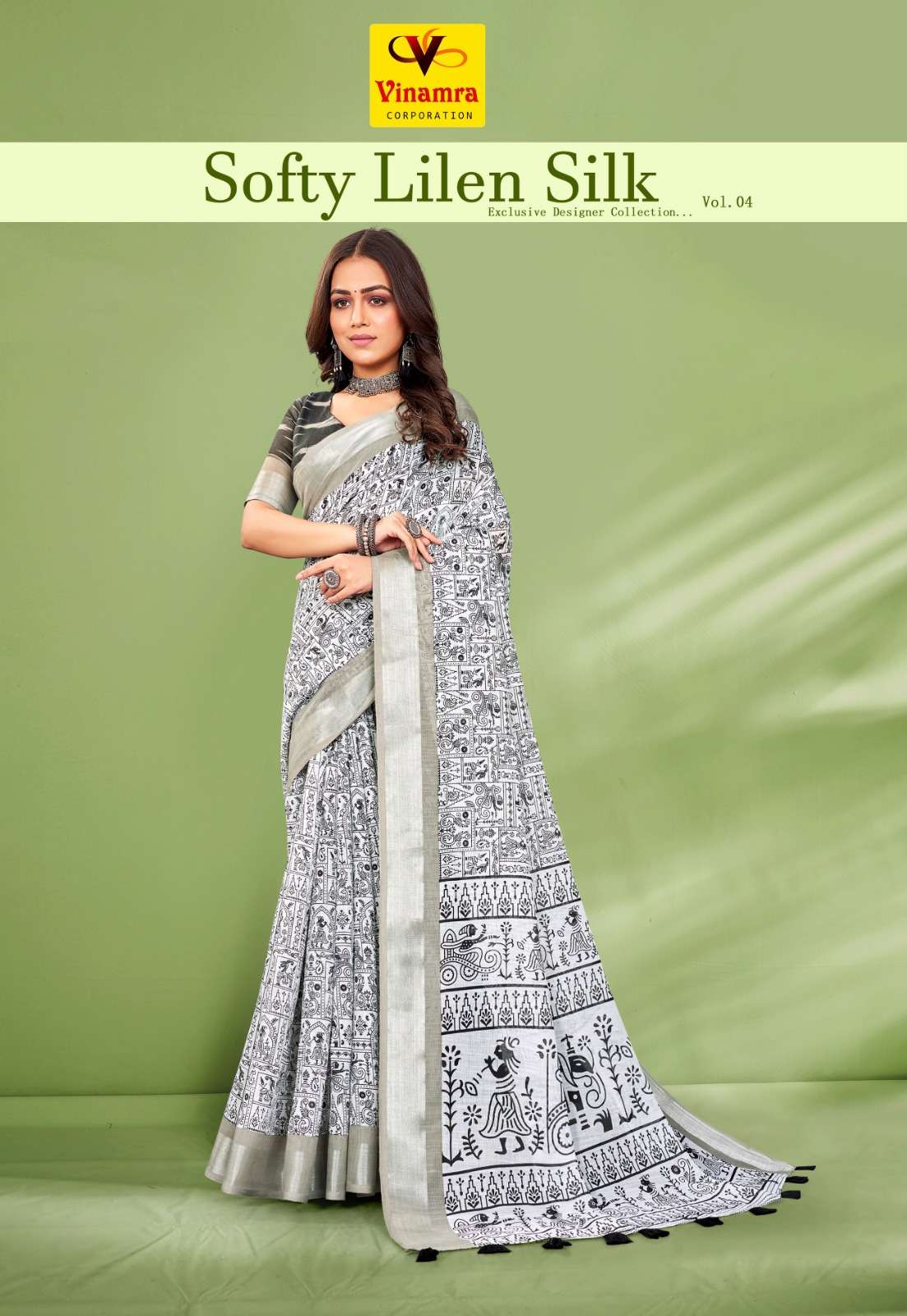 vinamra present softy lilen silk vol 4 adorable daily wear saree collection