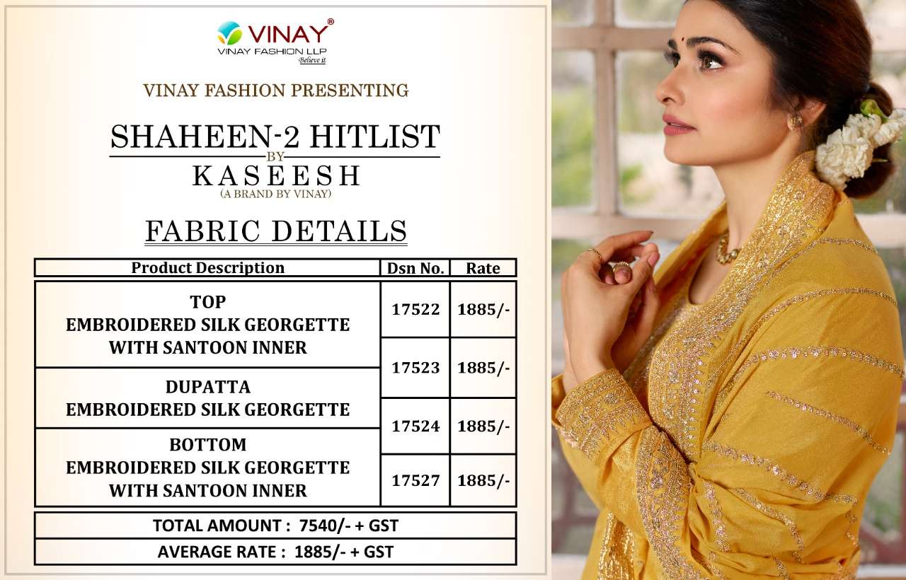 Vinay Fashion KASEESH - SHAHEEN 2 HITLIST FABRIC DETAILS : EMBROIDERED SILK GEORGETTE |