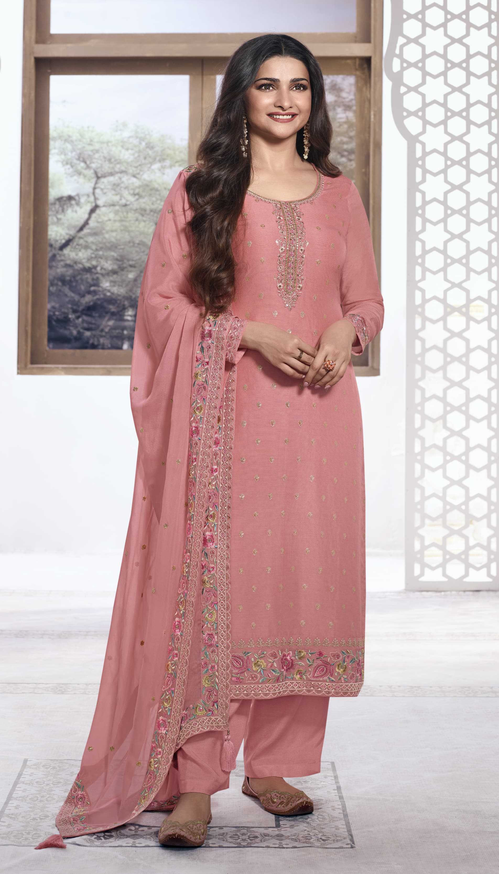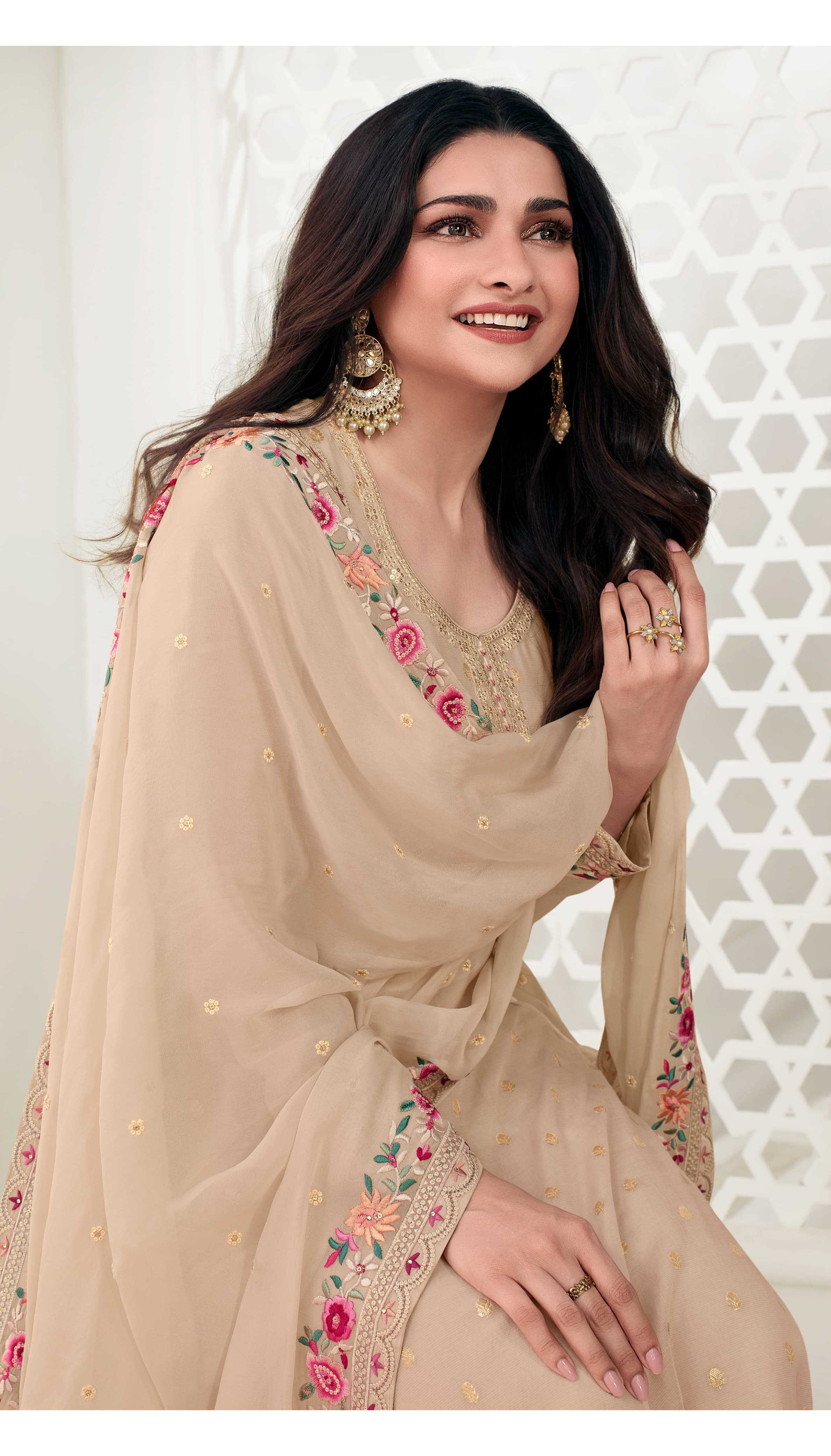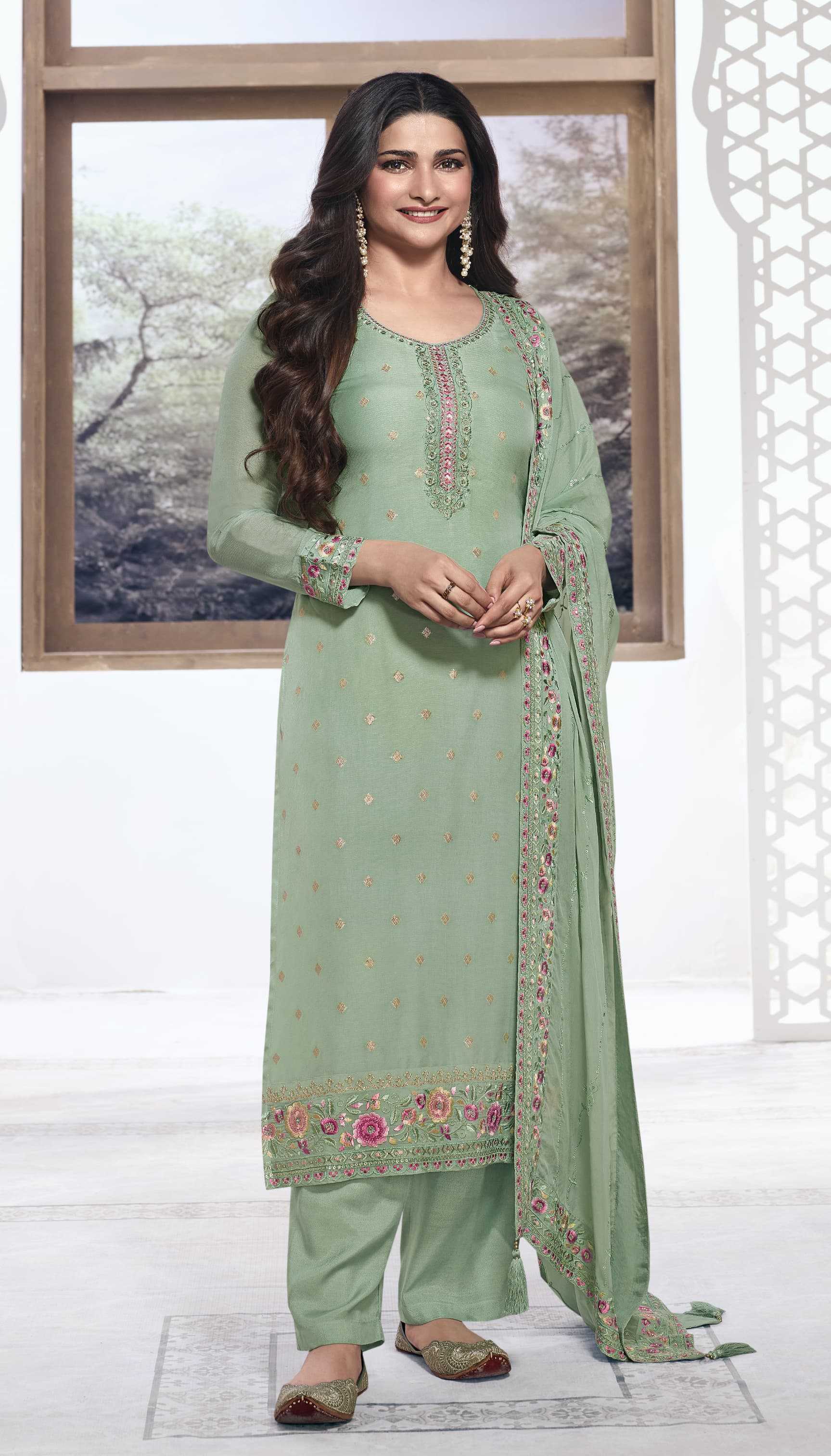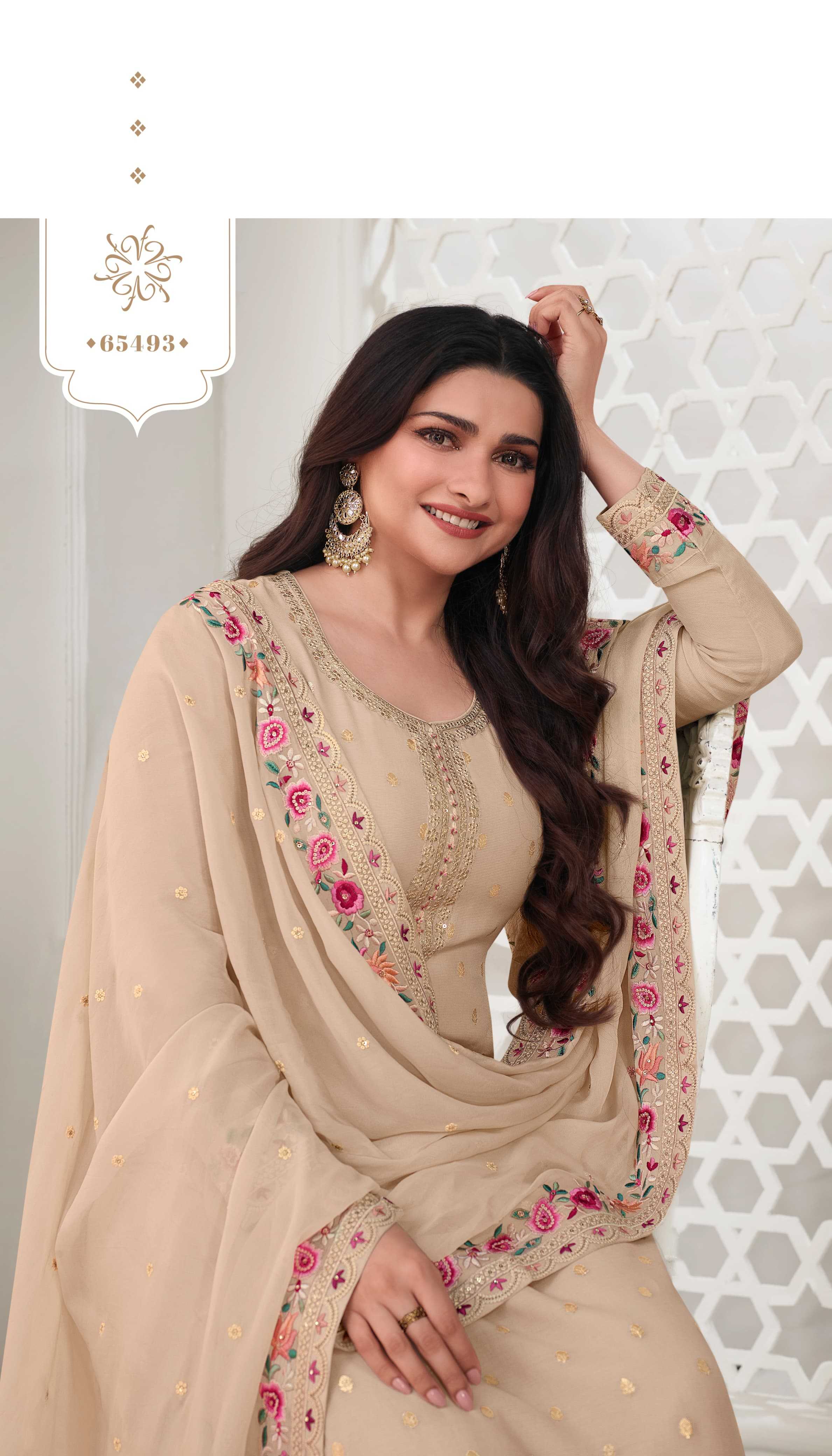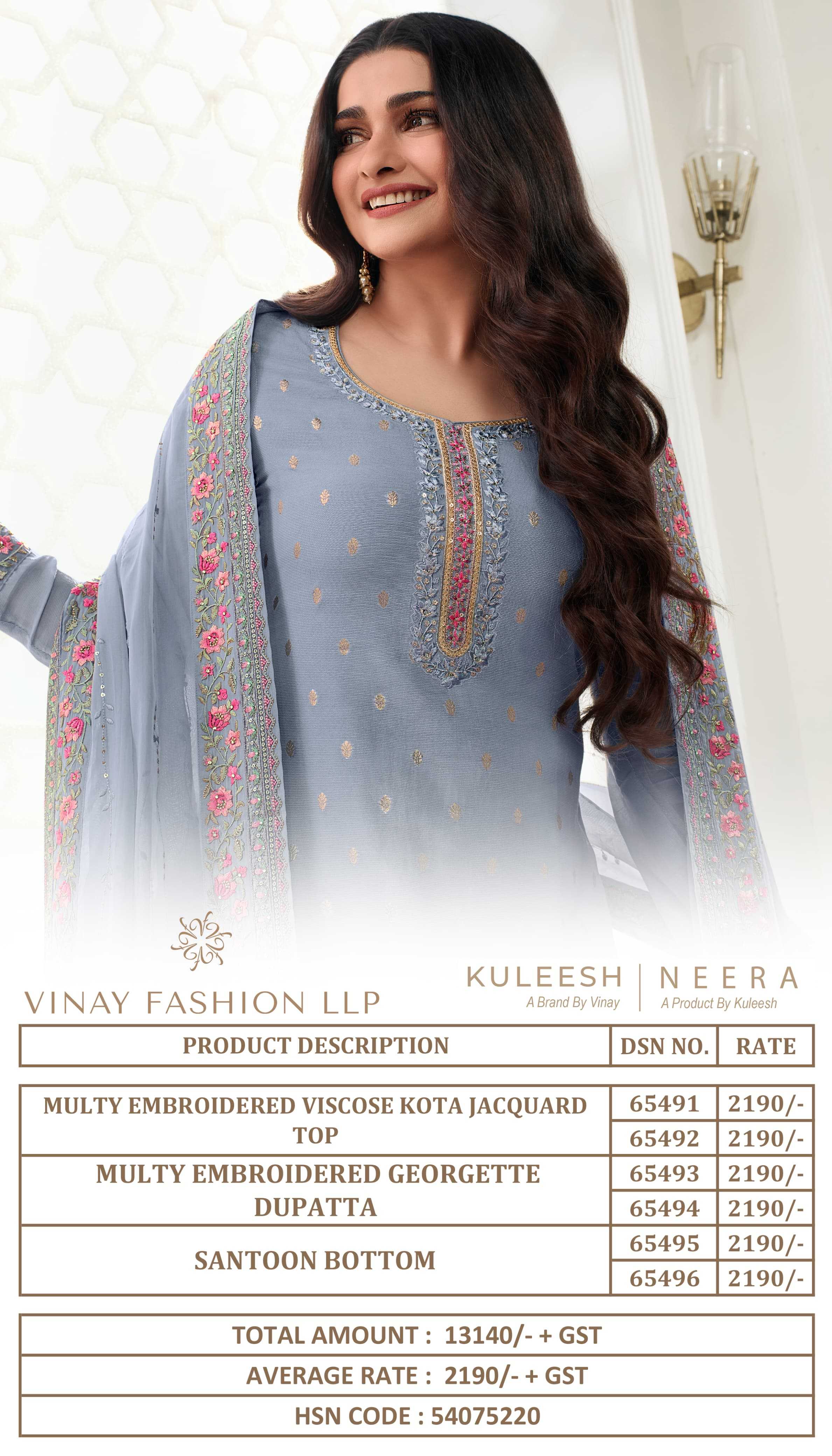 KULEESH - NEERA MULTY EMBROIDERED VISCOSE KOTA JACQUARD TOP WITH MULTY EMBROIDERED GEORGETTE DUPATTA RATE:2190 DESIGN : 6 |