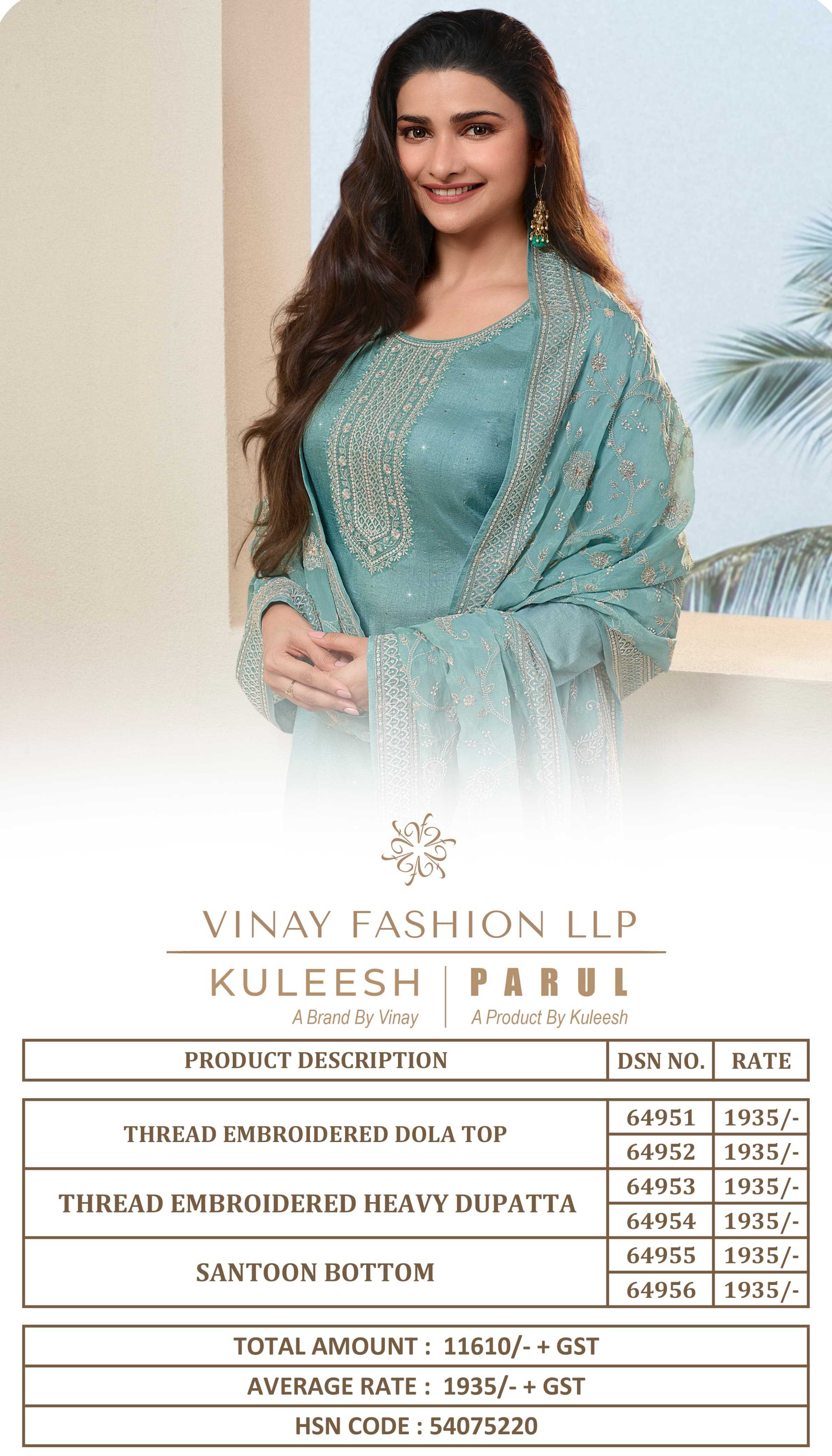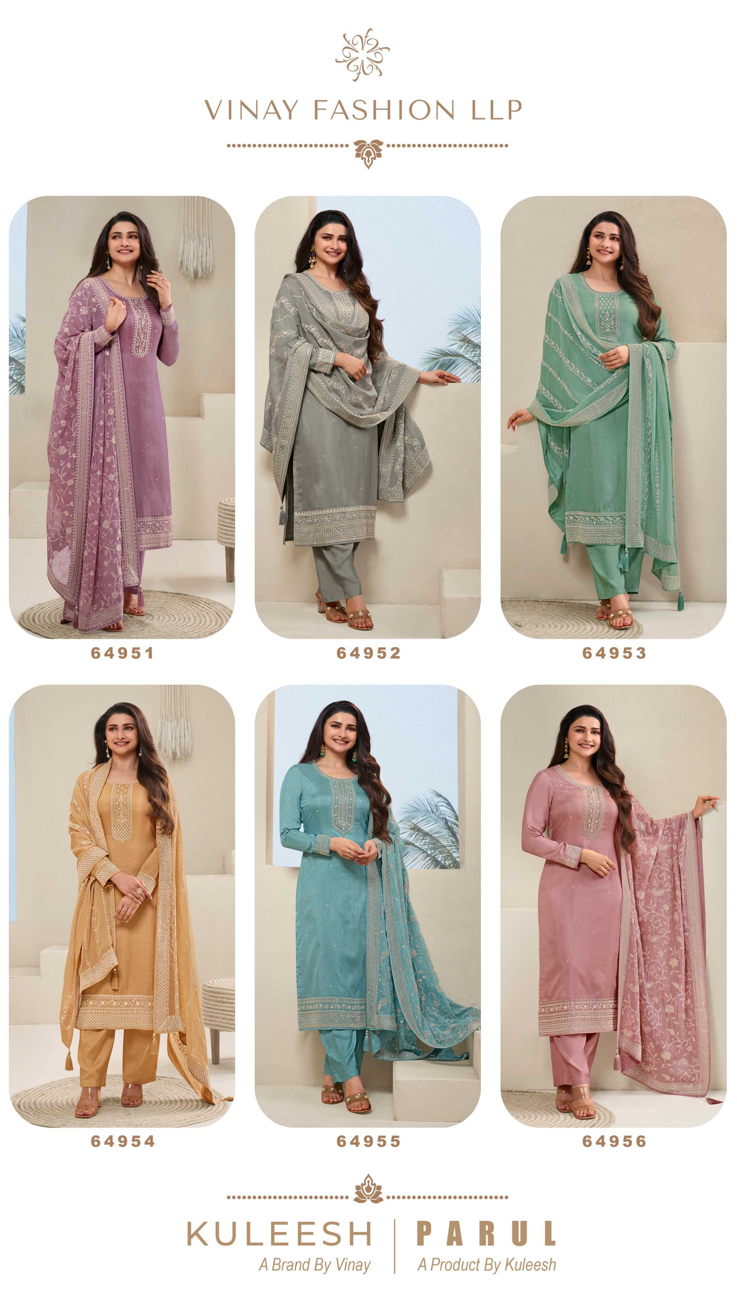 vinay fashion kuleesh present parul party wear heavy embroidery suit material