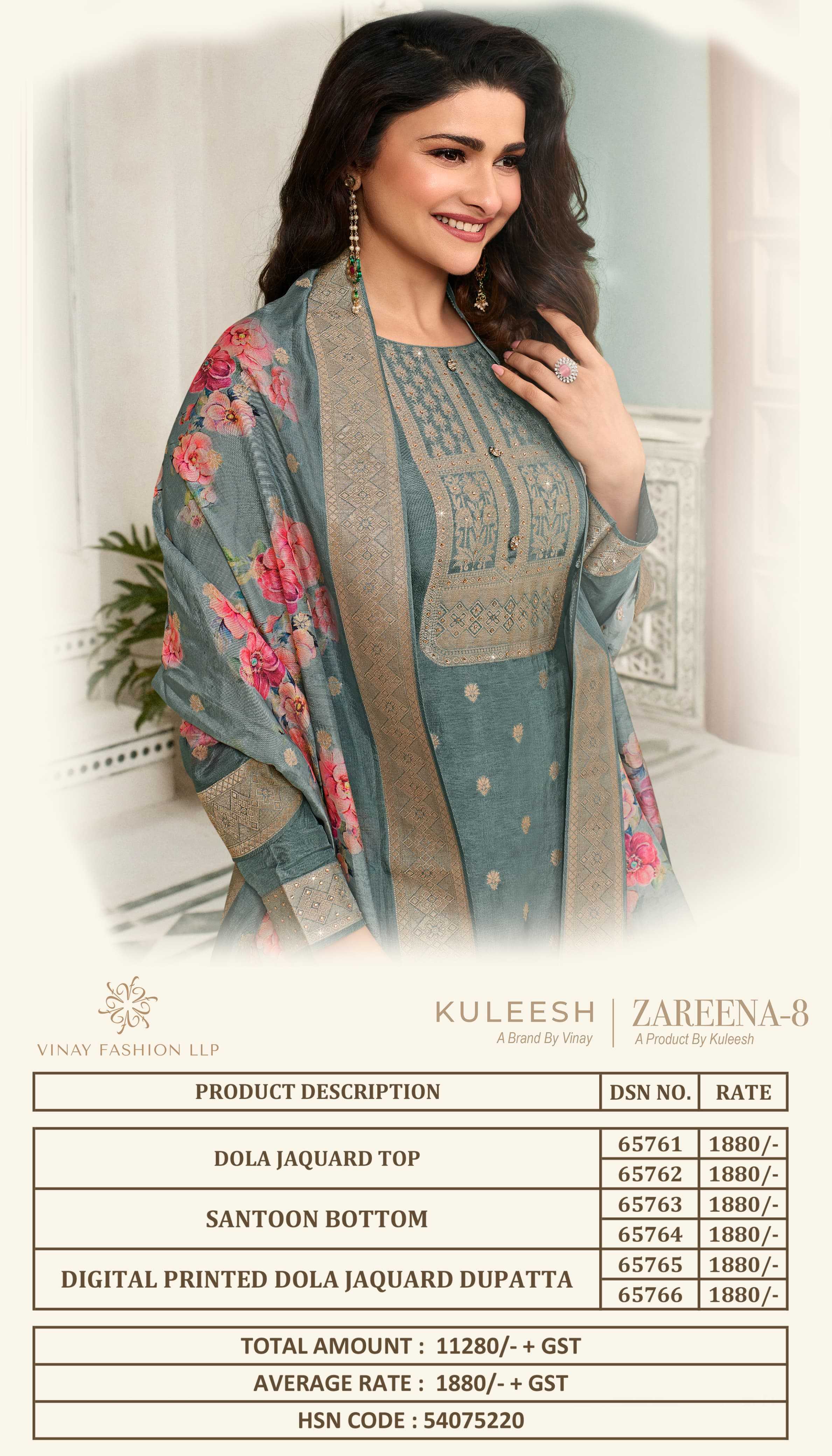 KULEESH - ZAREENA-8 FABRIC DETAILS RATE:1880 DESIGN:6 |