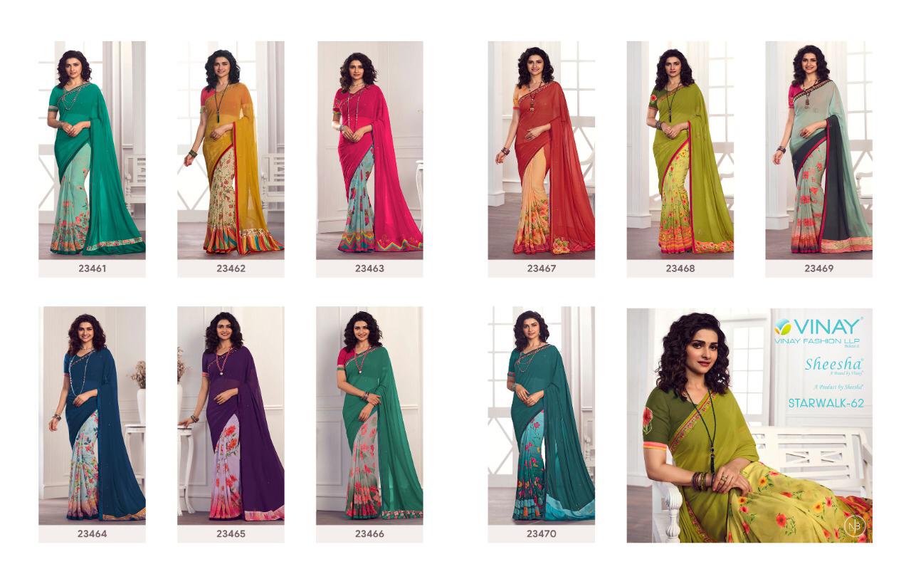 Vinay Fashion Starwalk Vol 62 Georgette Hal Half Colour Collections Saree