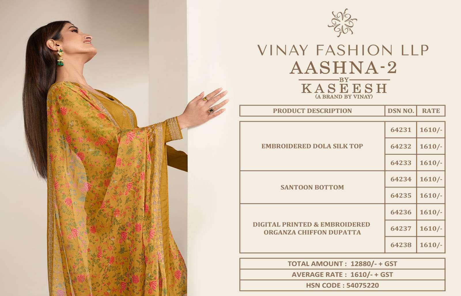 vinay kaseesh aashna vol 2 festive wear designer unstitch salwar kameez with organza chiffon digital dupatta