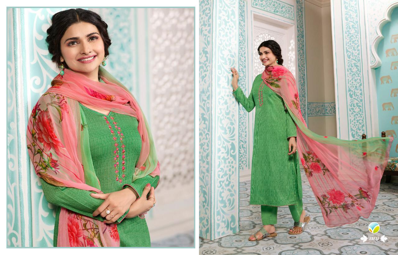 KERVIN - AARUSHI FABRIC :- PREMIUM COTTON SATIN TOP AND BOTTOM WITH PURE CHIFFON DUPATTA WORK :- THREAD EMBROIDERY WITH DIGITAL PRINT RATE : 1165/- |