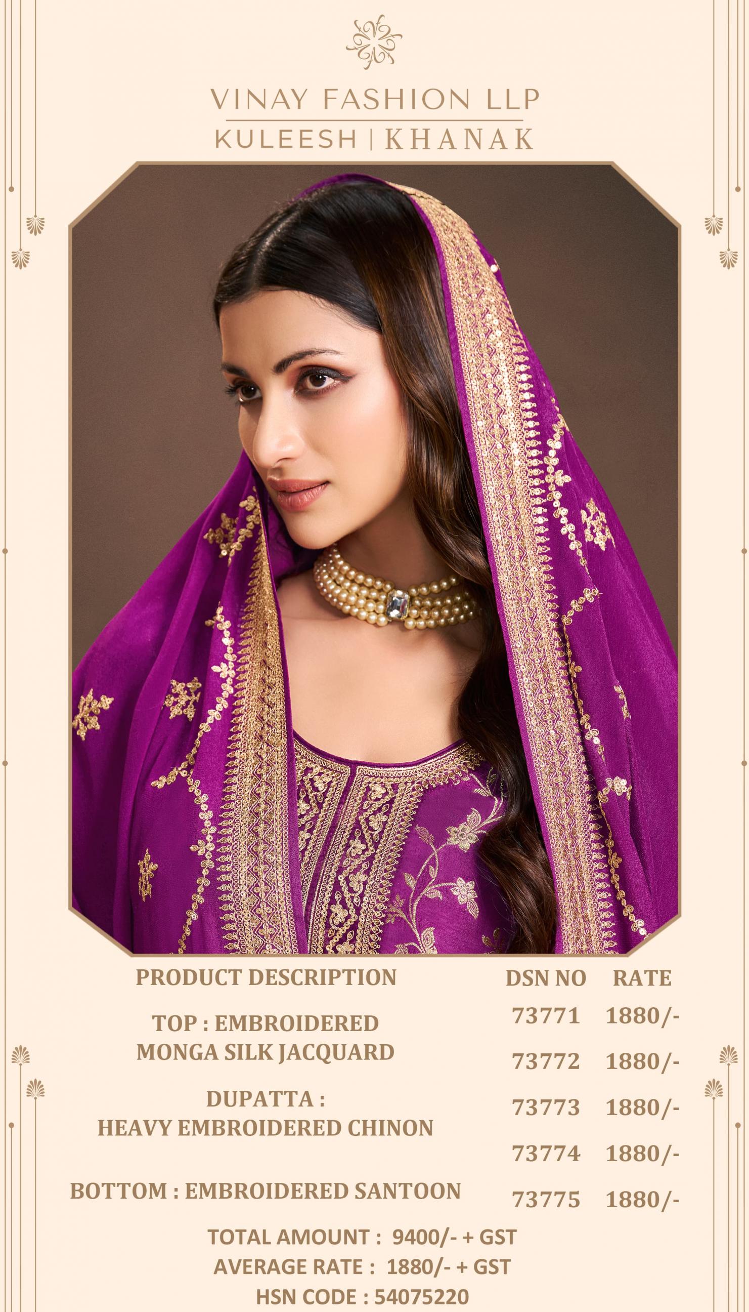 vinay kuleesh khanak monga silk jacquard festive dress materials
