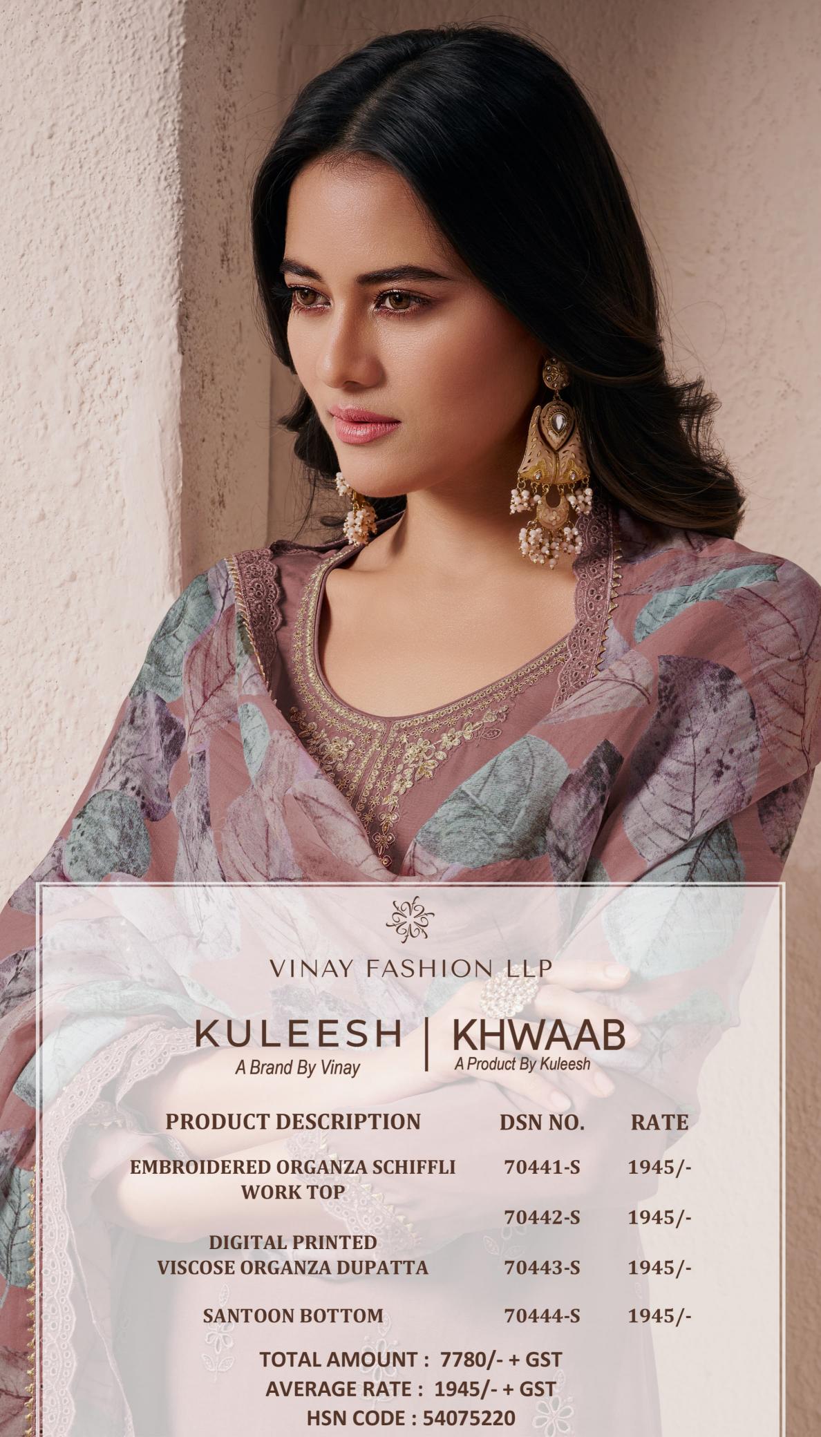 vinay kuleesh khwaab organza embroidery schiffli pakistani suits
