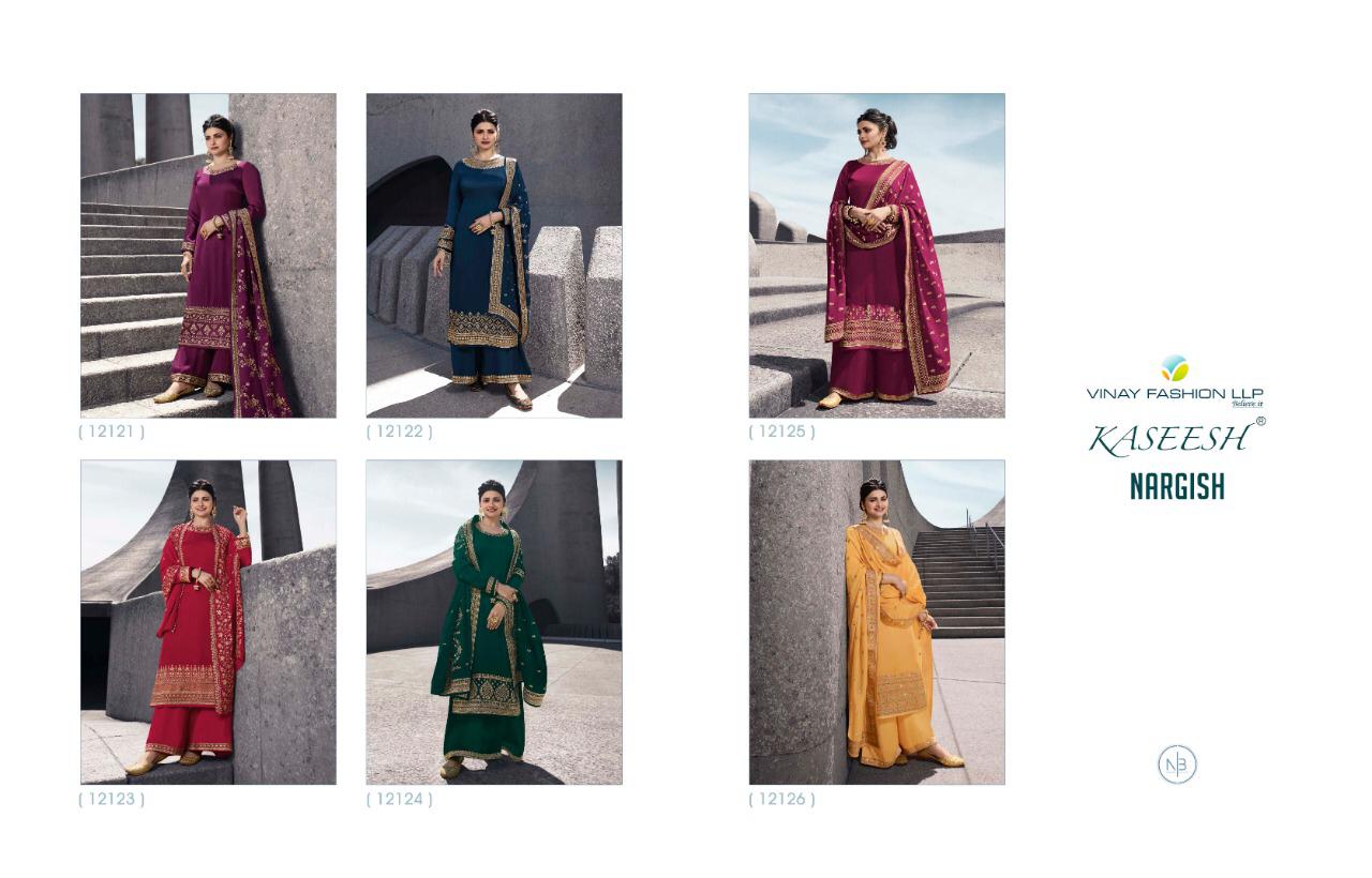 Vinay Nargish 12121-12126 Series Satin Georgette Embroidery Salwar Kameez