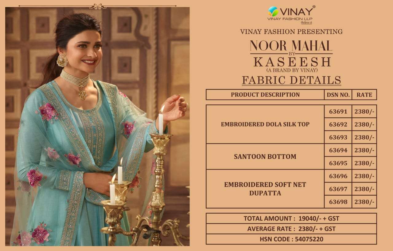 KASEESH - NOOR MAHAL DRESS MATERIAL FABRIC DETAILS : EMBROIDERED DOLA SILK TOP WITH EMBROIDERED SOFT NET DUPATTA |