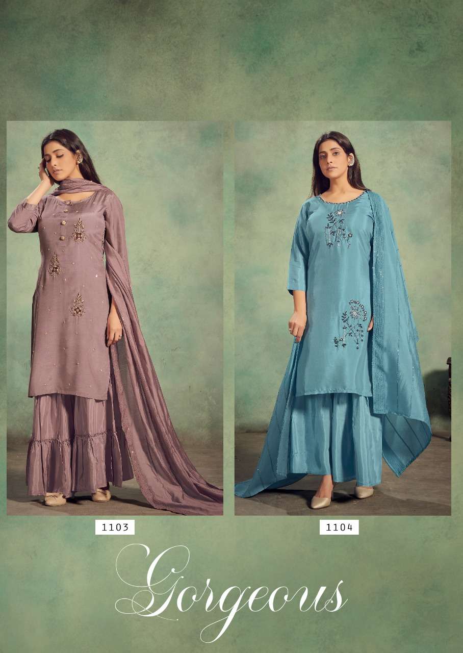 “GORGEOUS BY VINK” KURTA WITH DUPATTA & SHARARA. FABRIC - PURE VISCOSE ONLY HANDOWORK KURTA & PURE SHARARA. PURE JACQUARD DUPATTA. RATE - ₹1399/- + GST. SIZES - M(38)-L(40)-XL(42)-2XL(44). 4 DESIGNS. KURTA LENGTH - 46”+ SHARARA LENGTH - 37”+ 3 PIECE PARTYWEAR COLLECTION! |