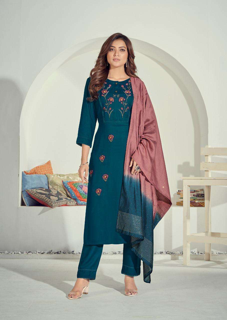 "PRIZMA BY VINK" *KURTA WITH PANTS & DUPATTA * FABRIC - PREMIUM RAYON IN KURTA AND PANTS. JACQUARD SEQUINS DUPATTA RATE - RS. 899/- 6 DESIGNS SIZES - M(38), L(40), XL(42), 2XL(44) & 3XL(46). KURTI LENGTH - 46"+ (WITH PANTS & DUPATTA) Set to set DAILY WEAR BY VINK |