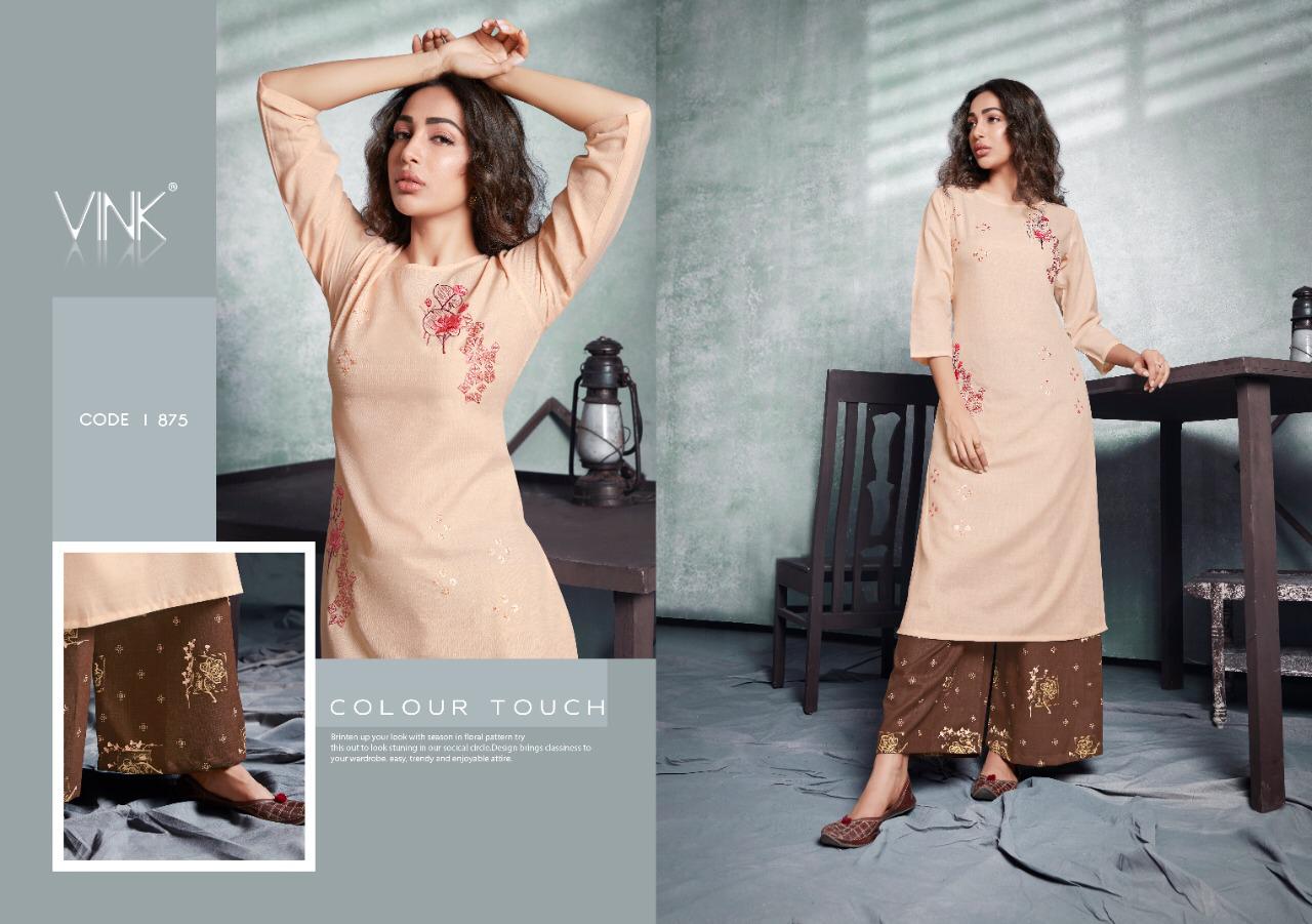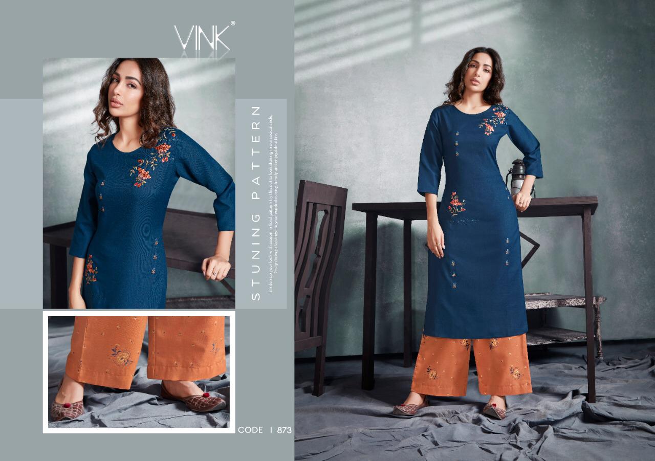 Vink Radiance Cotton Linen Festive Collections Kurti With Printed Plazzo Online Seller
