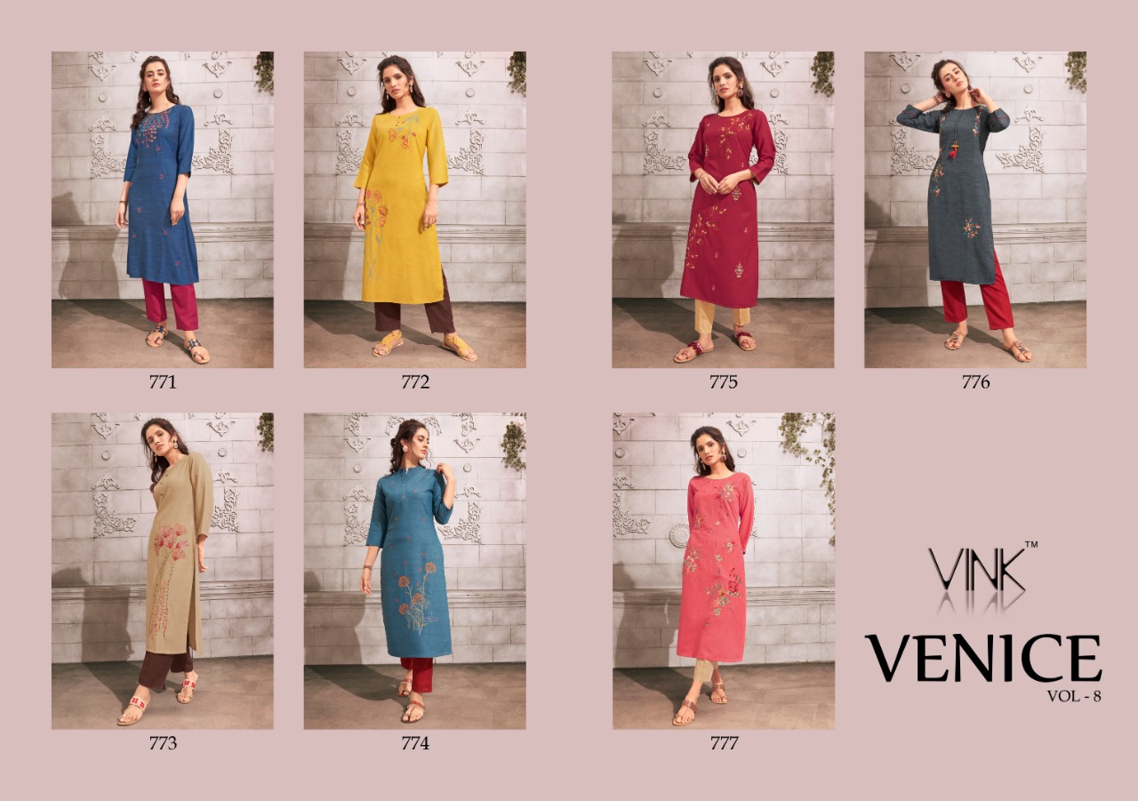 Vink Venice Vol 8 Viscose Handloom Party Wear Straight Kurtis