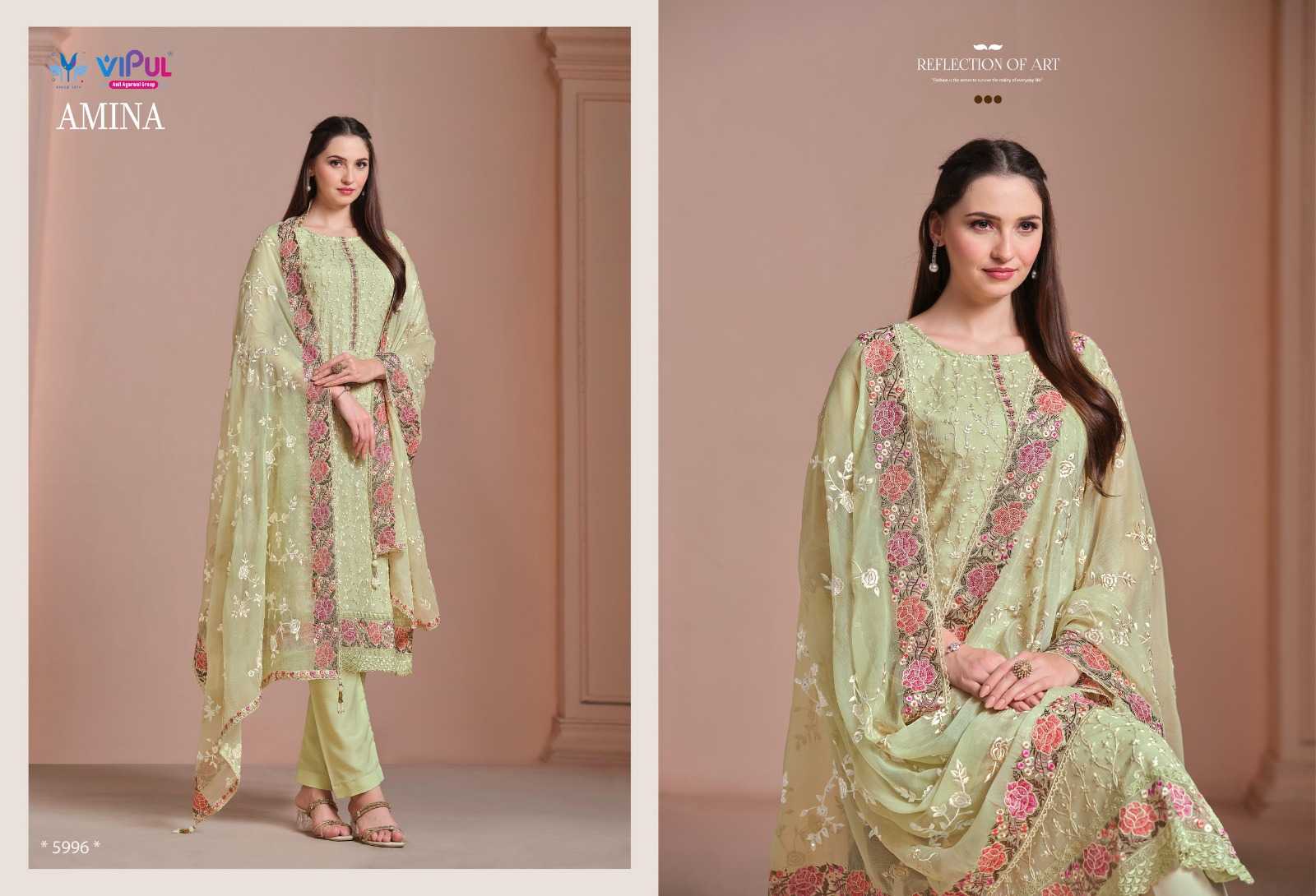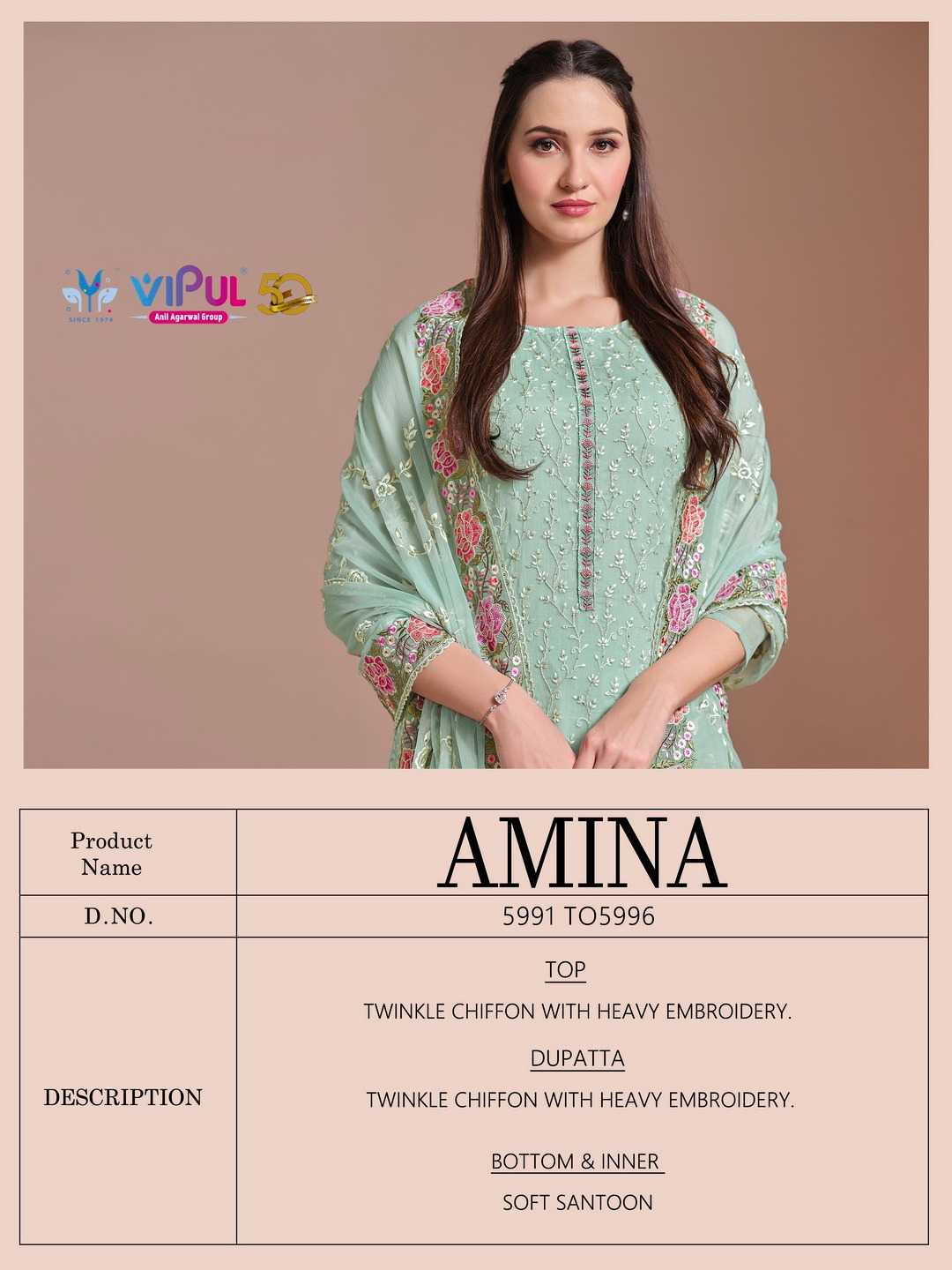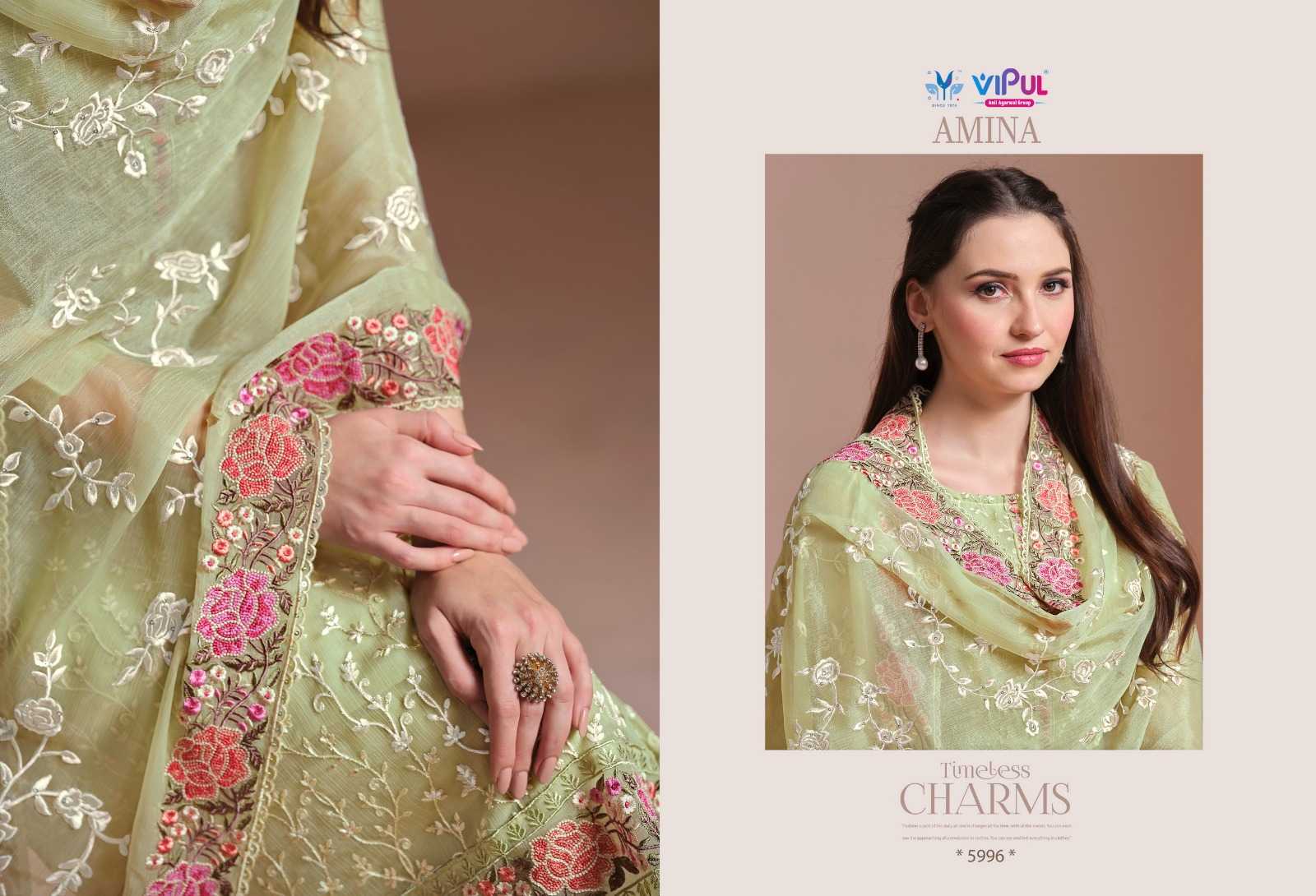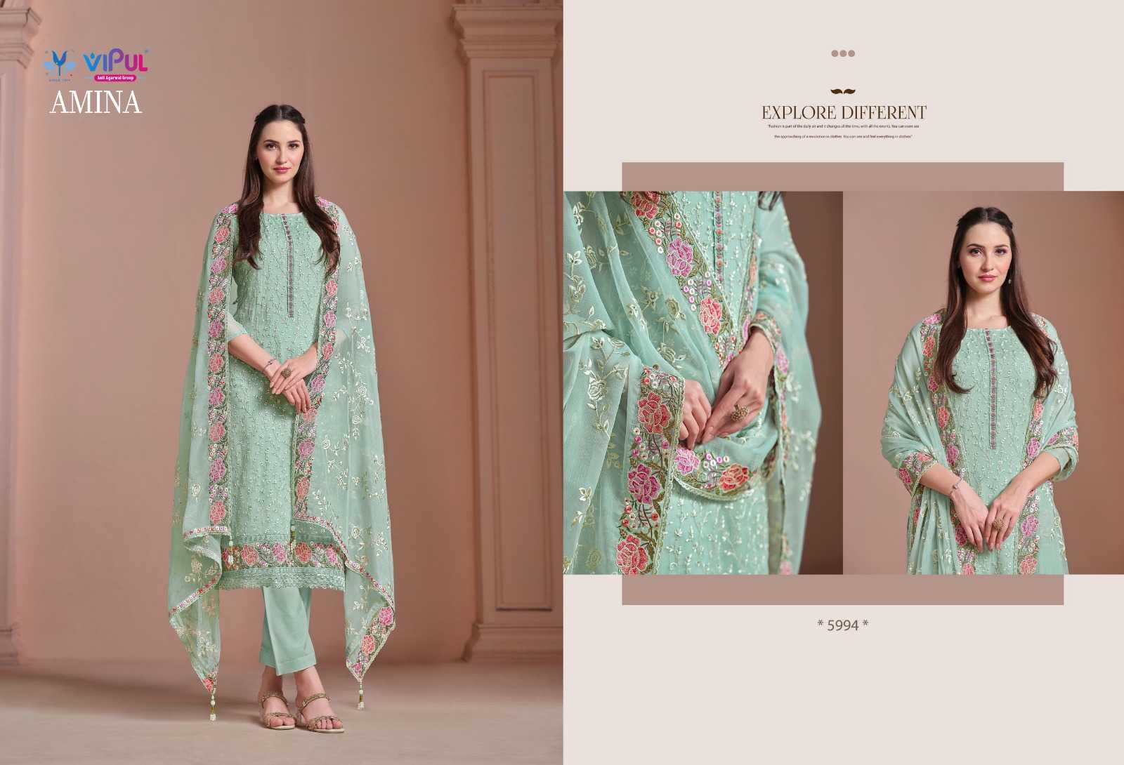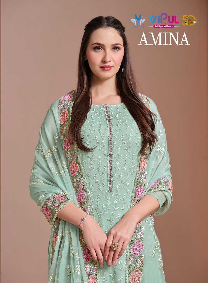 vipul fashion amina heavy embroidery twinkle chiffon suits collection