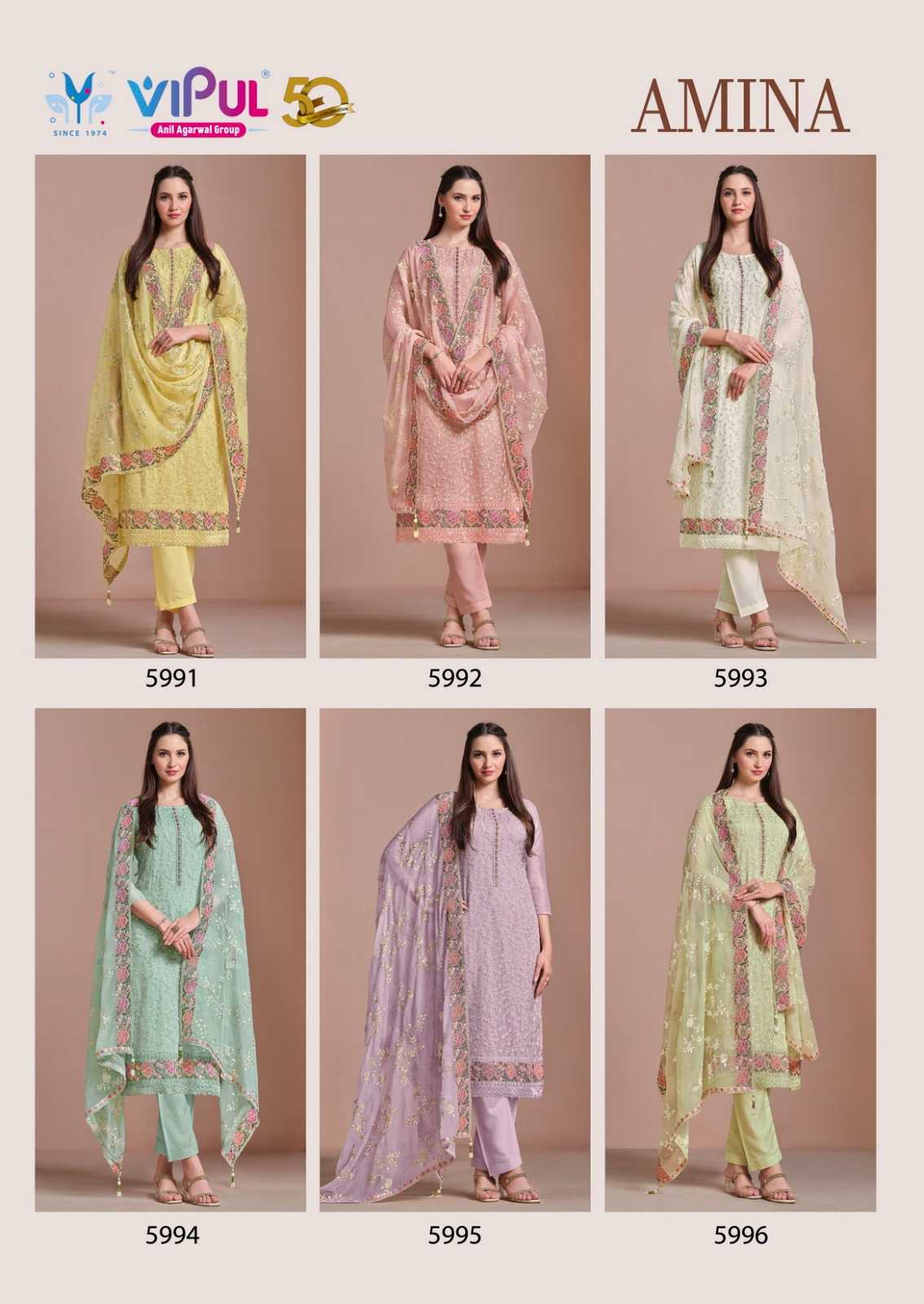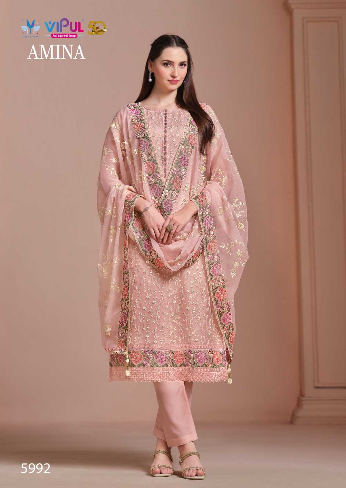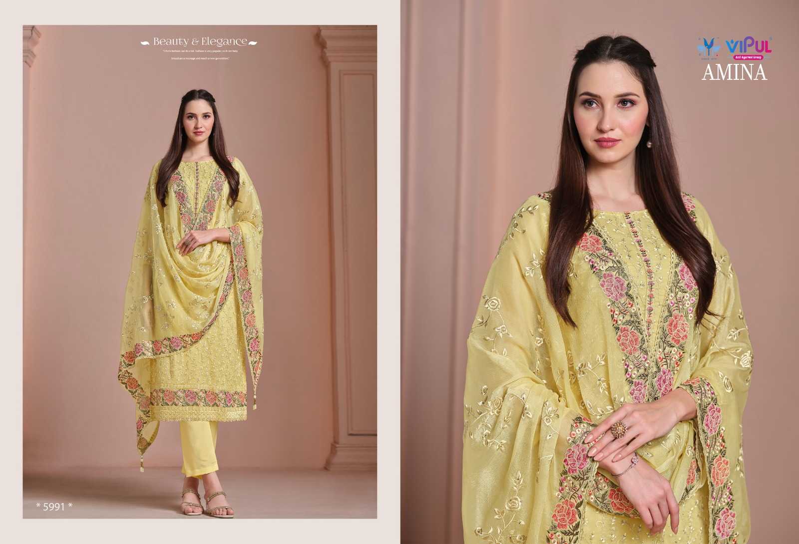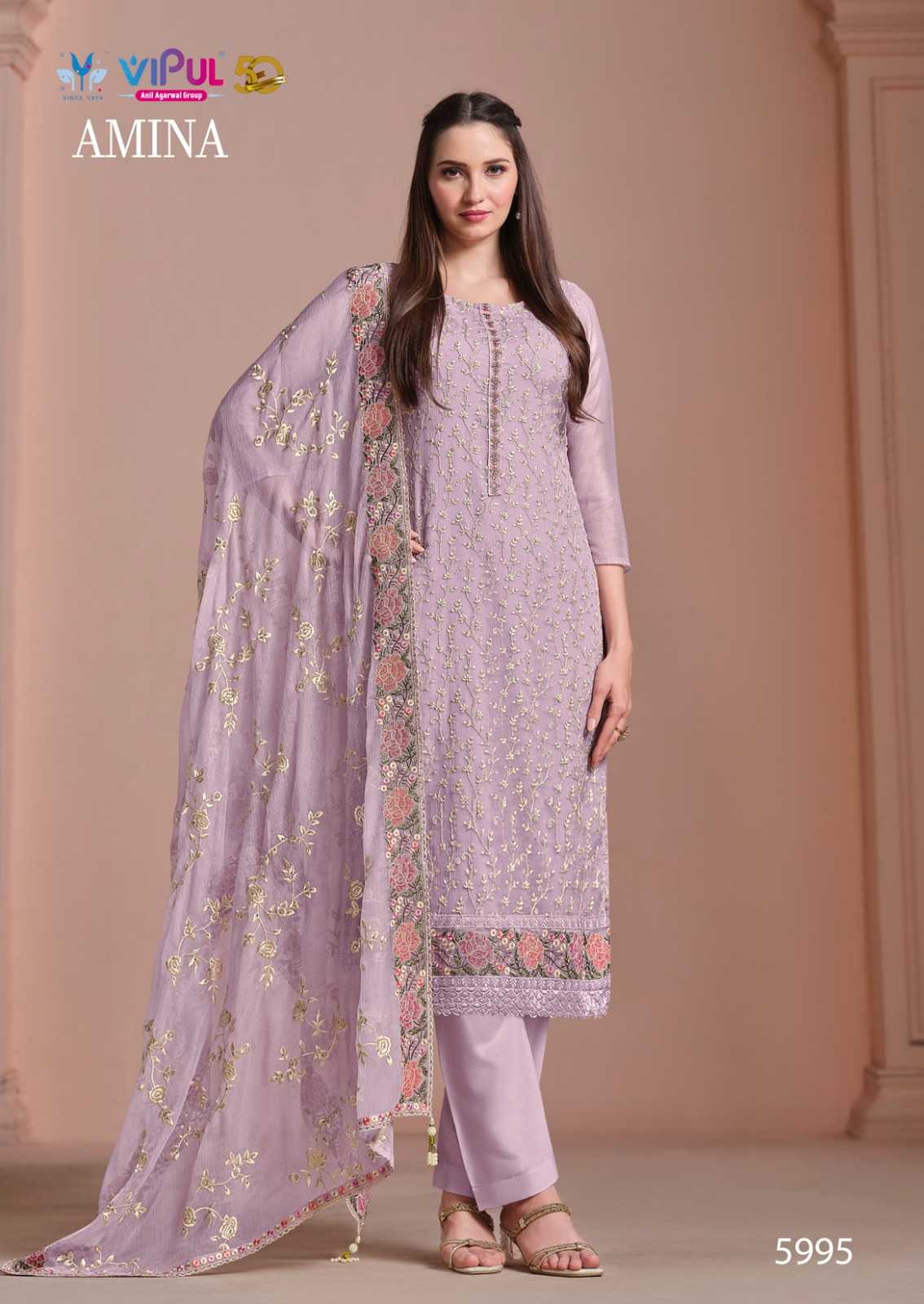 vipul fashion amina heavy embroidery twinkle chiffon suits collection