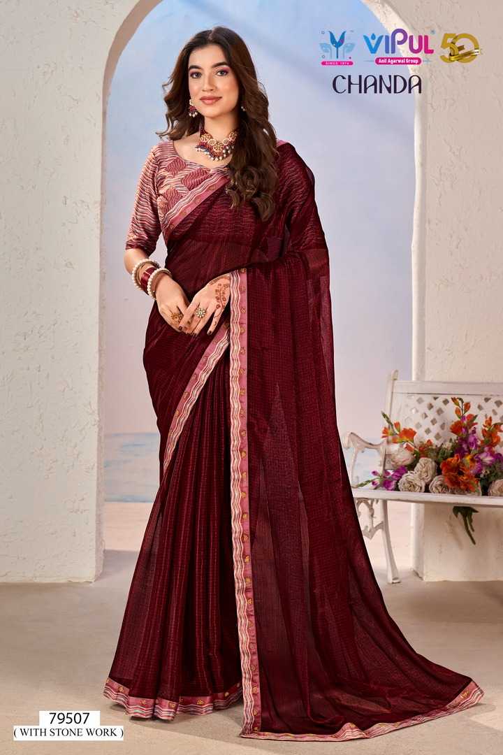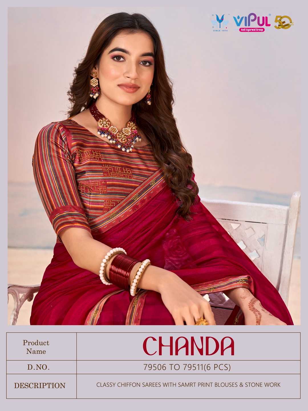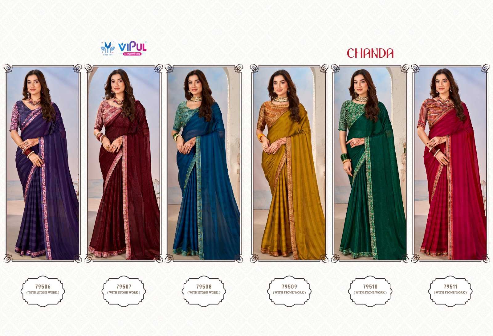 vipul fashion chanda 79506-79511 elegant chiffon printed sarees with stone work