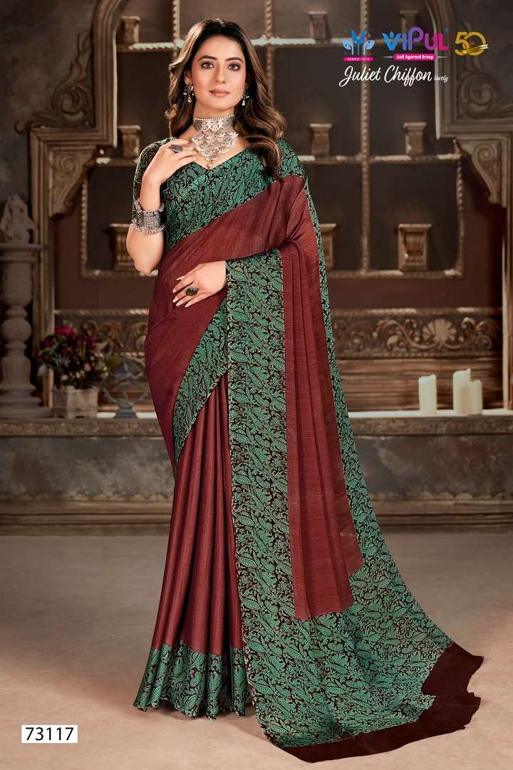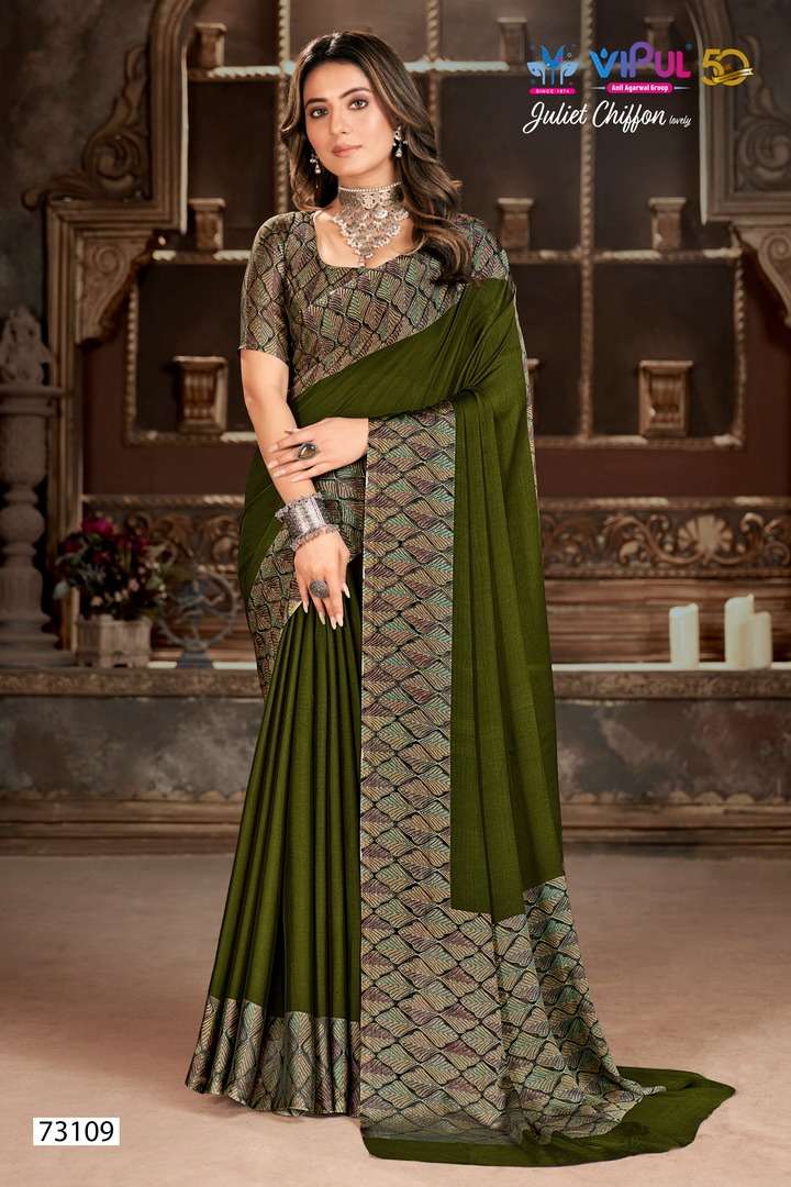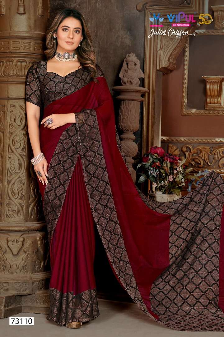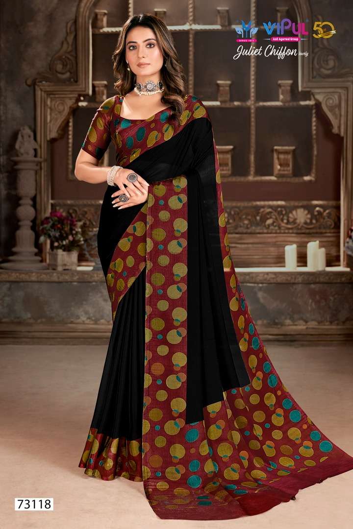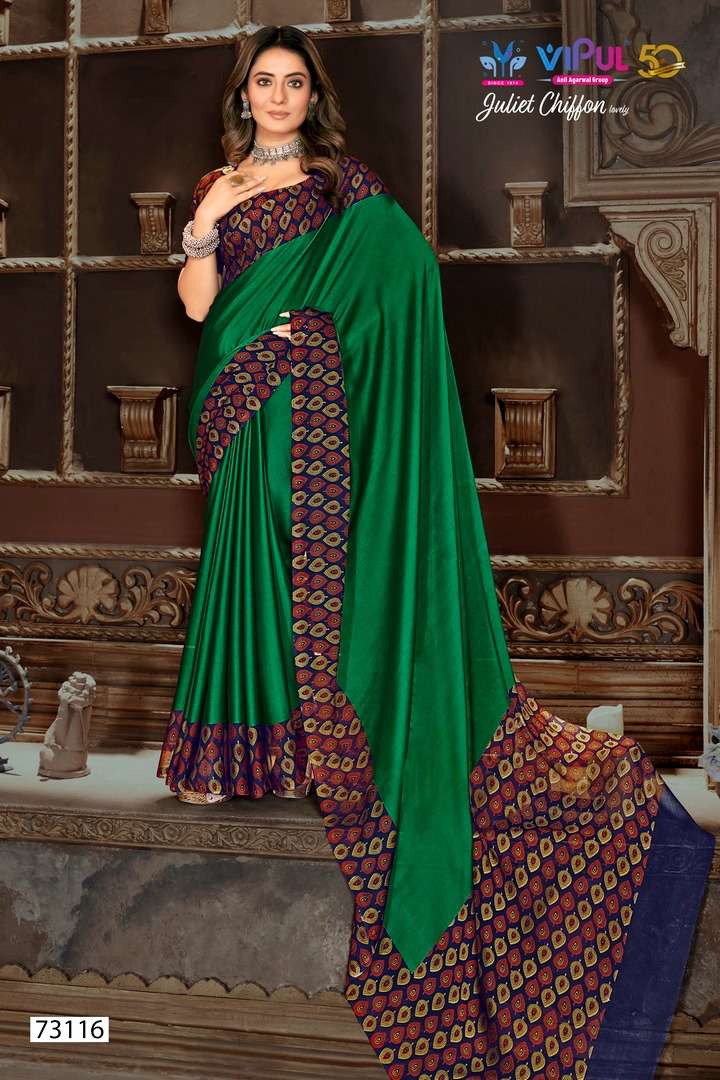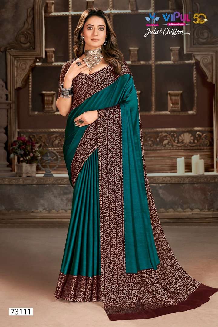 vipul fashion juliet chiffon lovely amazing fancy printed border sarees online wholesaler