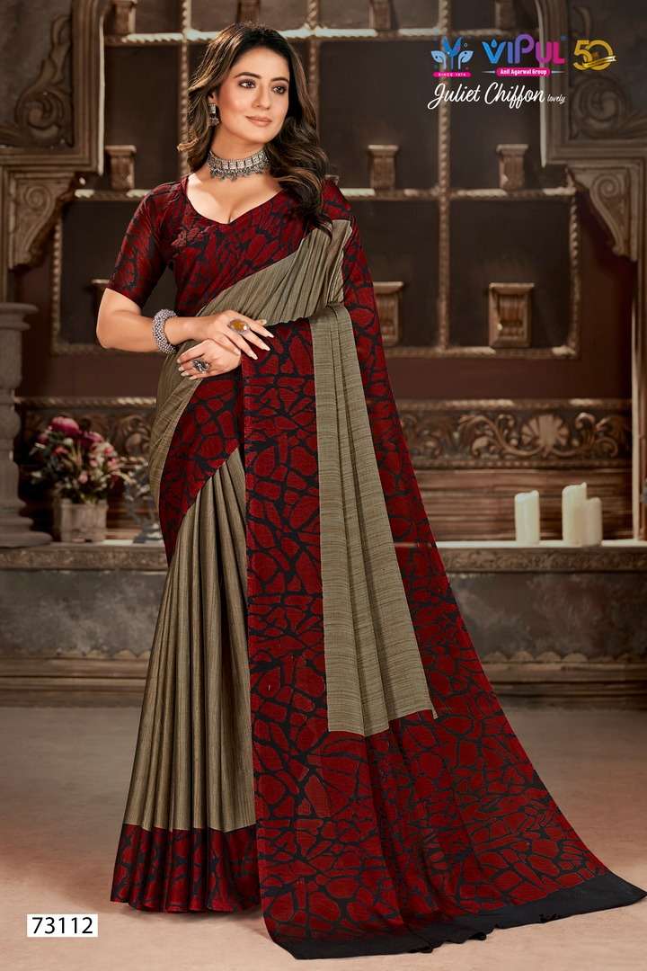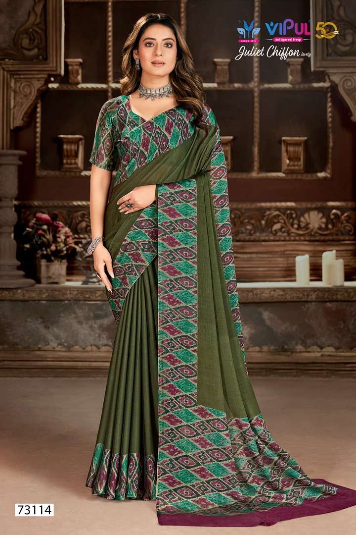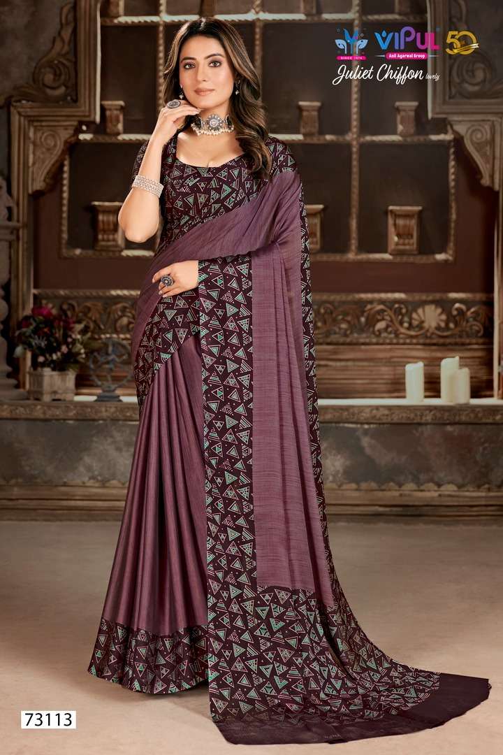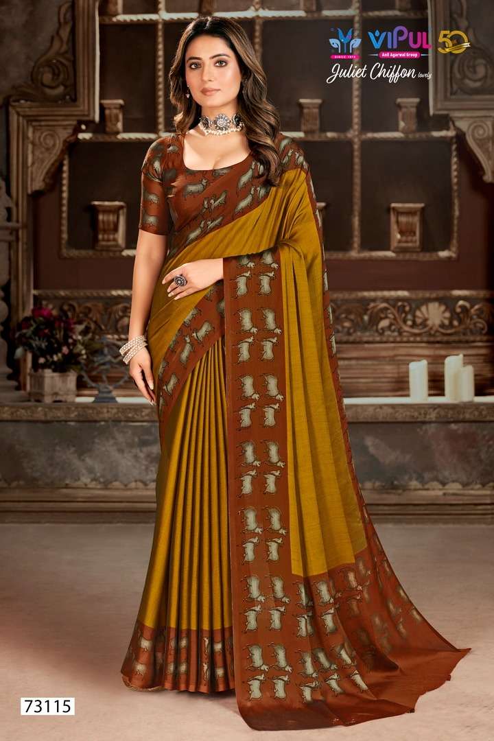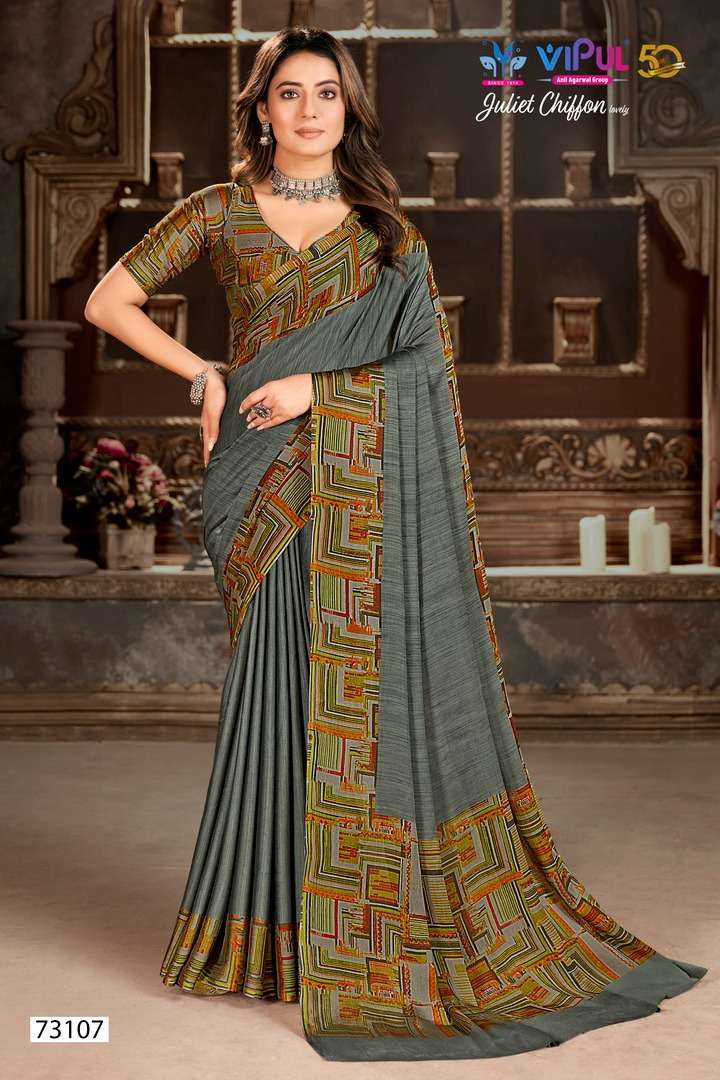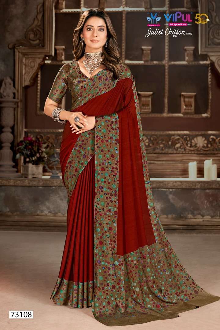 vipul fashion juliet chiffon lovely amazing fancy printed border sarees online wholesaler