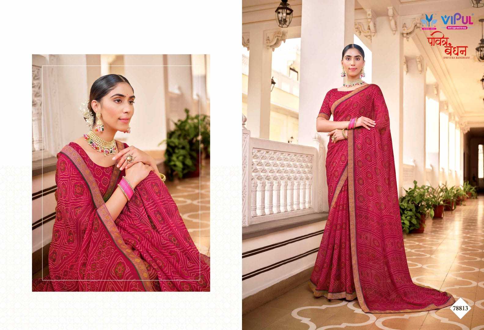 vipul fashion pavitra bandhan 78804-78815 fancy chiffon bandhani sarees