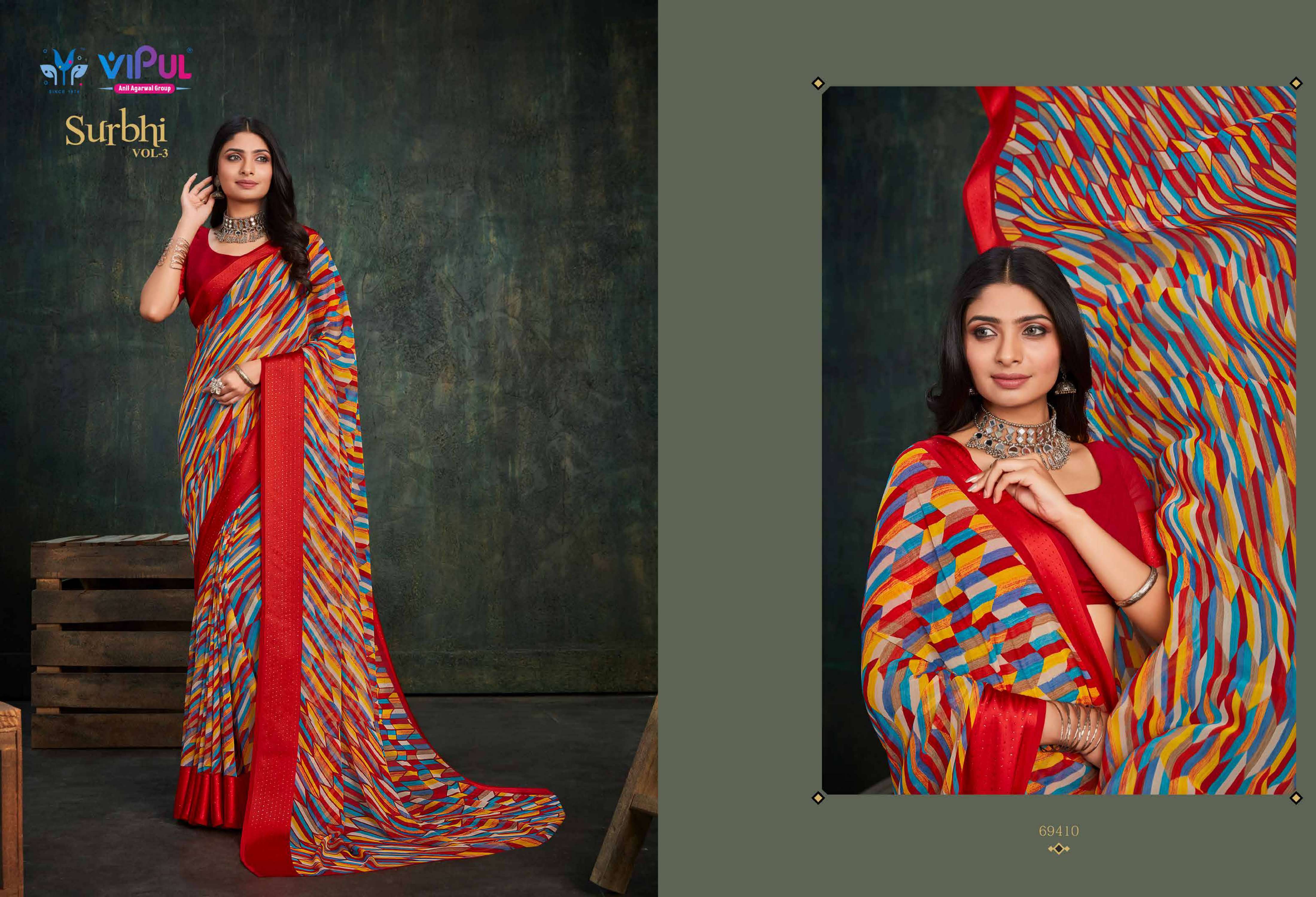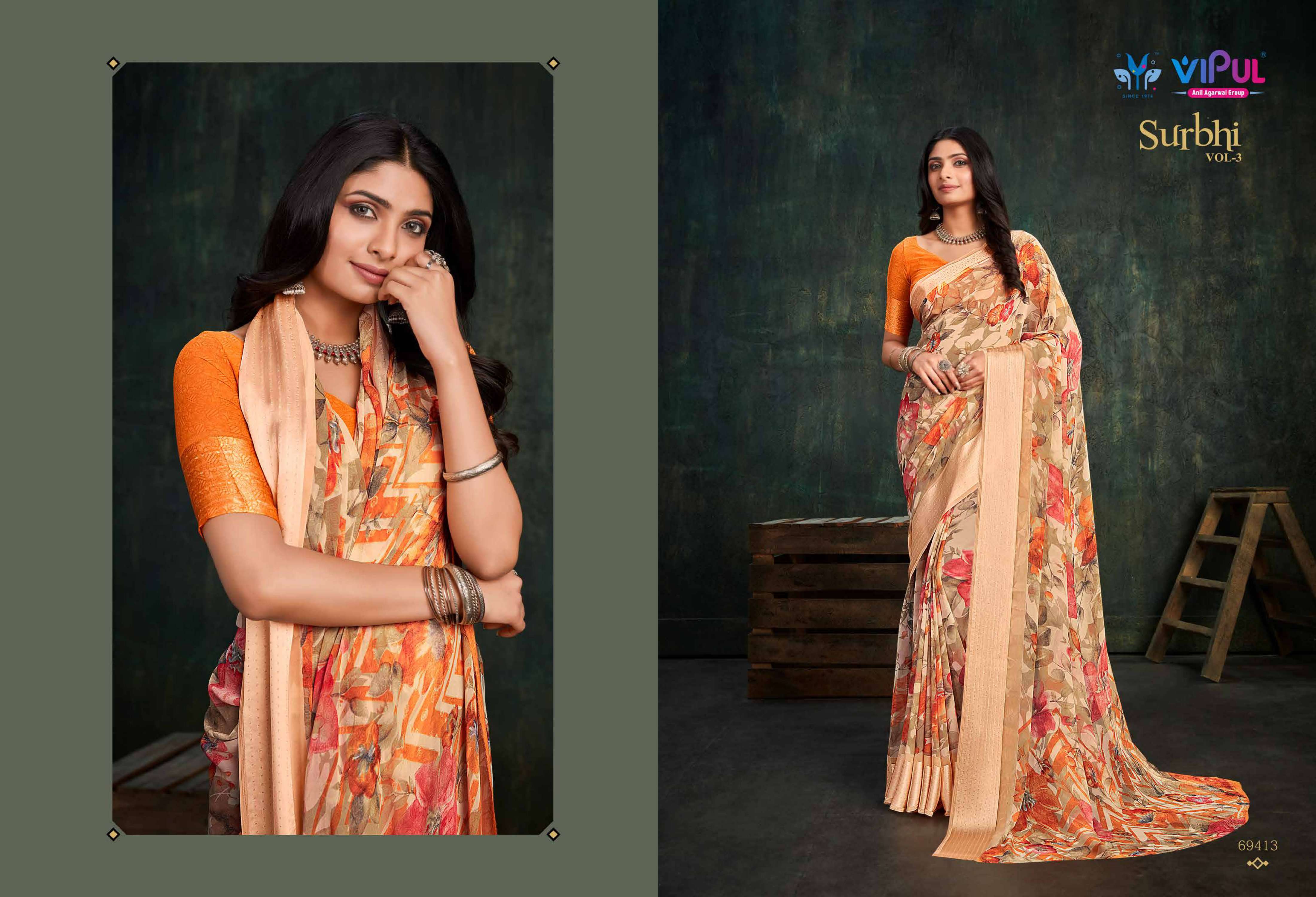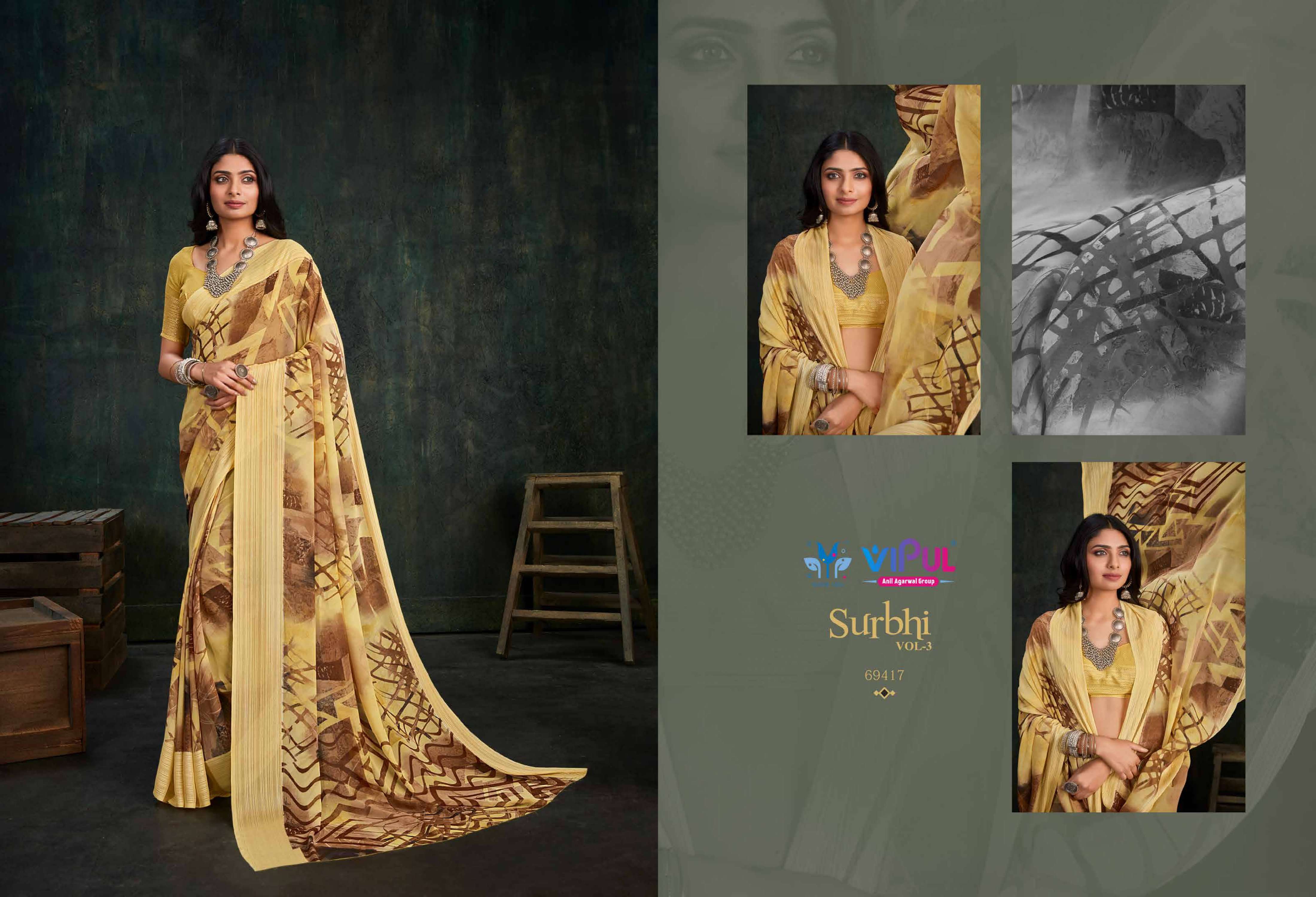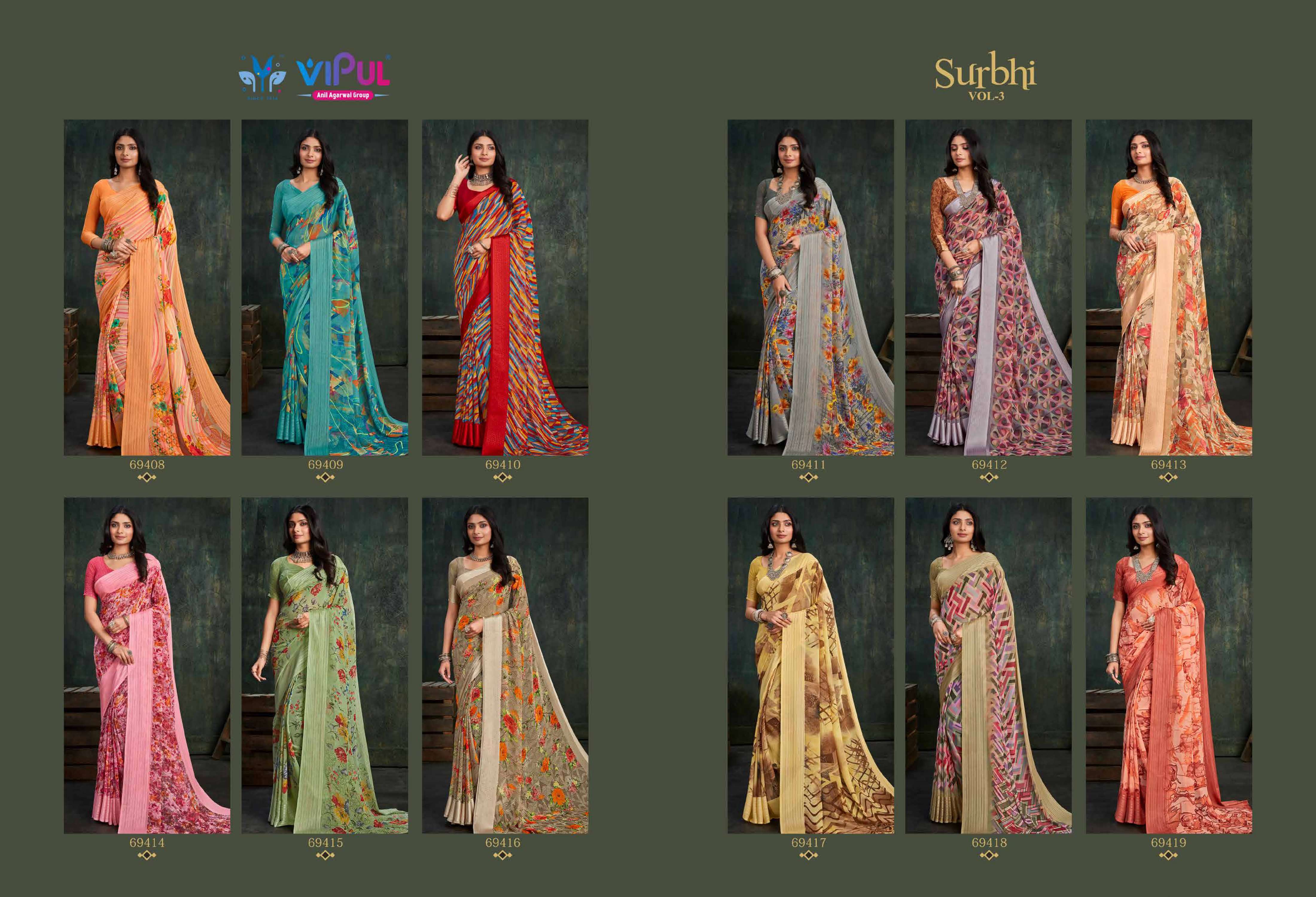 vipul fashion present surbhi vol 3 69408-69419 series adorable weightless sarees wholesaler