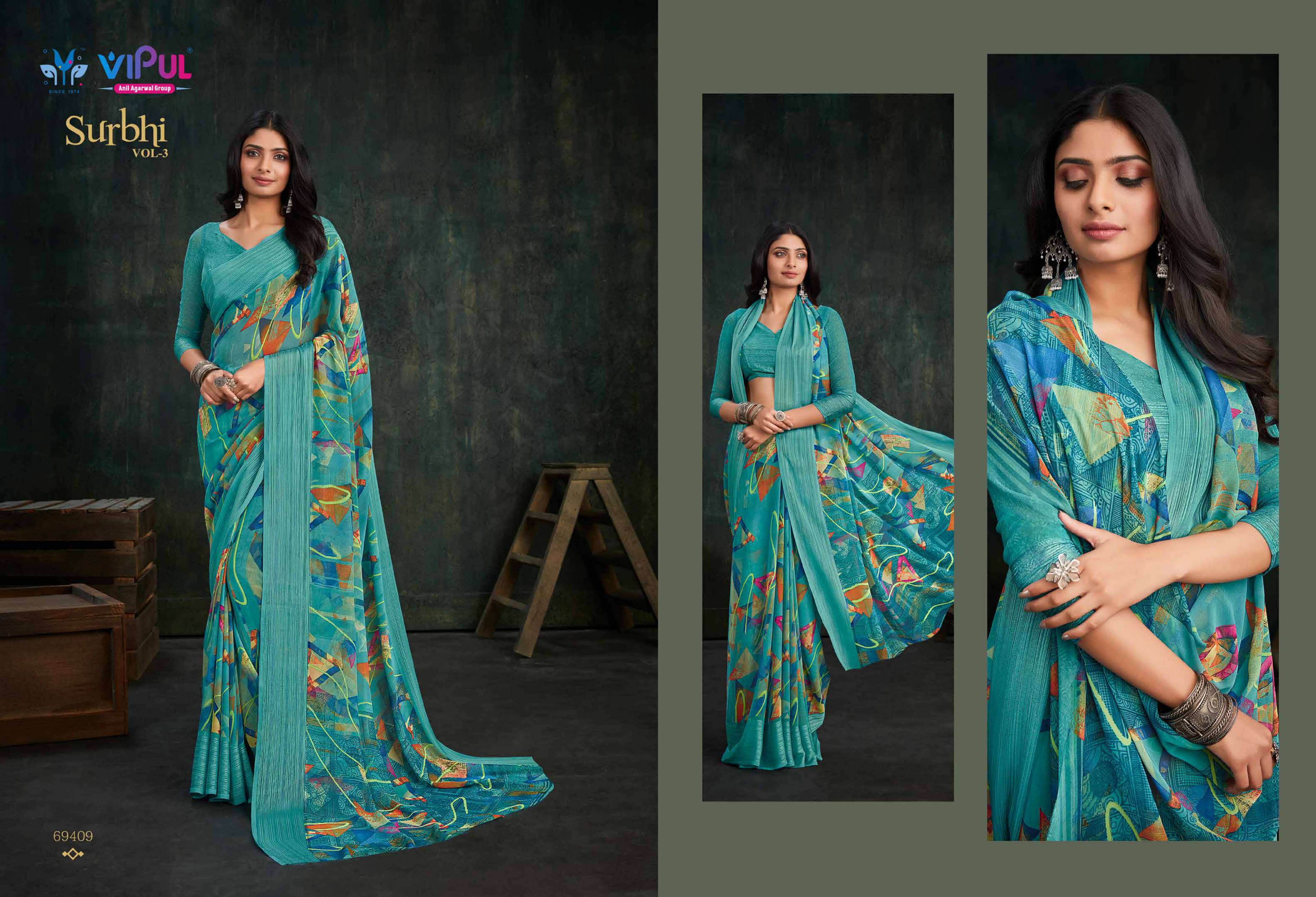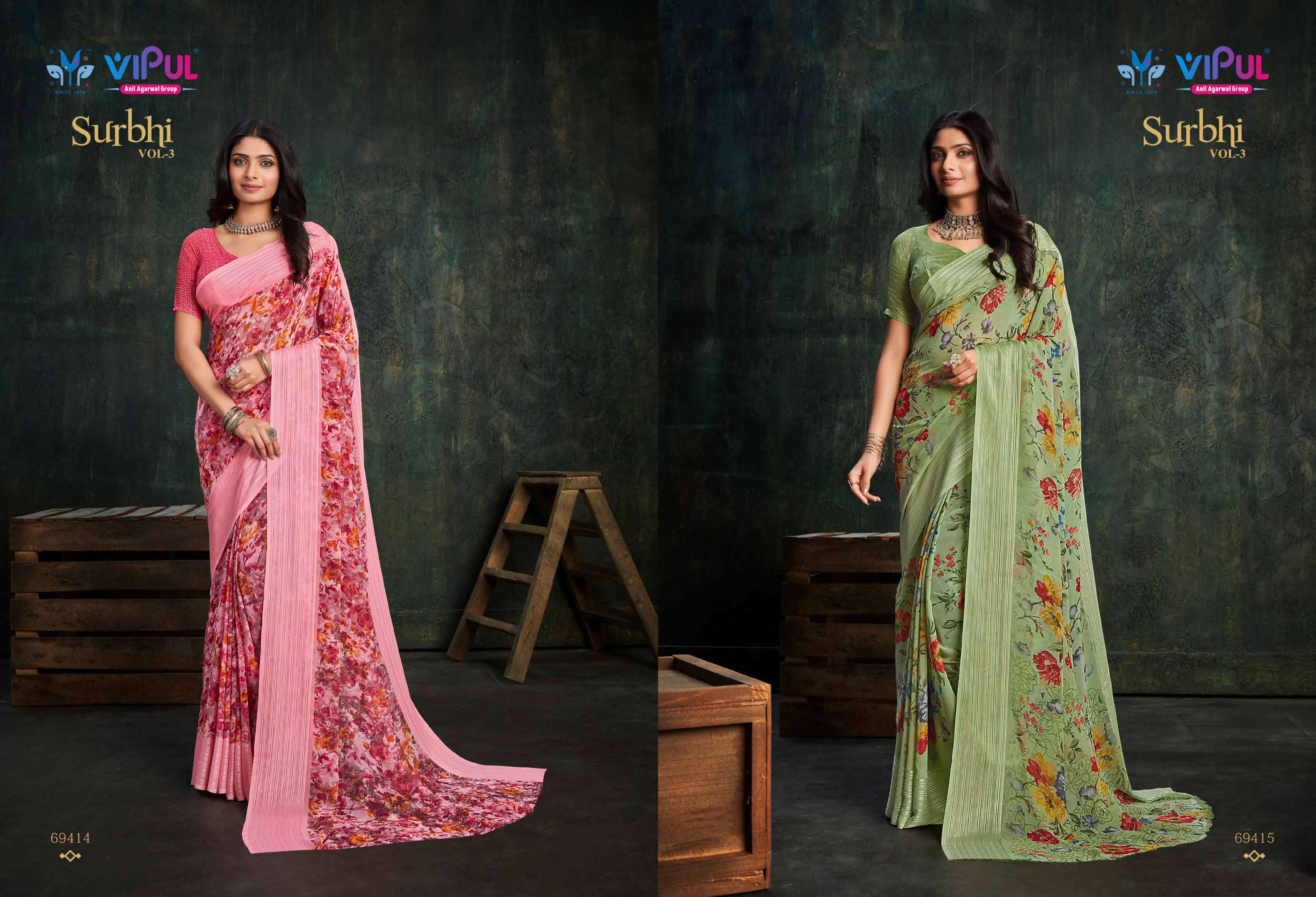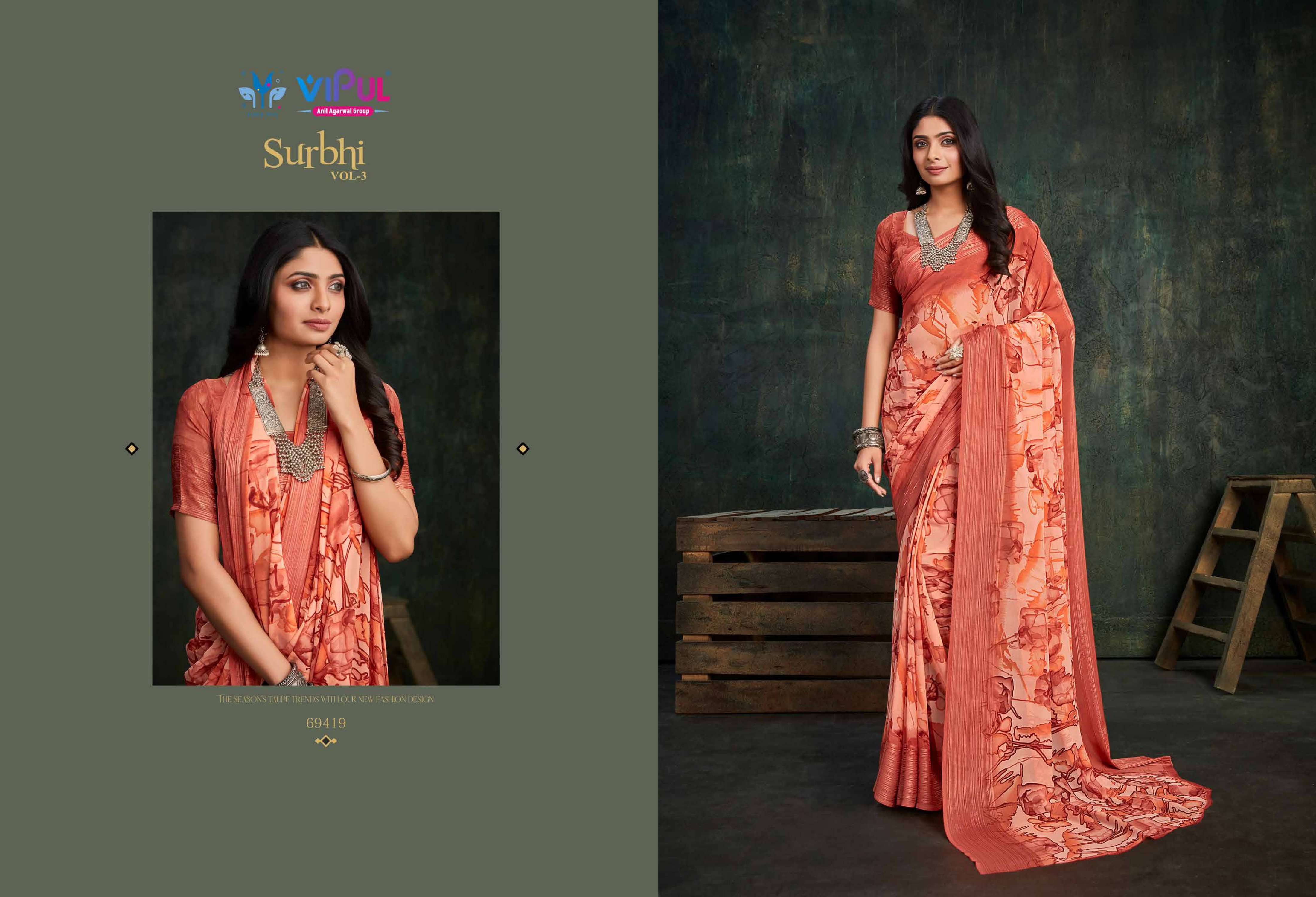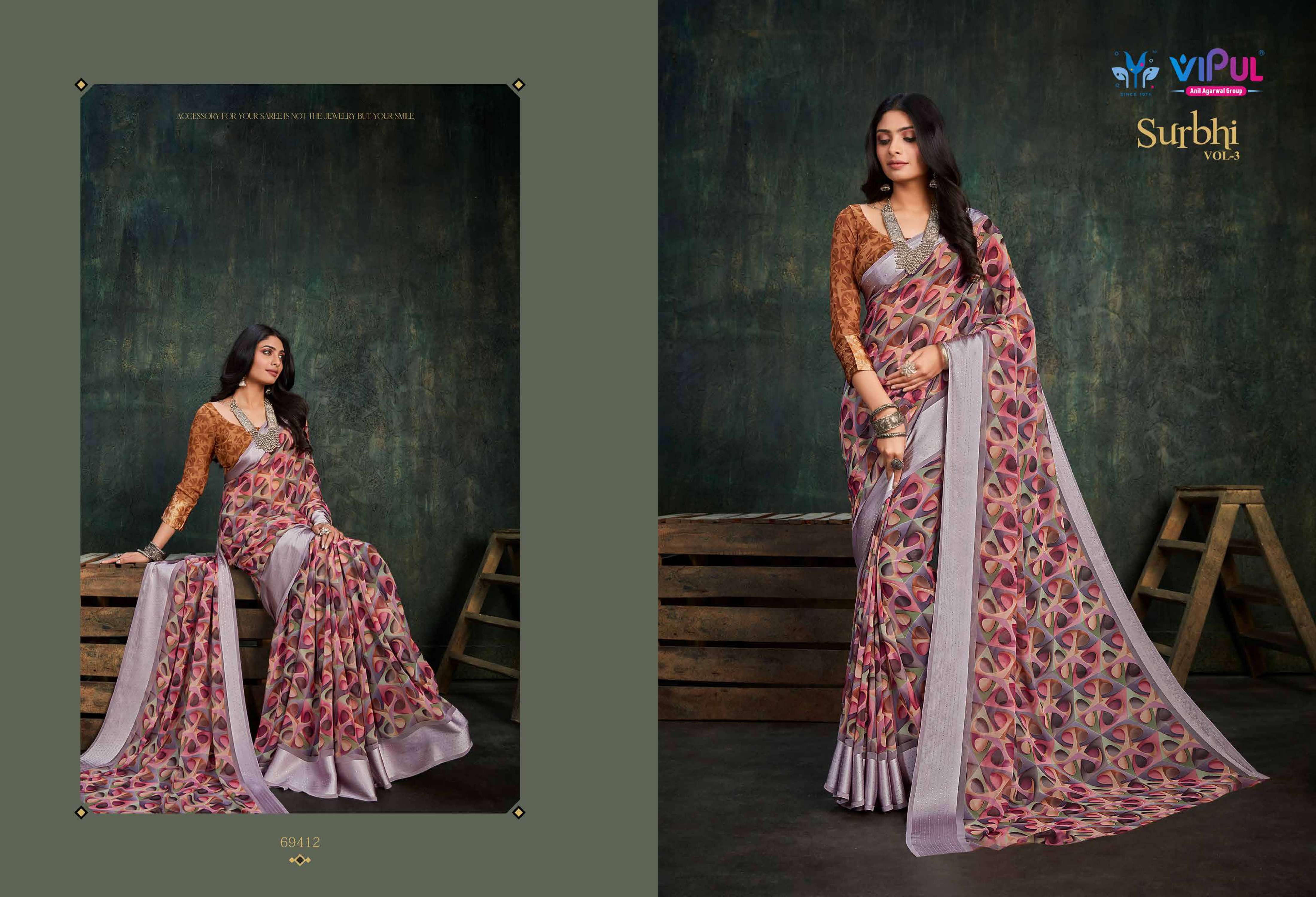 vipul fashion present surbhi vol 3 69408-69419 series adorable weightless sarees wholesaler