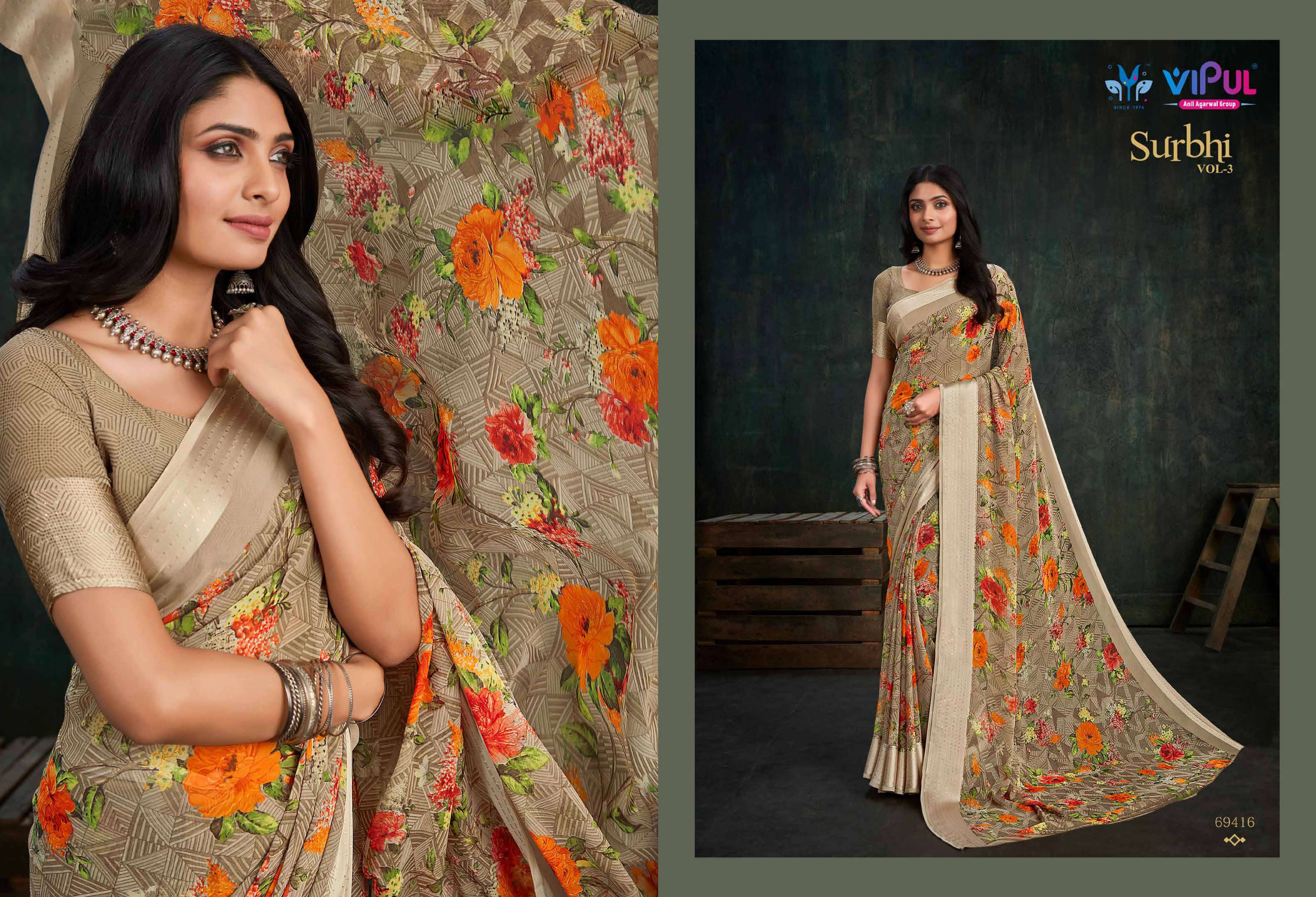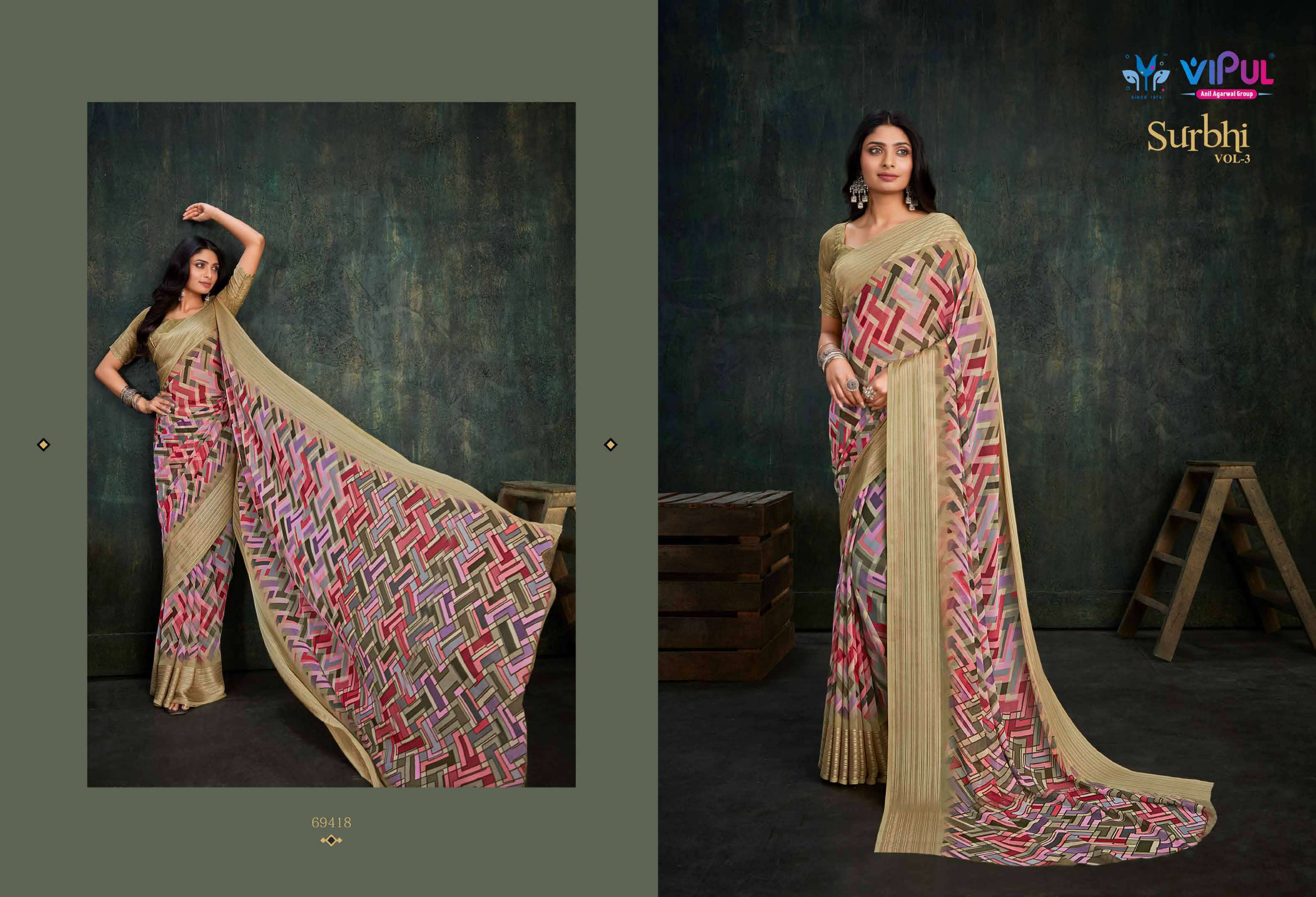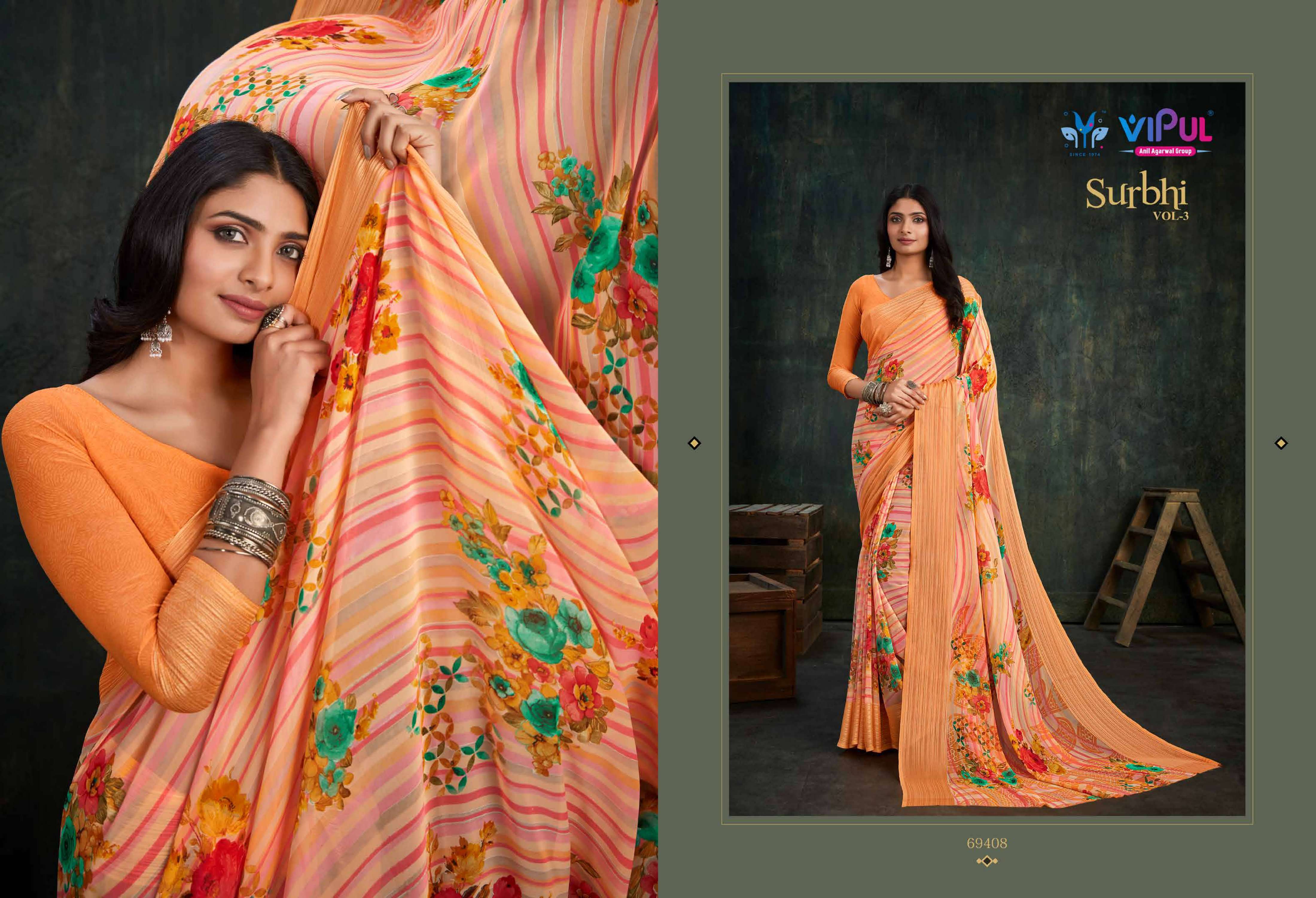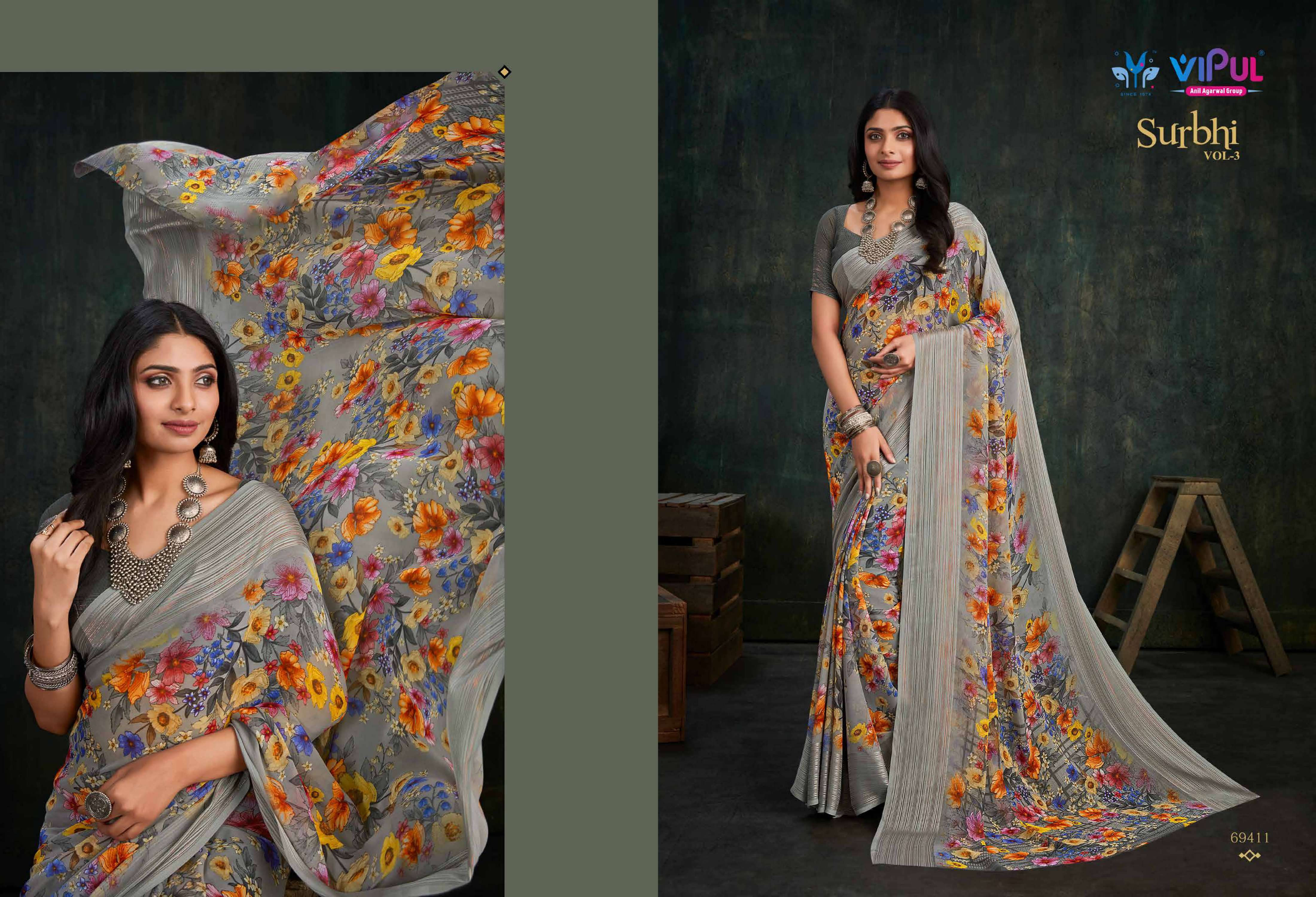 vipul fashion present surbhi vol 3 69408-69419 series adorable weightless sarees wholesaler