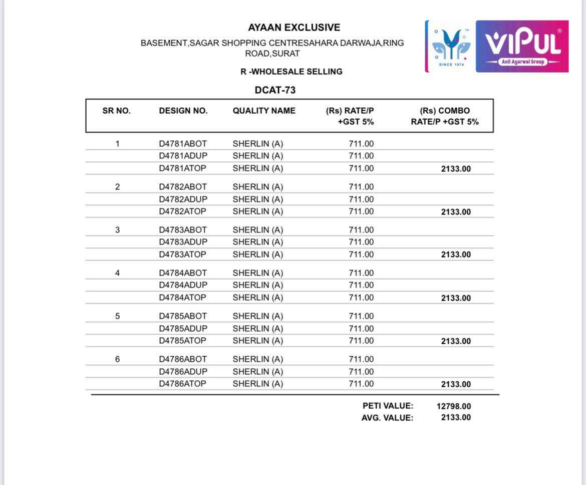 Vipul Fashion Presents Latest Collection Launched on 09-04-2022. Presenting Beautiful collection of 6 PCS with Unstitched .