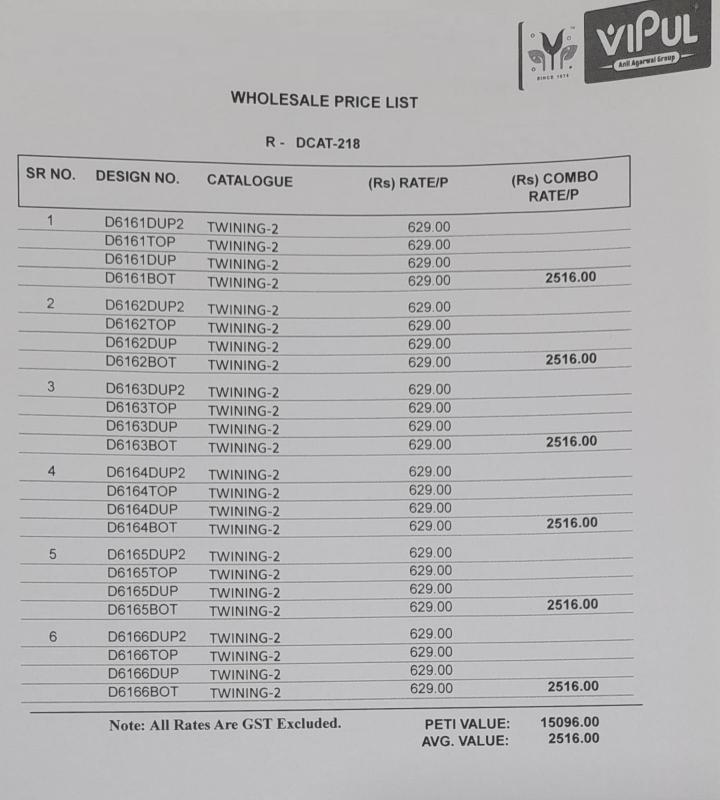 TWINING VOL -2 TOP : CHINNON CHIFFON WITH EMBROIDERY & SWAROVSKI WORK. DUPATTA-1 : SILK JACQUARD WEAVING DUPATTA WITH SWAROVSKI. DUPATTA-2 : SOFT ORGANZA WITH HEAVY EMBROIDERY WORK. BOTTOM & INNER PRICE LIST ATTACHED |