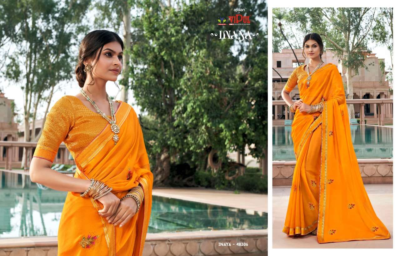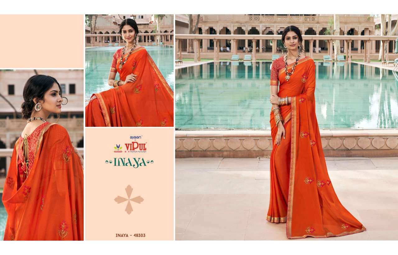 vipul fashions inaya cat 483 chiffon dyed with embroidery sarees best seller online