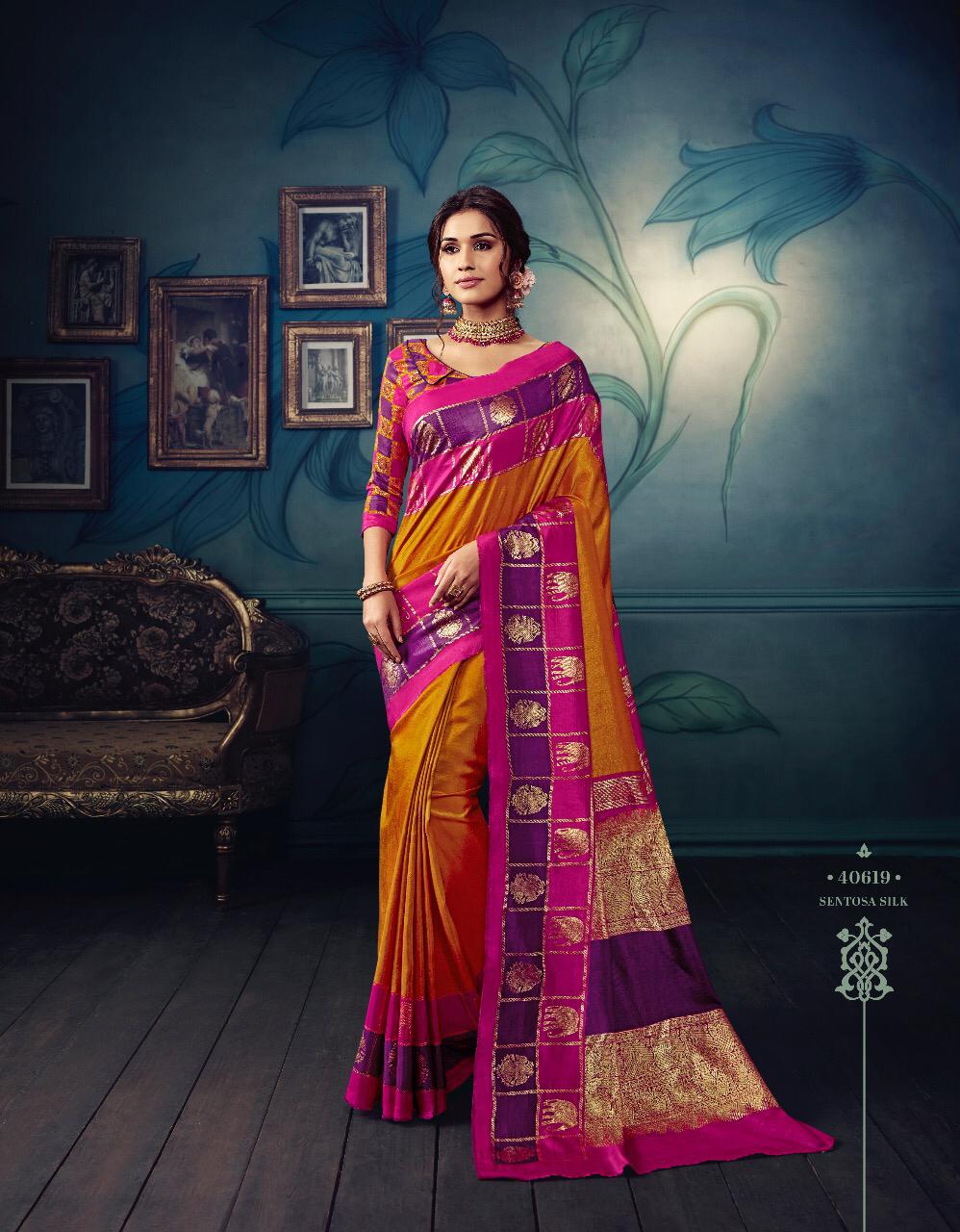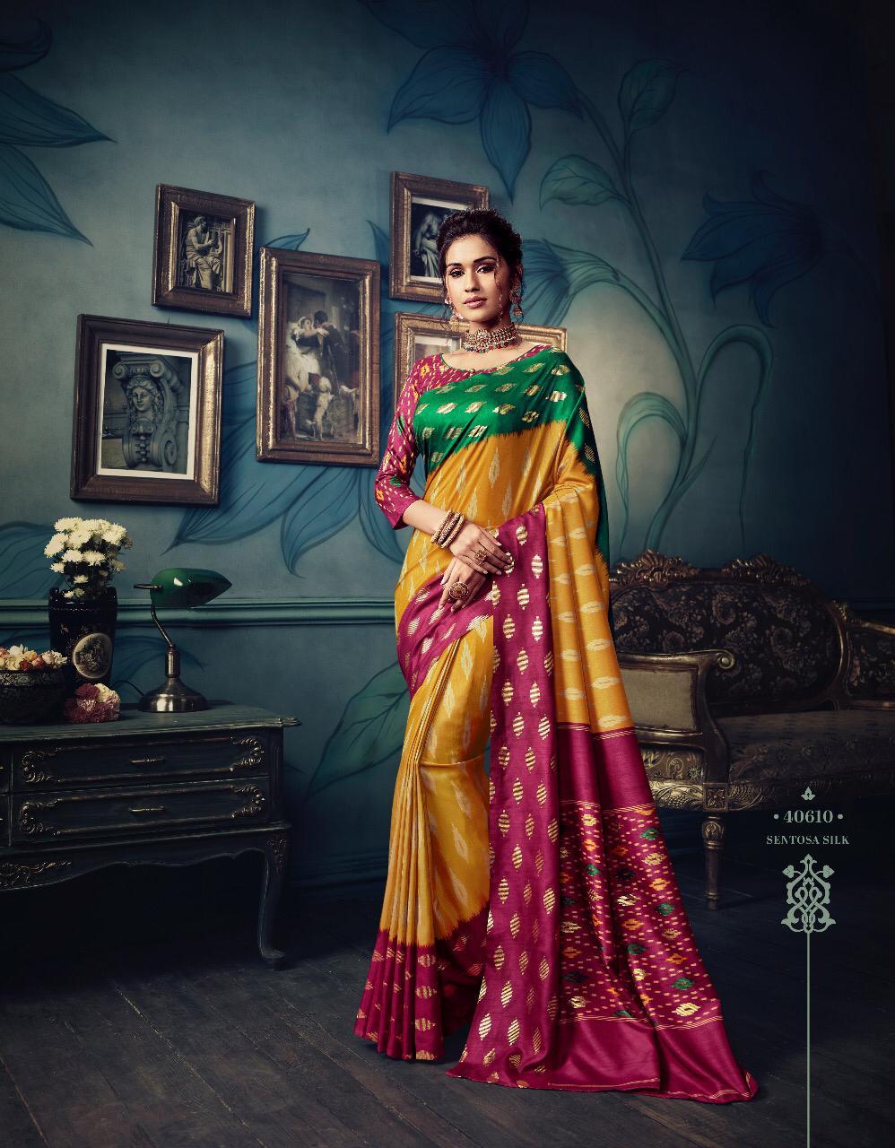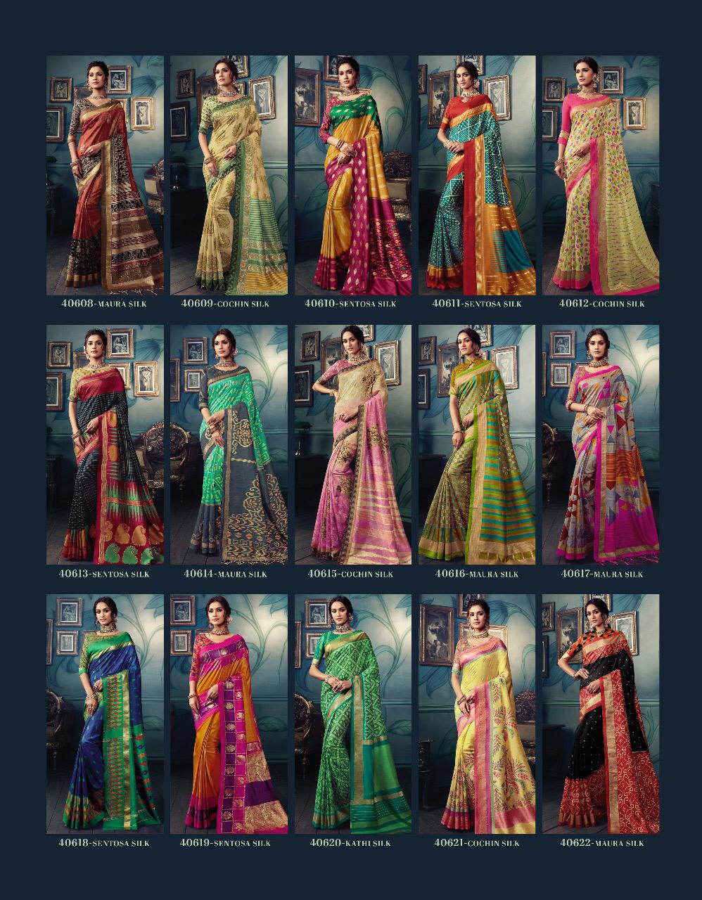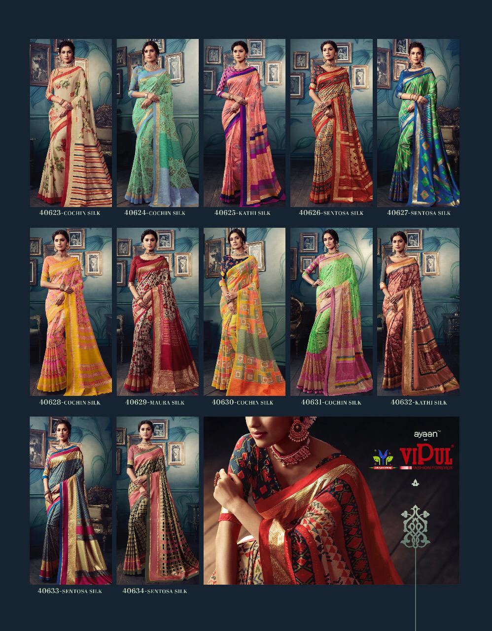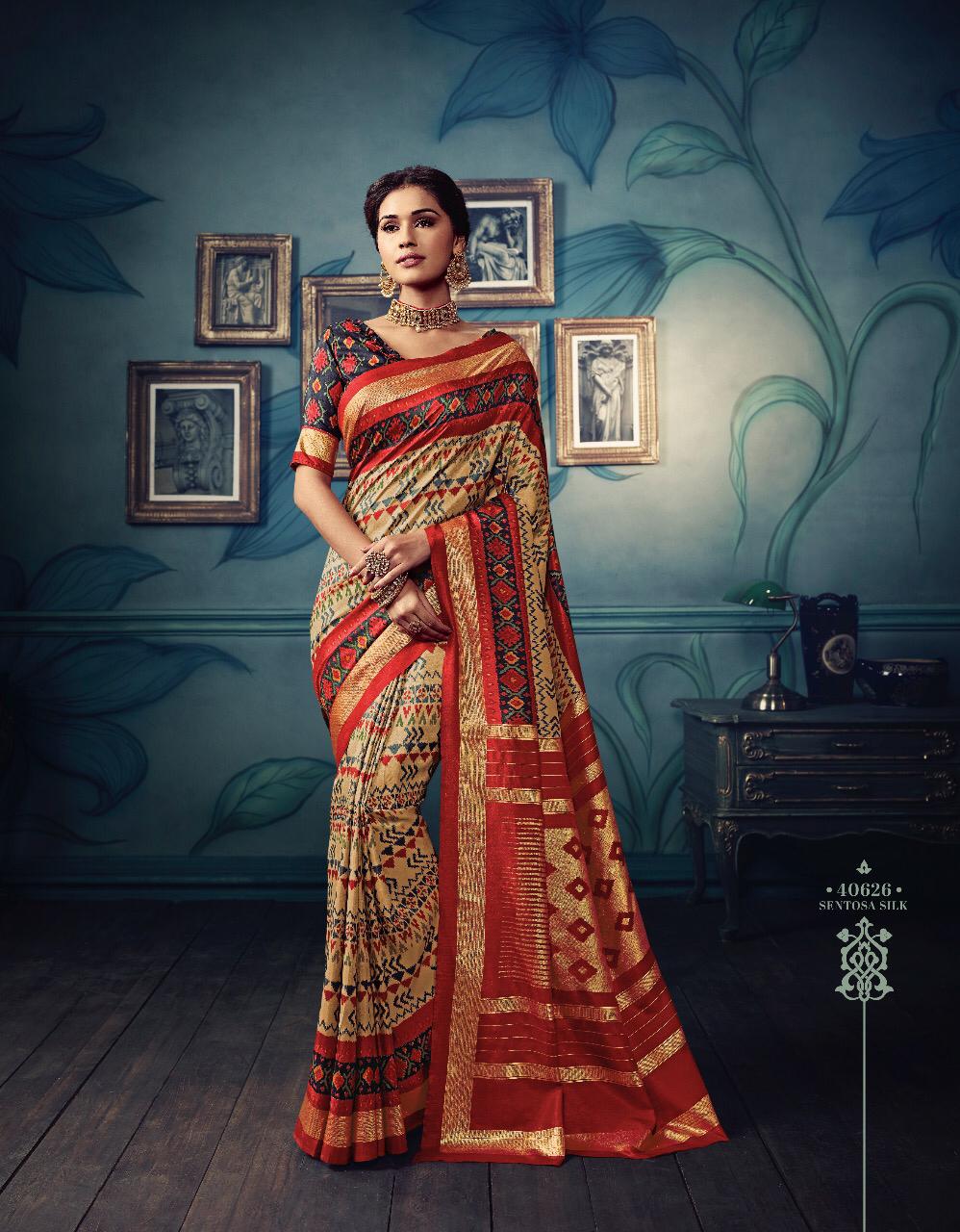 VIPUL CAT - 406 KOSTA SILK " MISHREE " ALL NEW SILK BASE FABRIC @ " DISCOVER YOUR UNIQUENESS " DISGUISE THE SPOTLIGHT WITH YOUR VARIOUS LOOKS & LET IT FOLLOW YOU. AVERAGE RATE-682₹ (Ratelist attached) 5%Gst Applicable Set to set Delivery 2 Days |